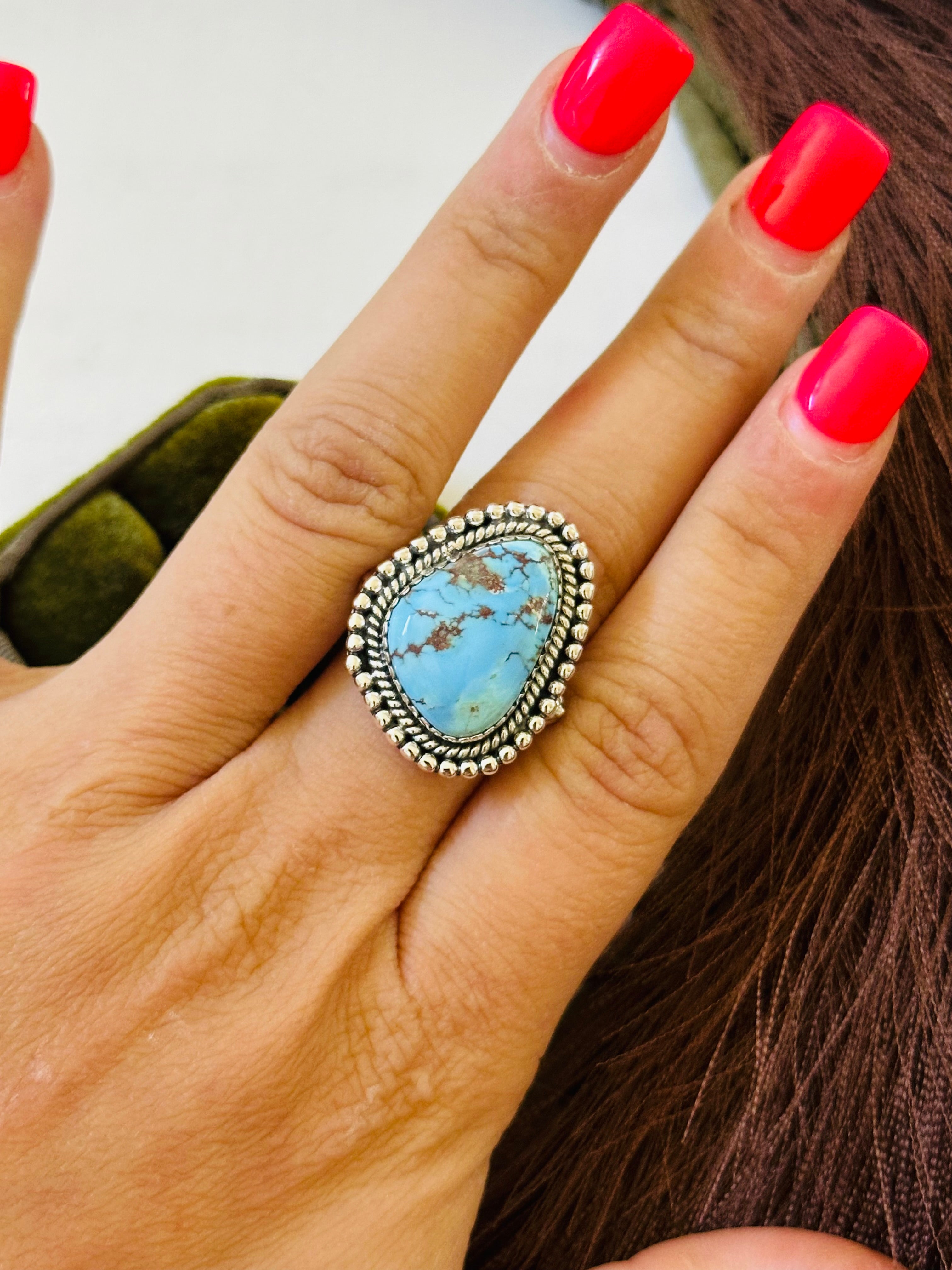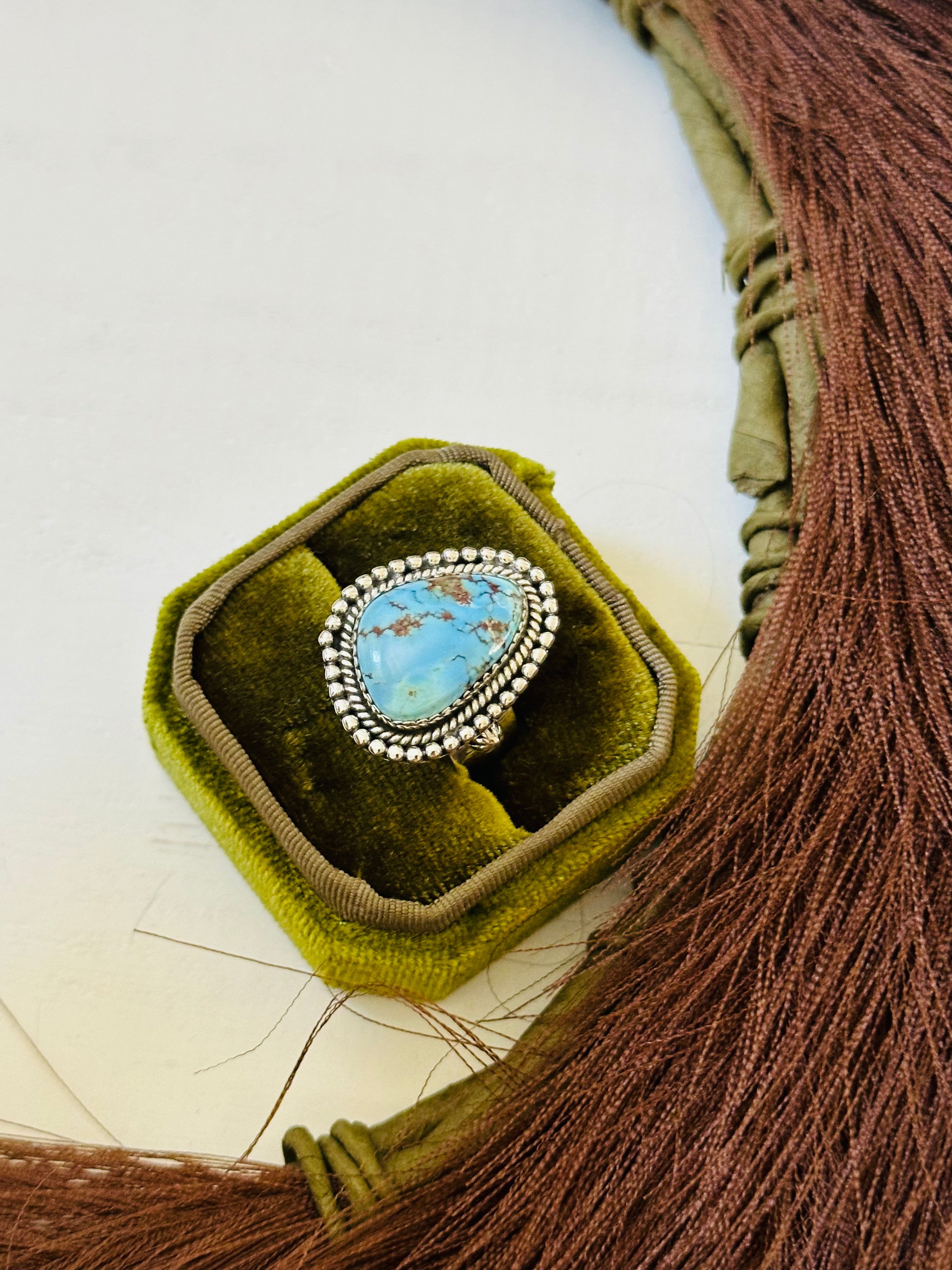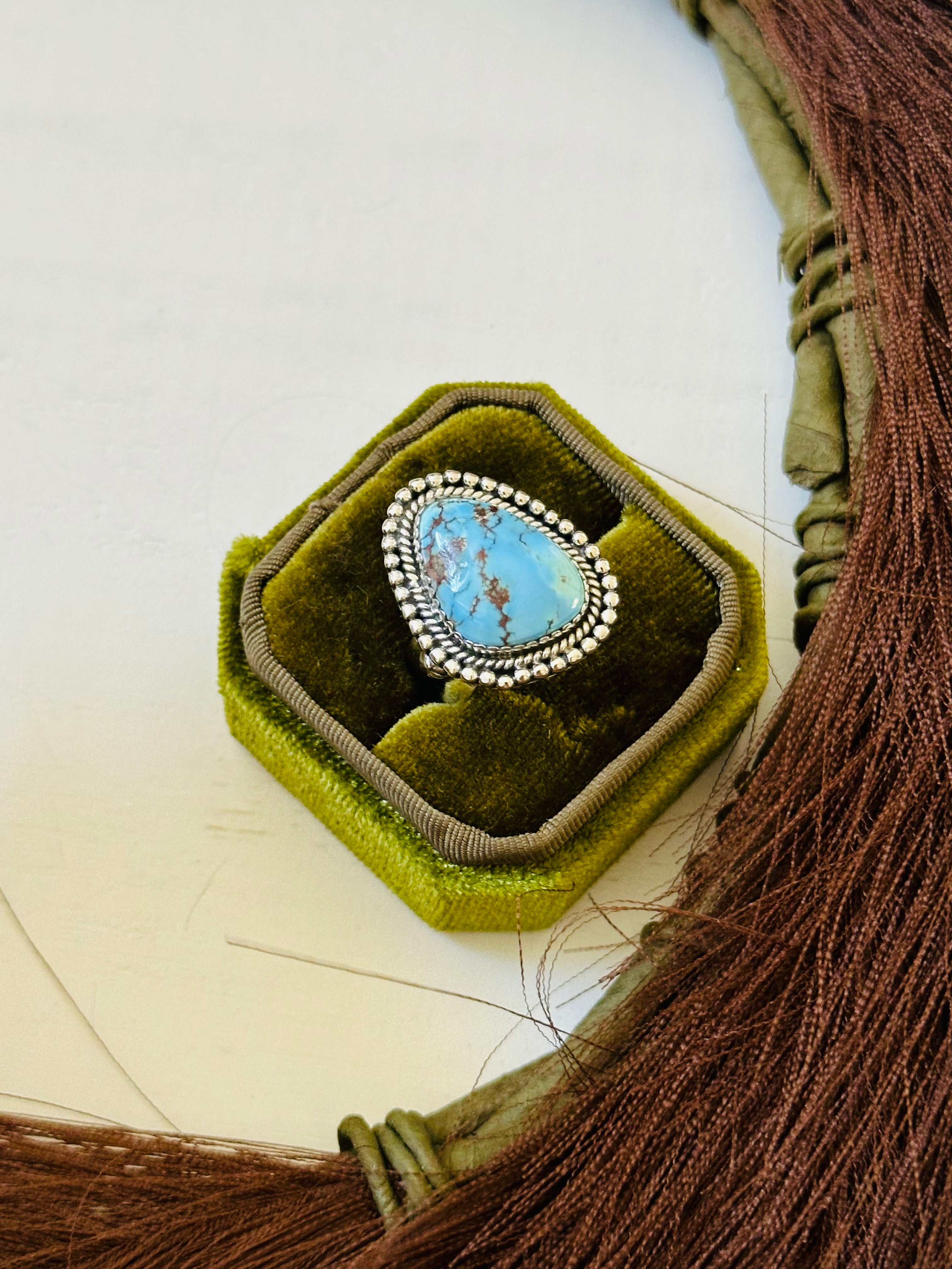 Southwest Handmade Golden Hills Turquoise & Sterling Silver Ring Size 8.75