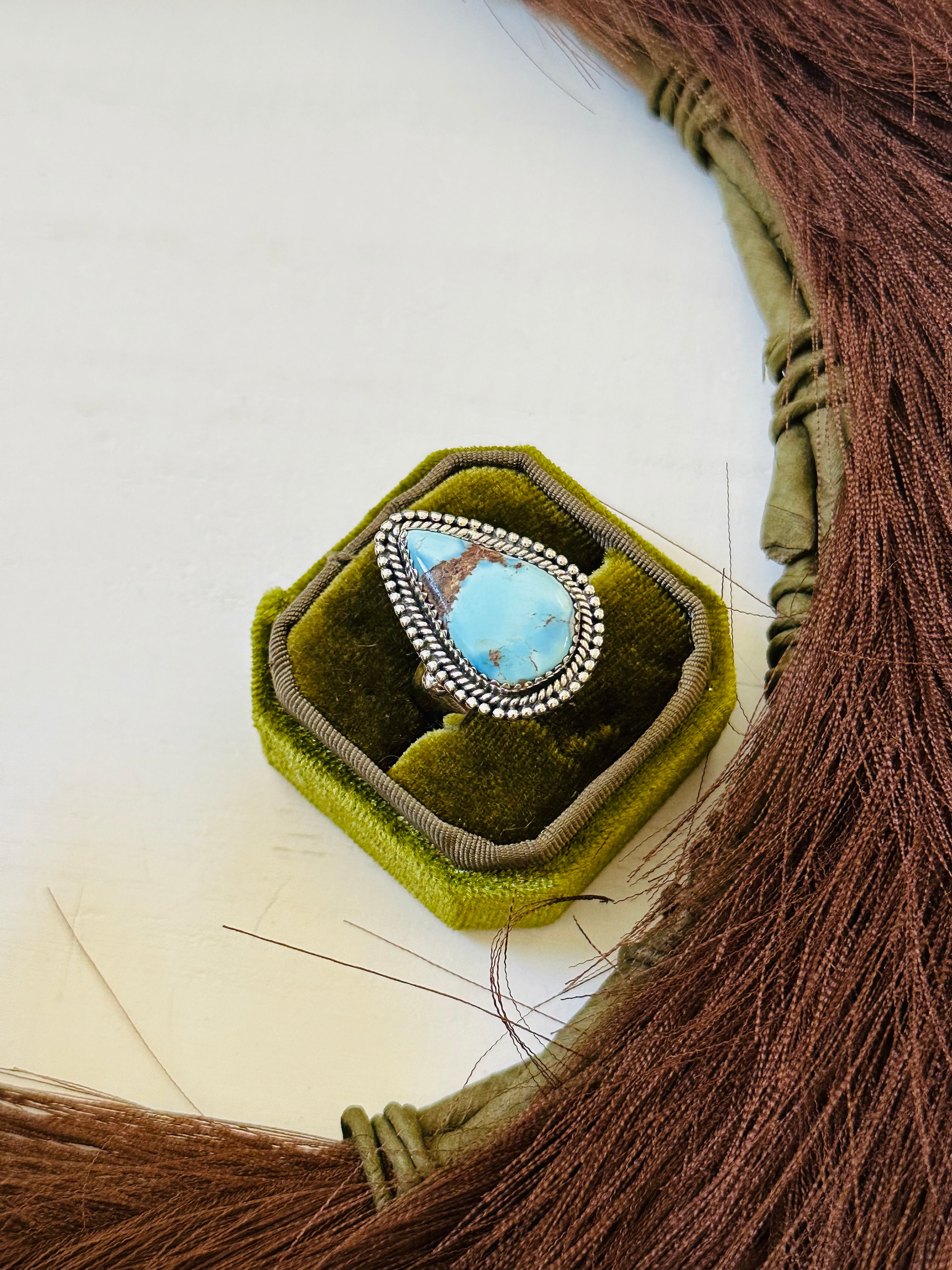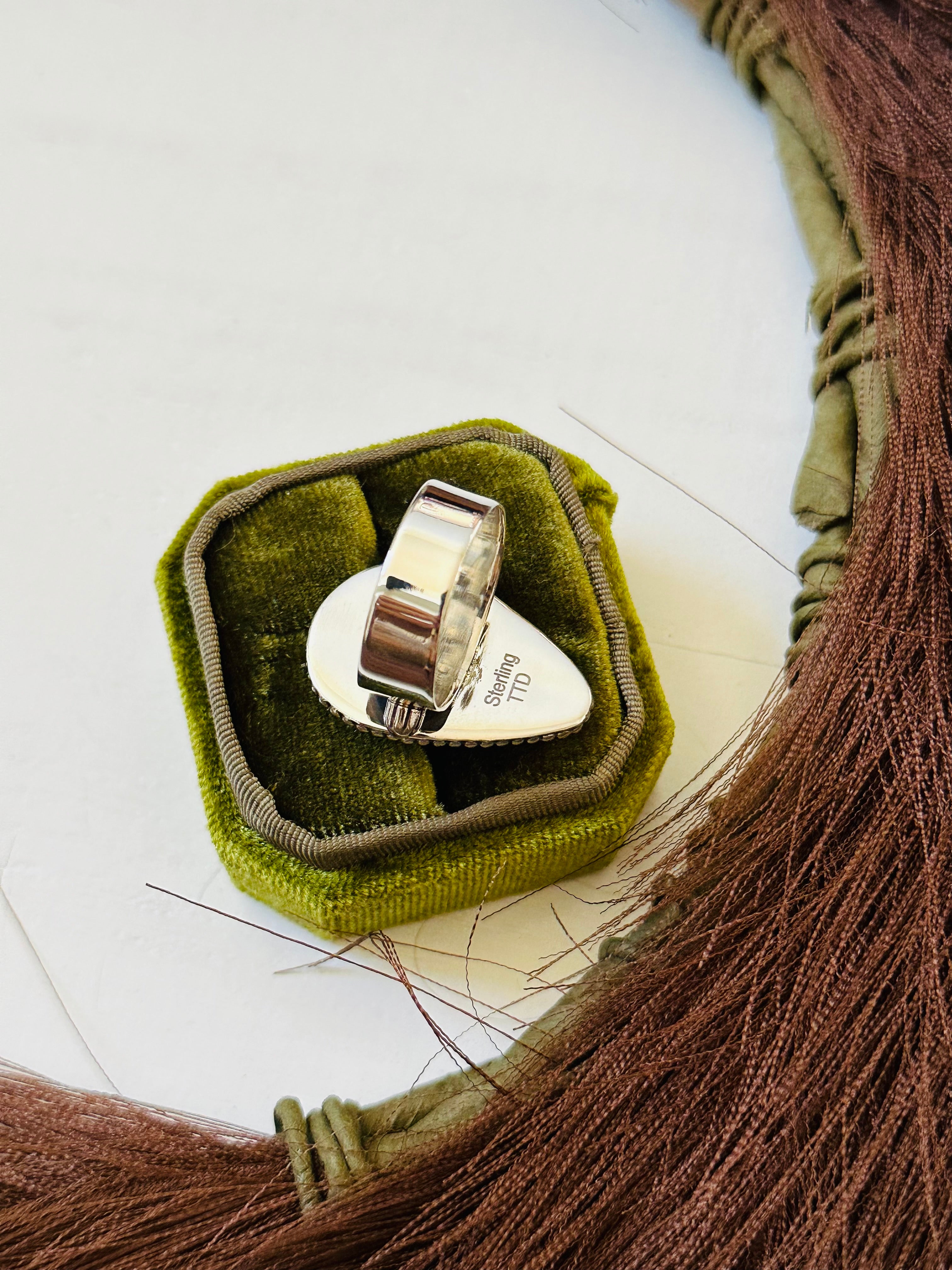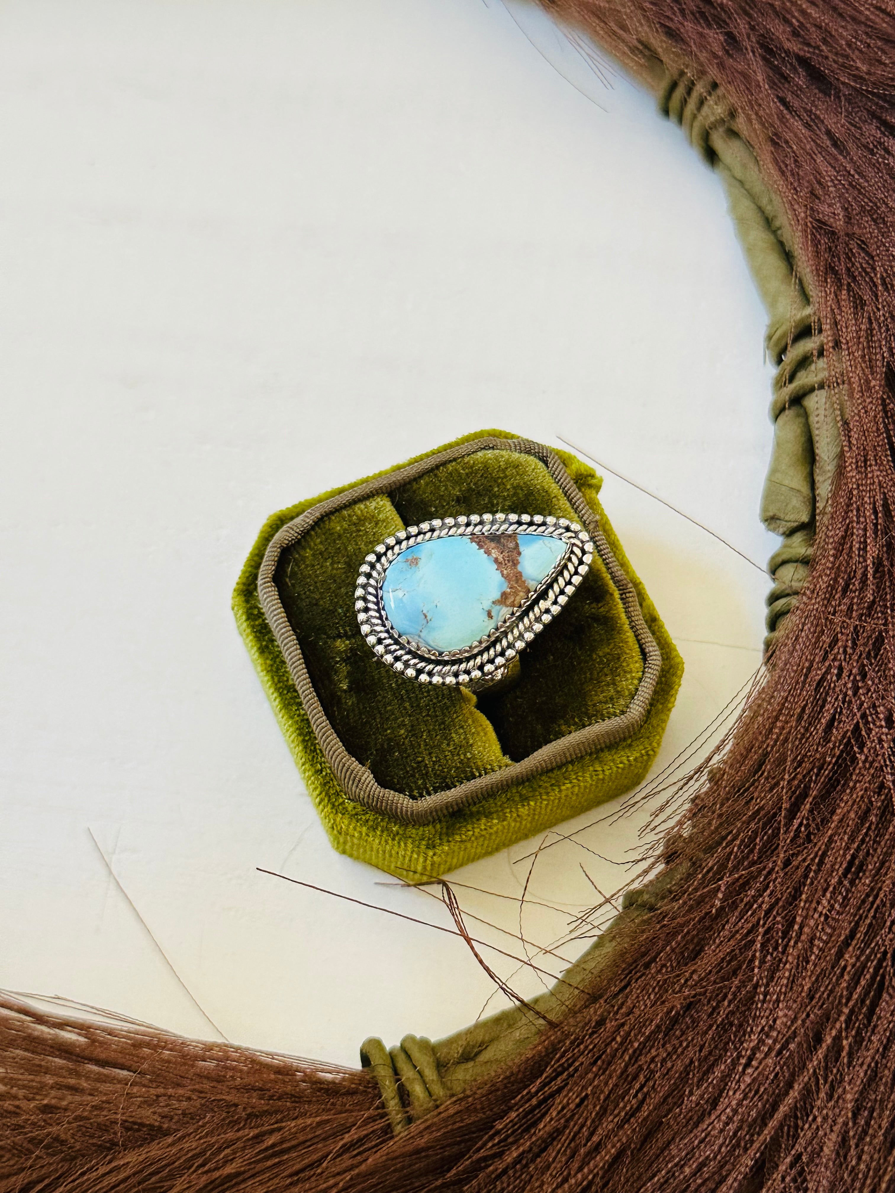 Southwest Handmade Golden Hills Turquoise & Sterling Silver Ring Size 10