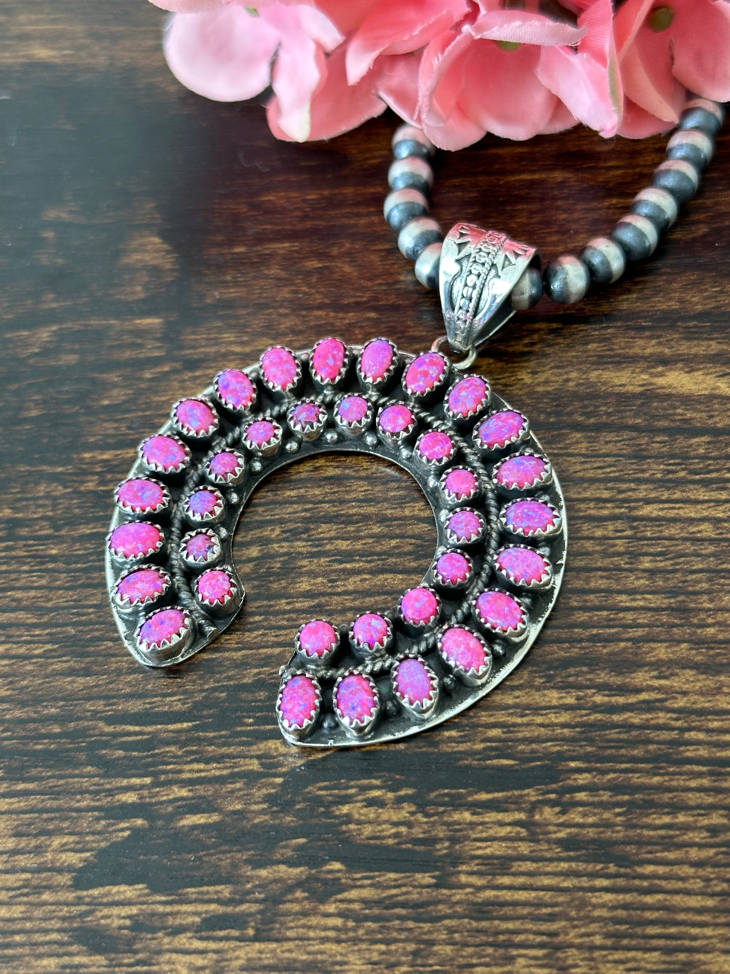 Southwest Handmade Hot Pink Opal & Sterling Silver Cluster Naja Pendant