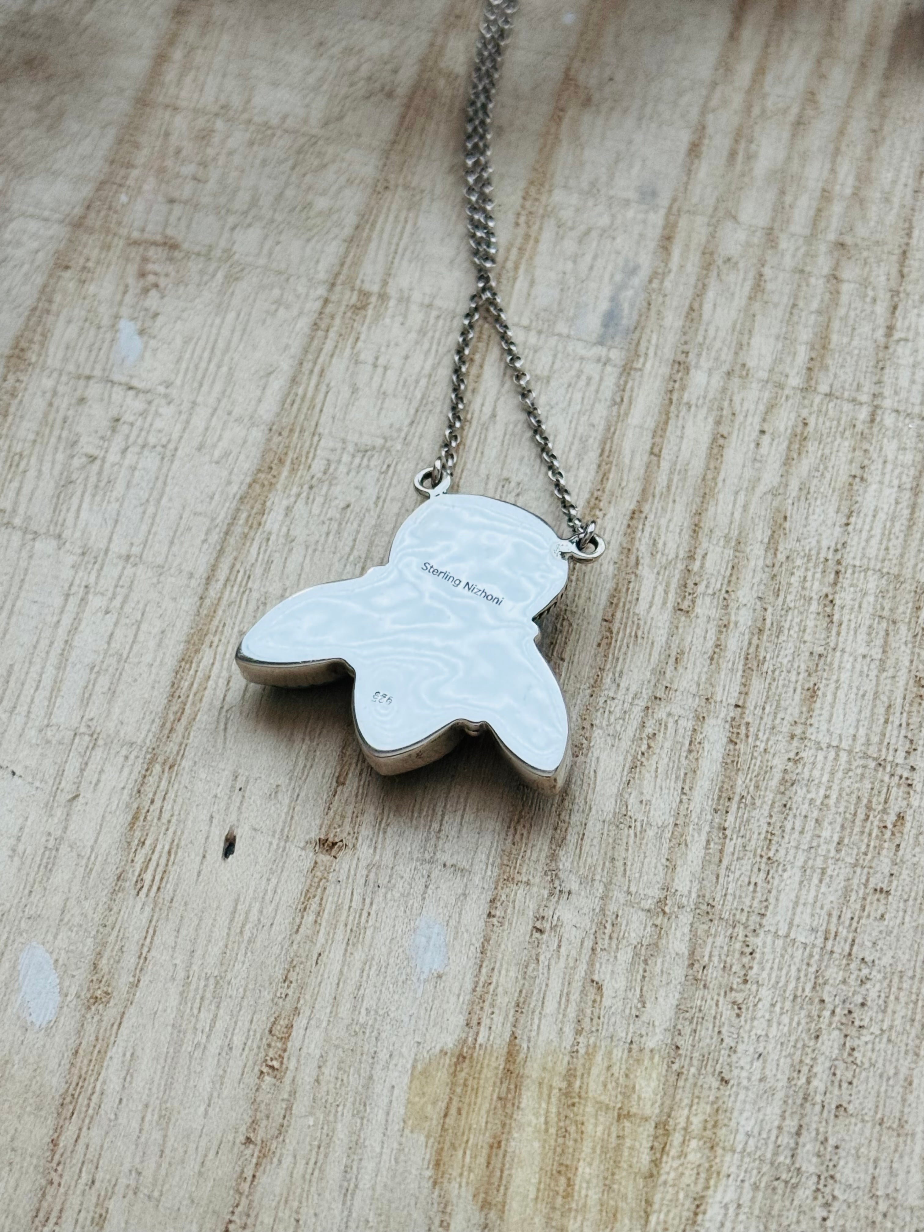 - Beautiful necklace. Southwest Handmade Kingman Turquoise & Sterling Silver Necklace. It measures 20 1/2 inches long with hang while the chain by itself measures 18 inches long but can be adjusted down. Signed by the artist and stamped sterling silver.