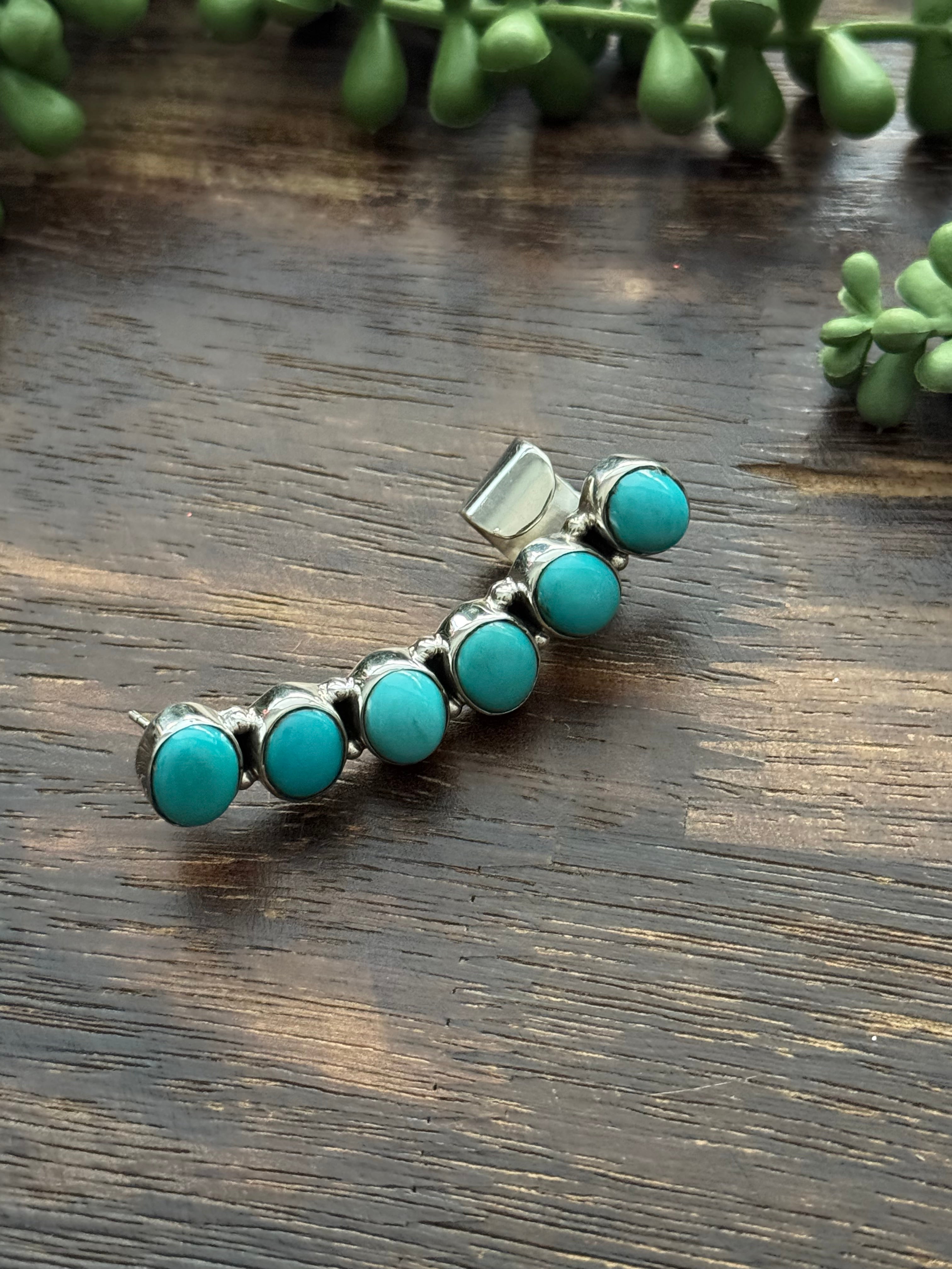 Southwest Handmade Kingman Turquoise & Sterling Silver Post Ear Climber Earrings