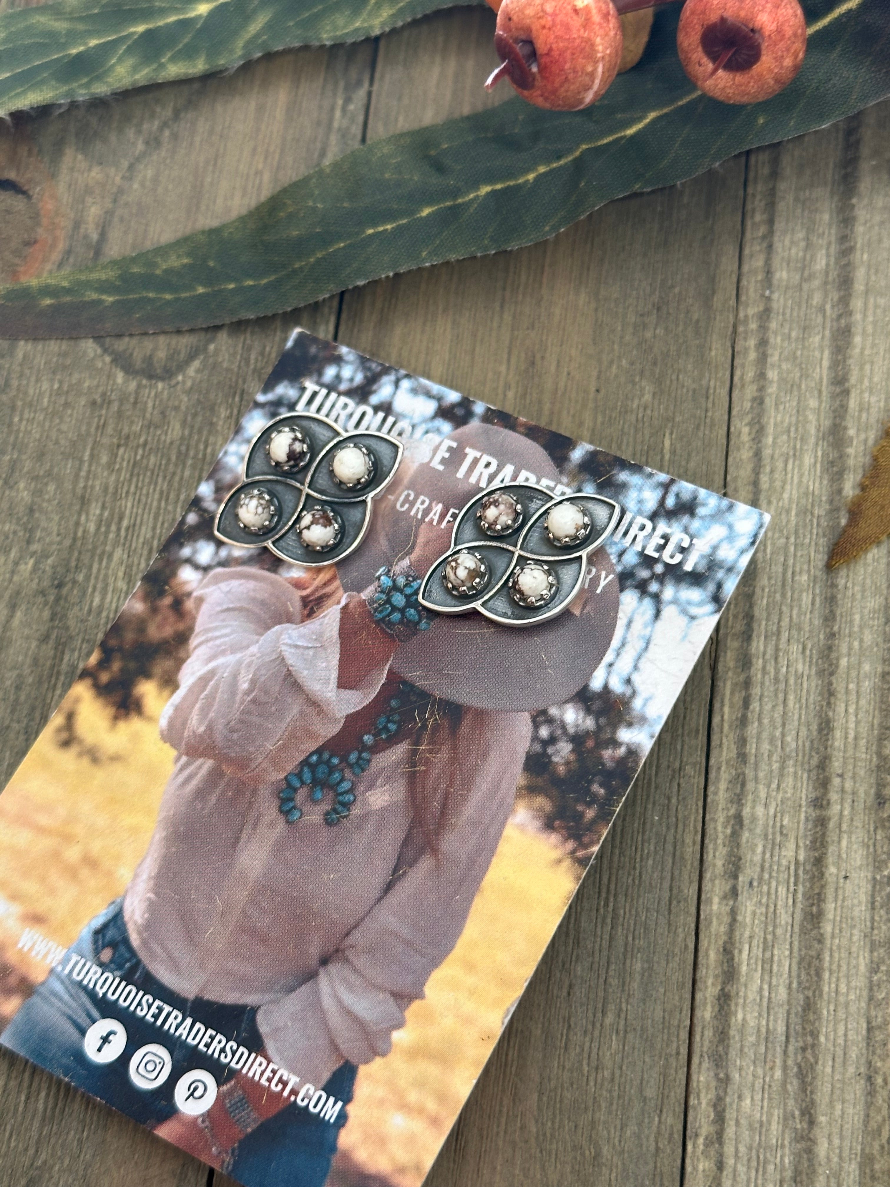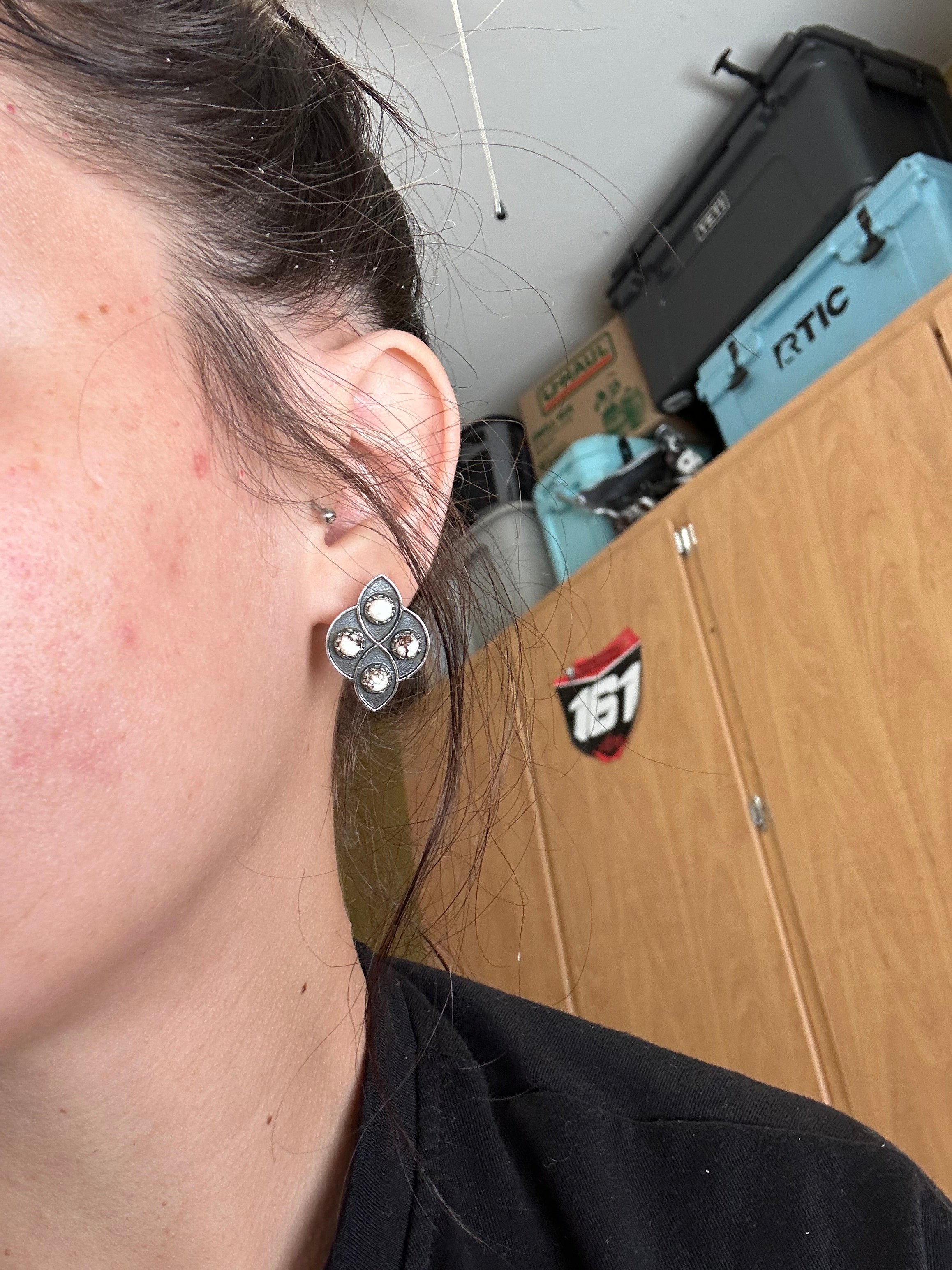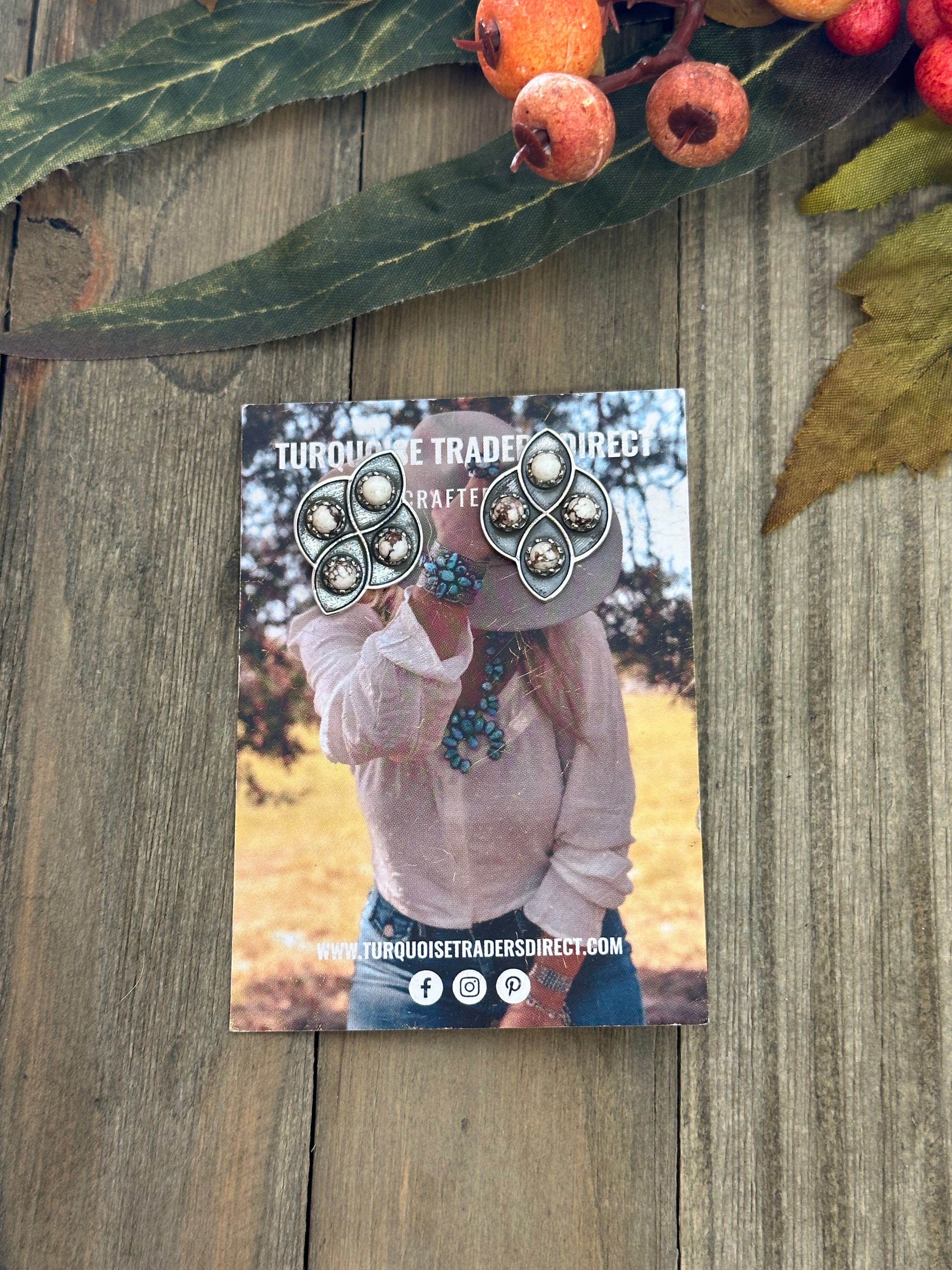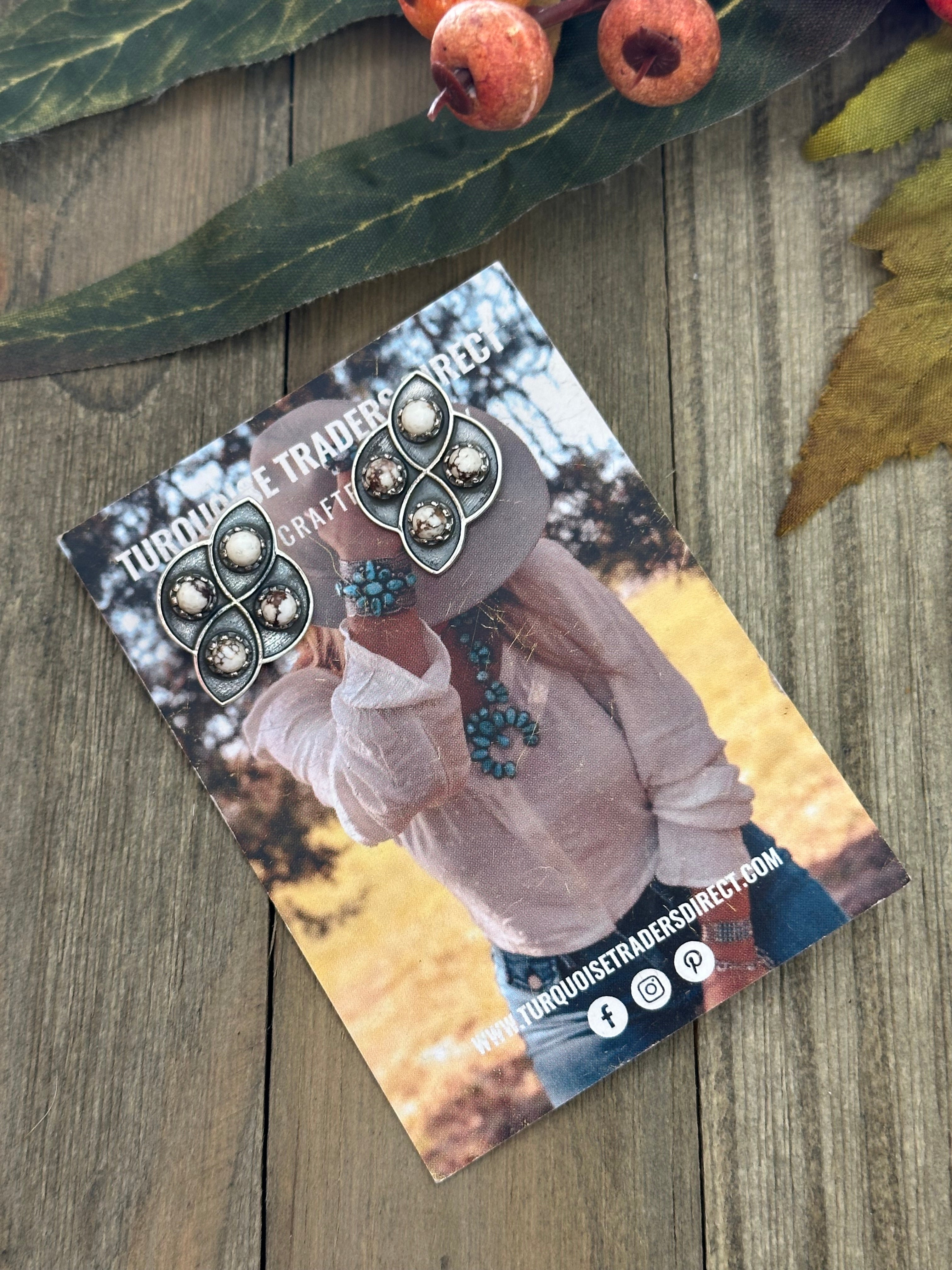 Southwest Handmade Wild Horse & Sterling Silver Post Cluster Earrings