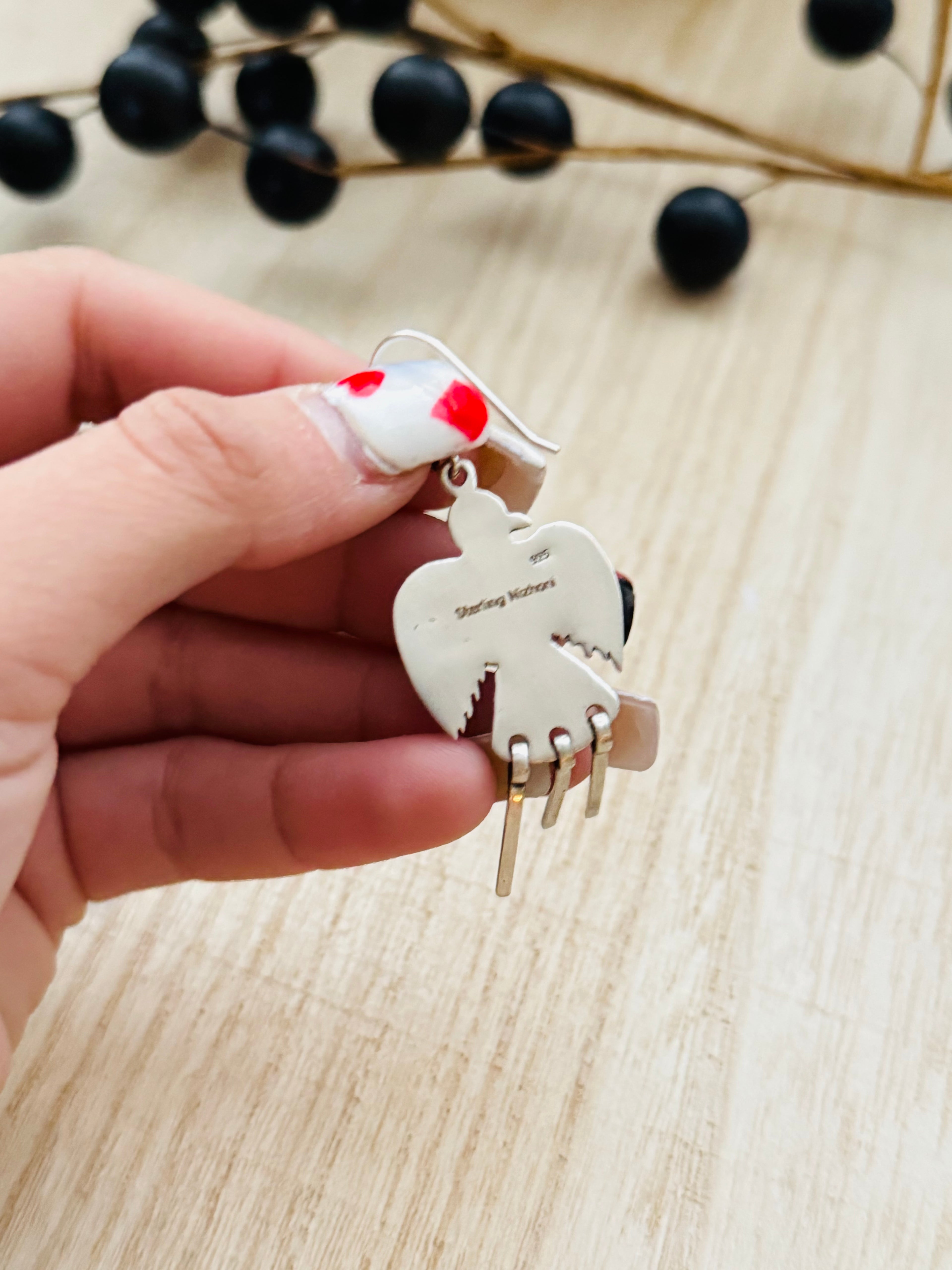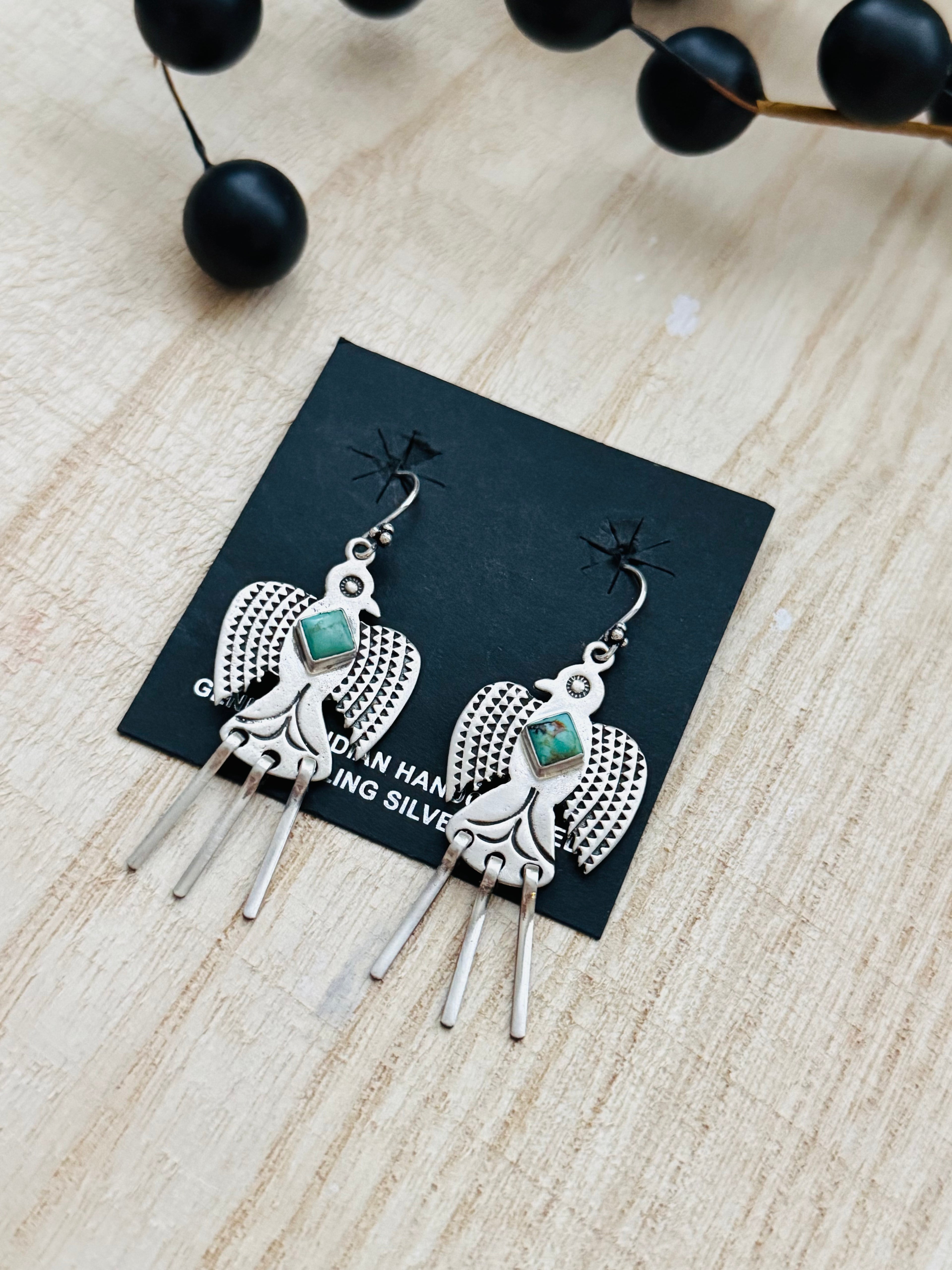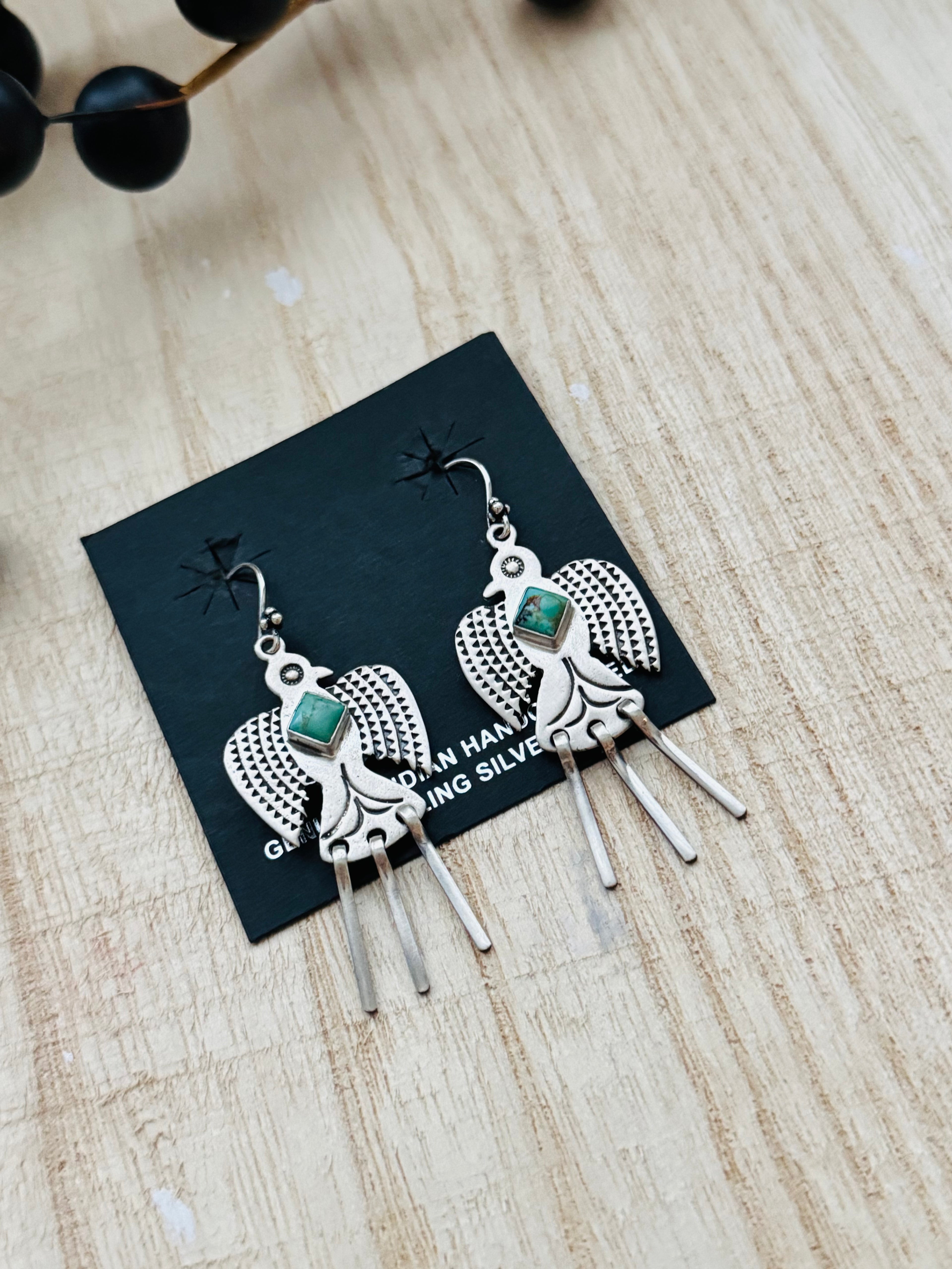 Southwest Handmade Kingman Turquoise & Sterling Silver Dangle Thunderbird Earrings
