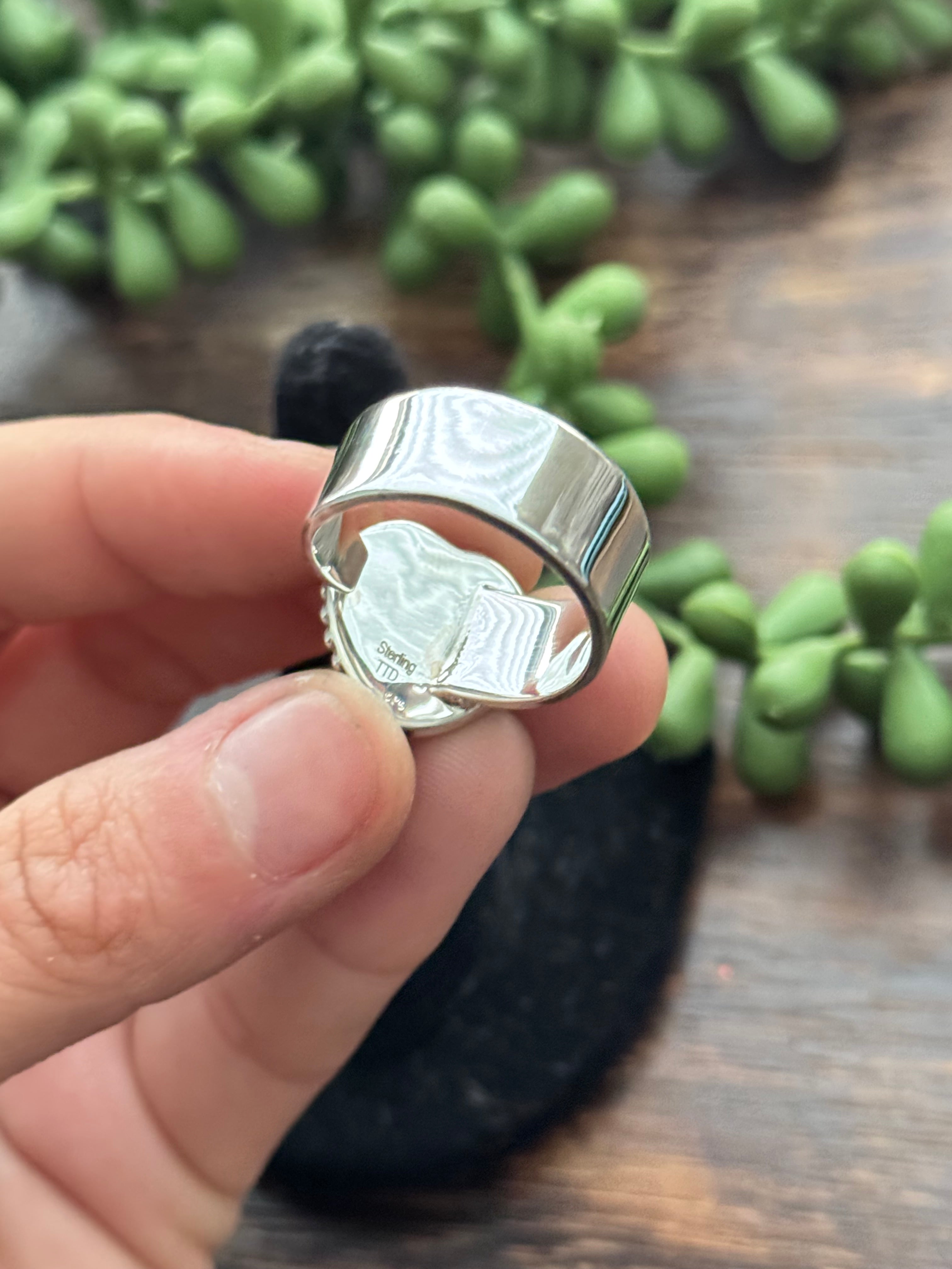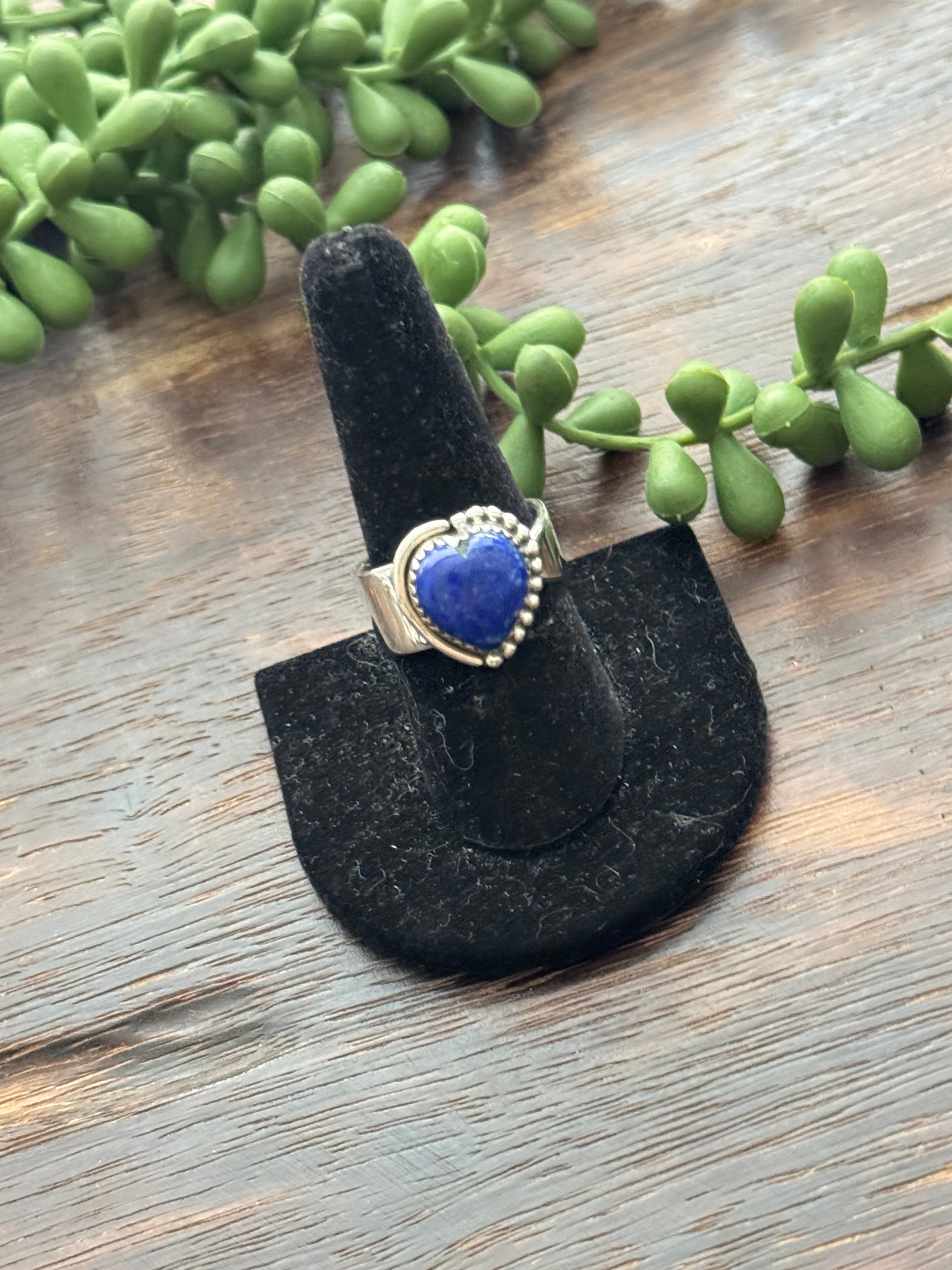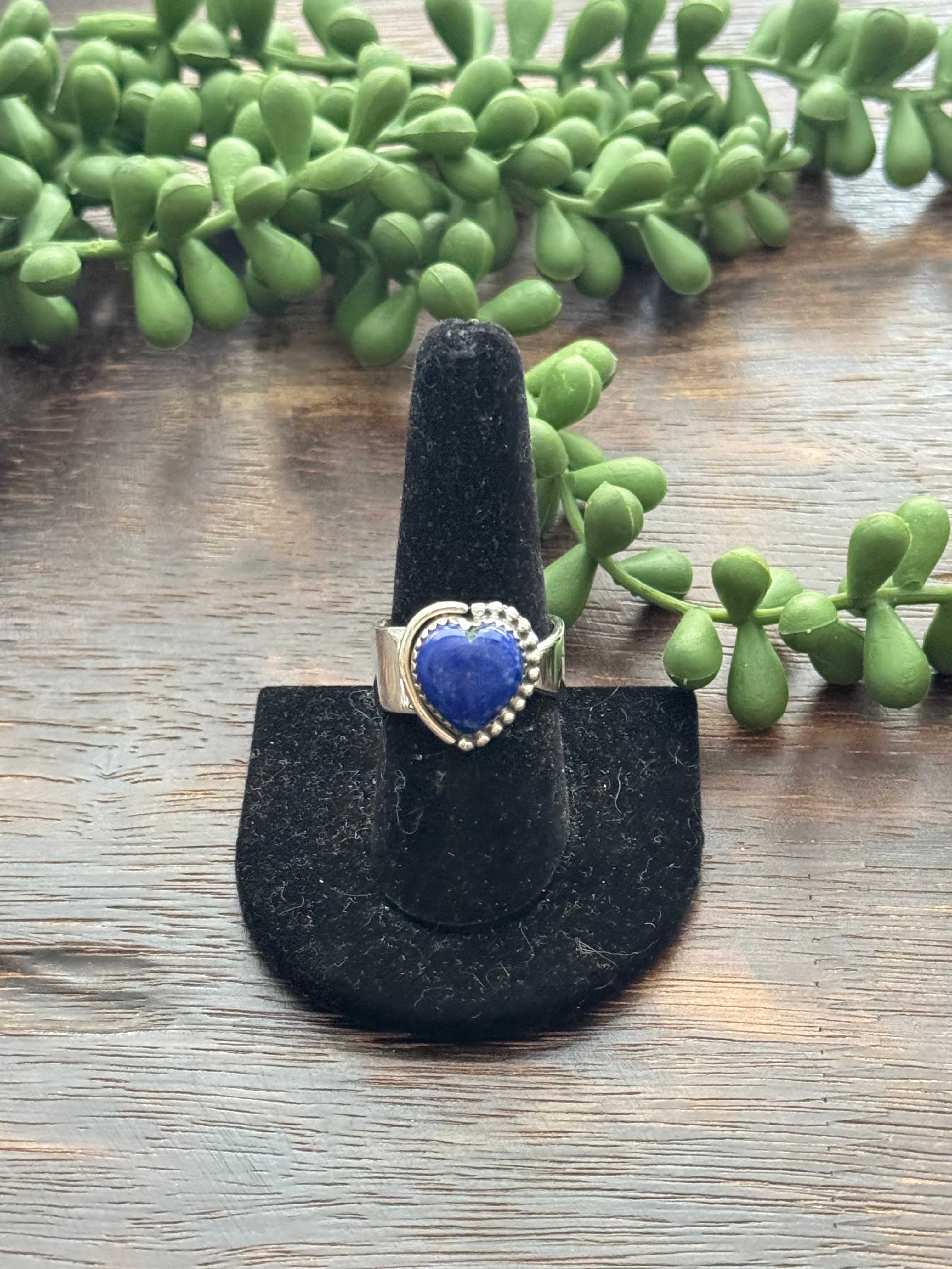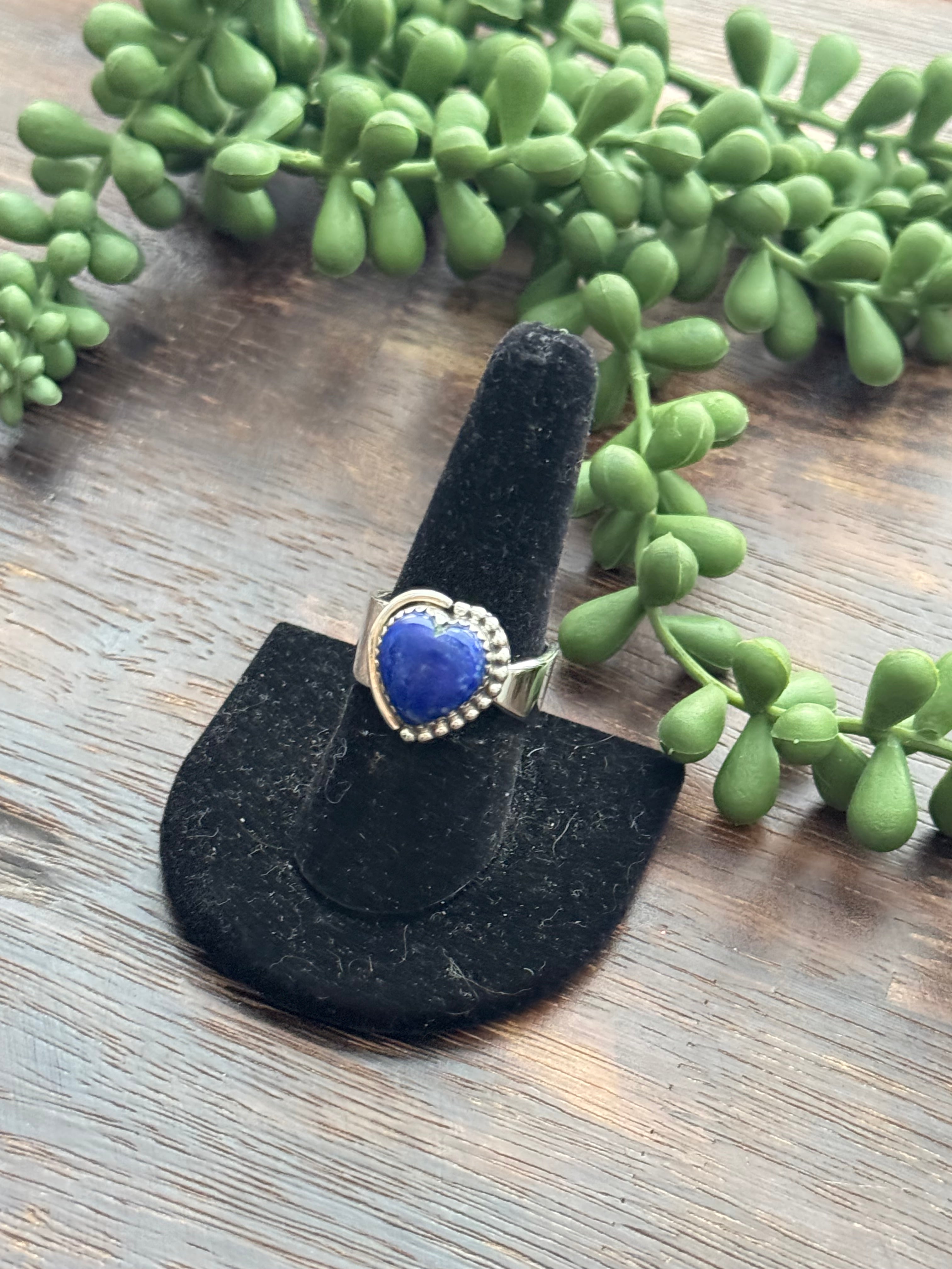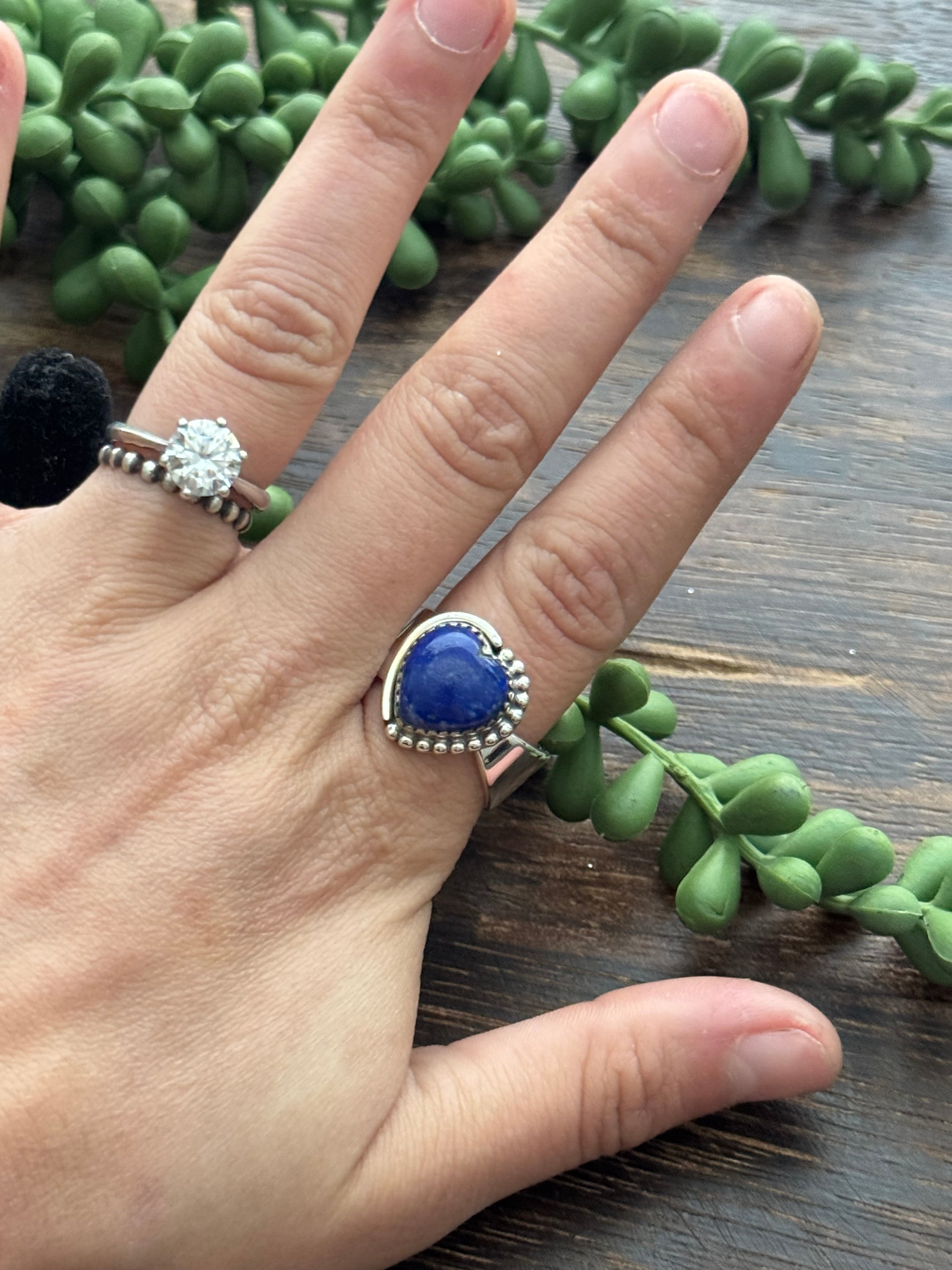Beautiful heart ring. Southwest Handmade Lapis & Sterling Silver Adjustable Heart Ring. It measures 3/8 of an inch long and 5/8 of an inch wide. Signed by the artist and stamped sterling silver.