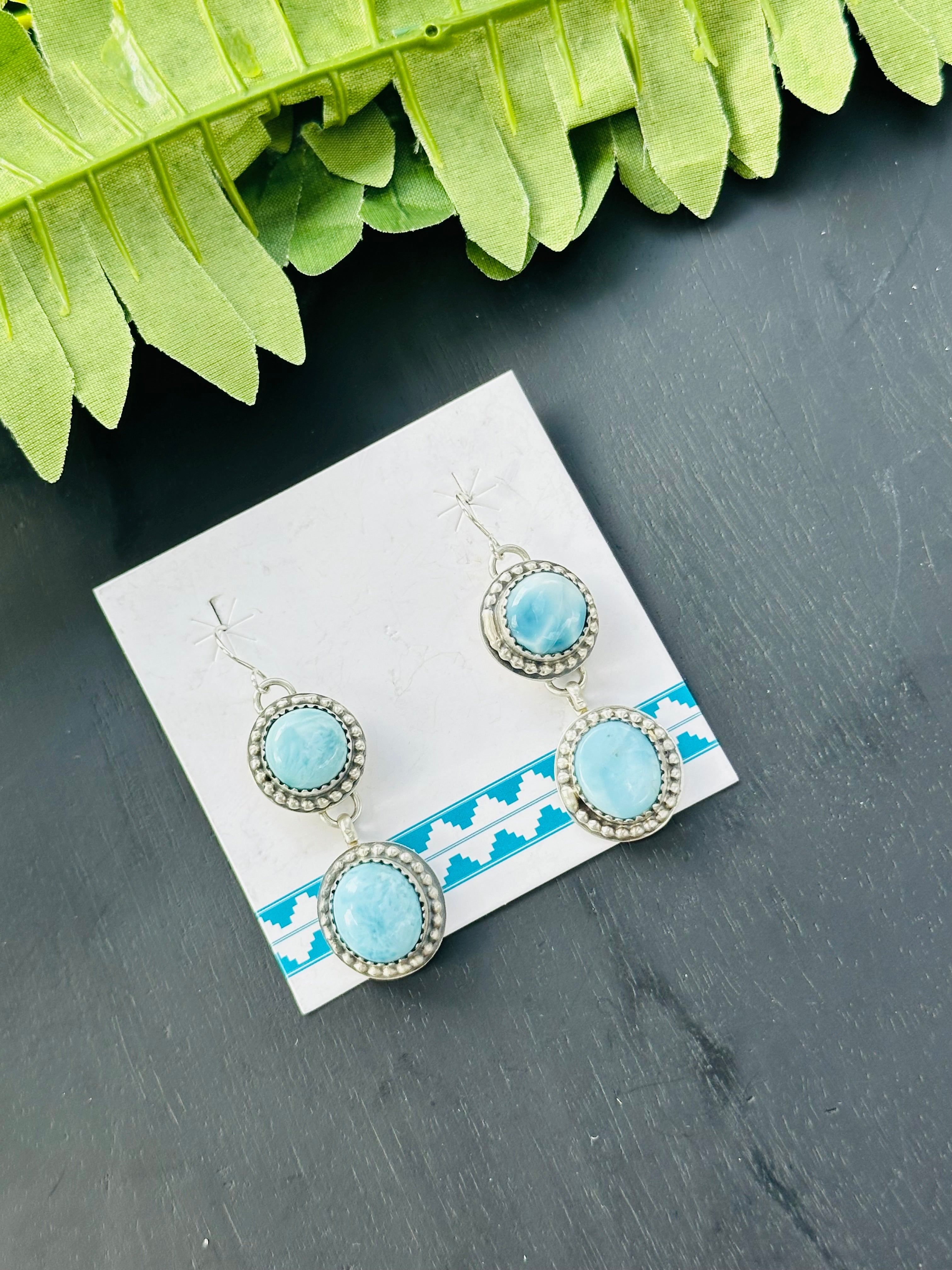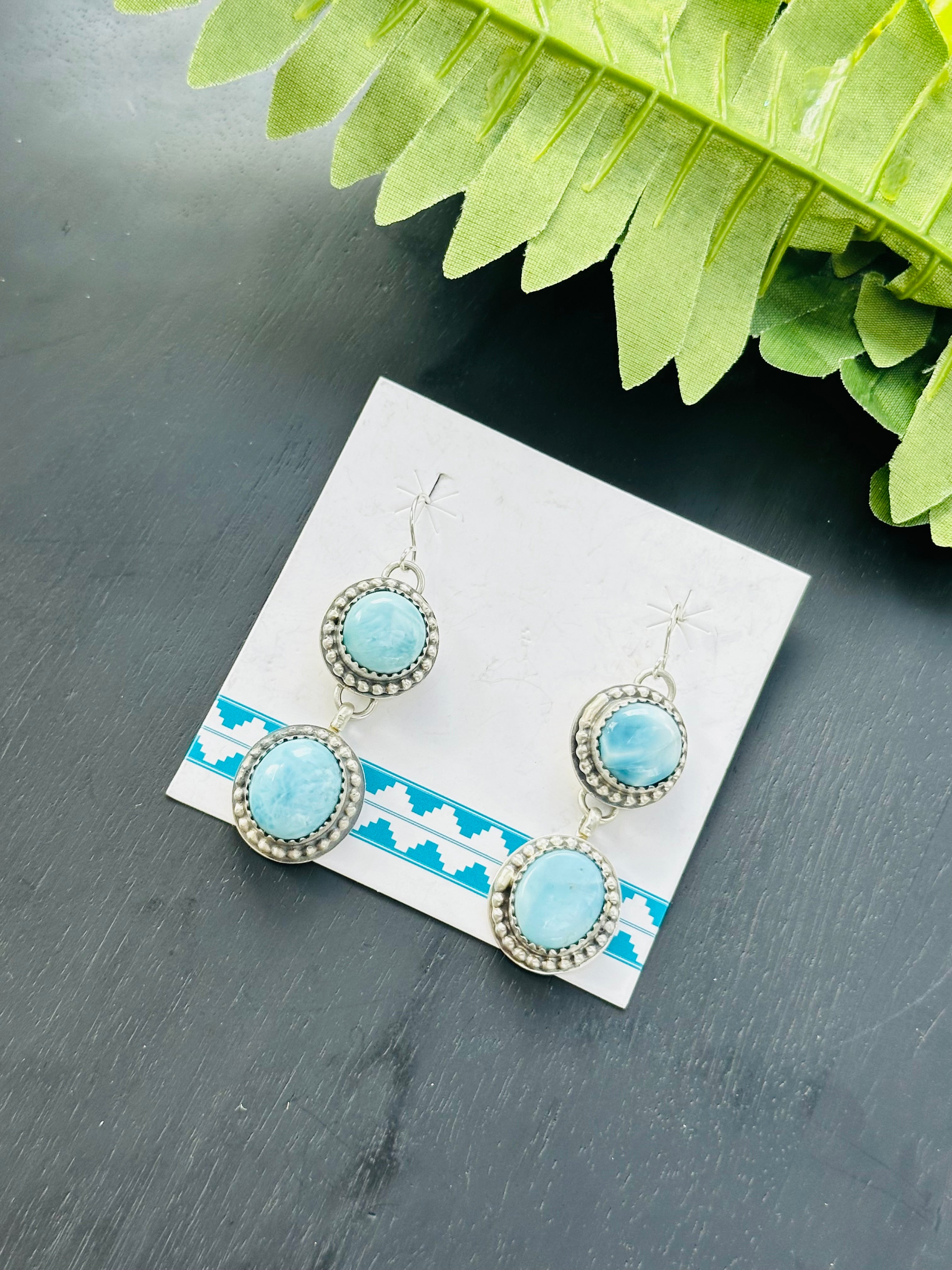 Kevin Begay Larimar & Sterling Silver Dangle Earrings