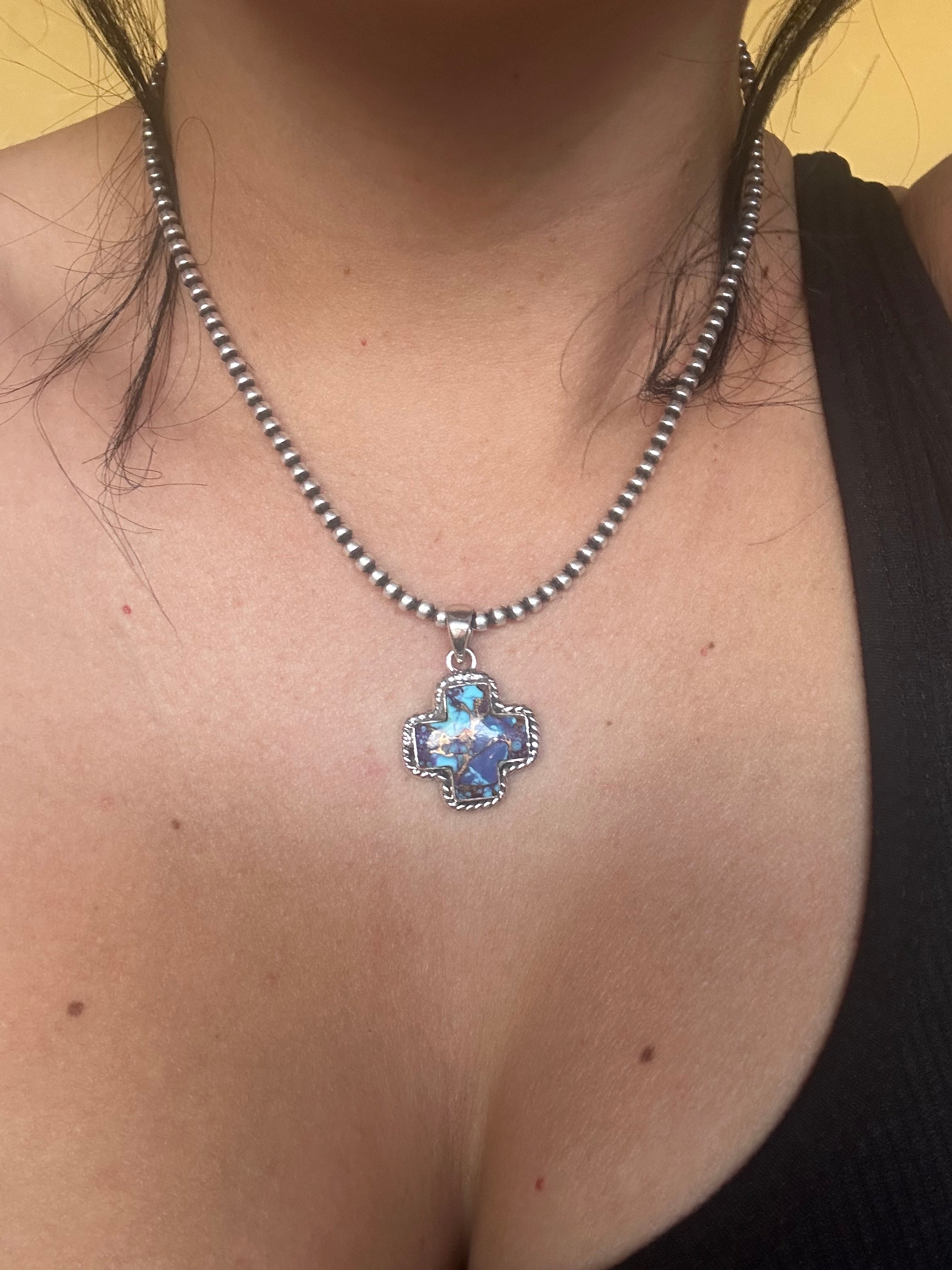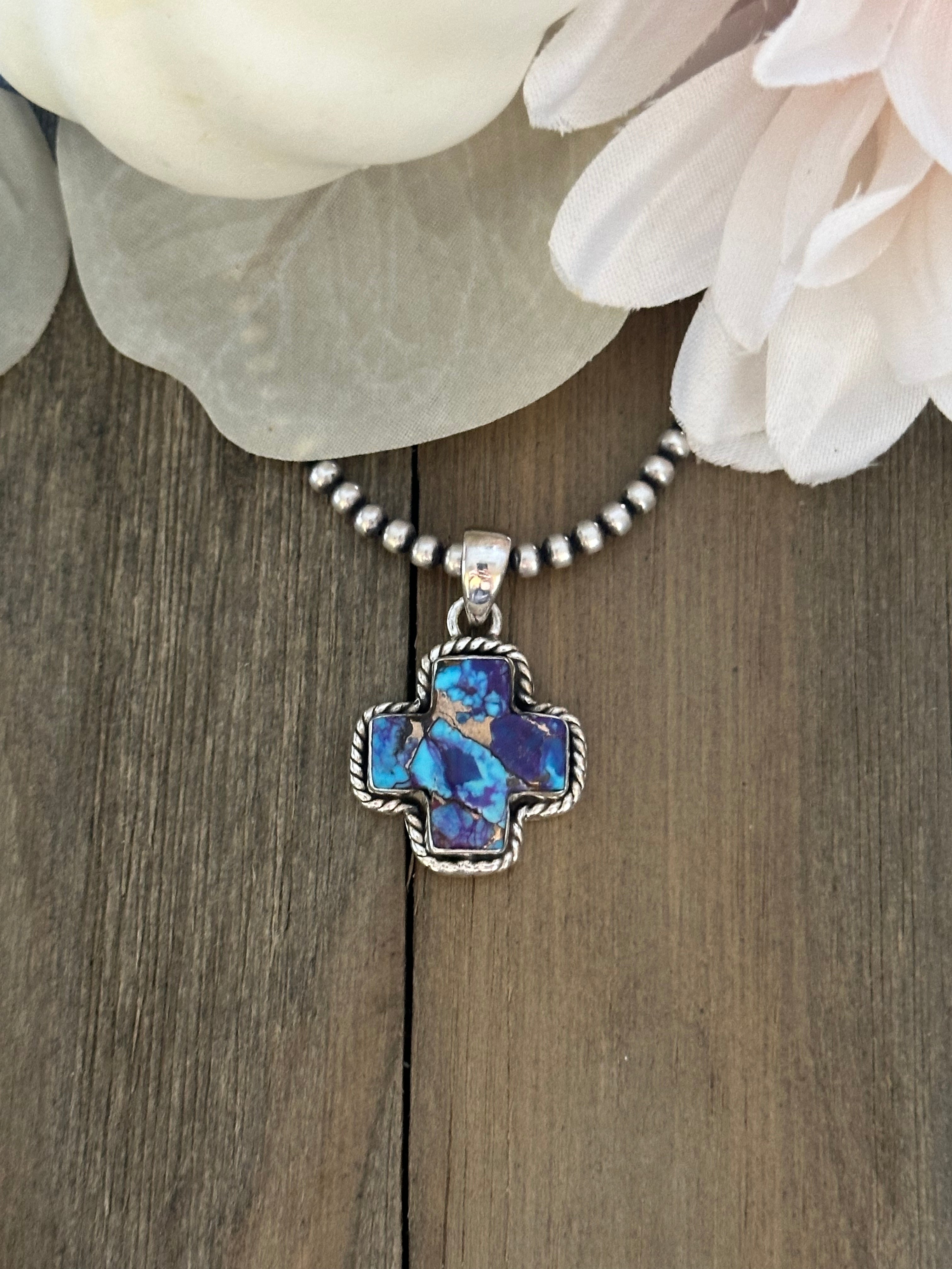 Southwest Handmade Mohave Turquoise & Sterling Silver Pendant