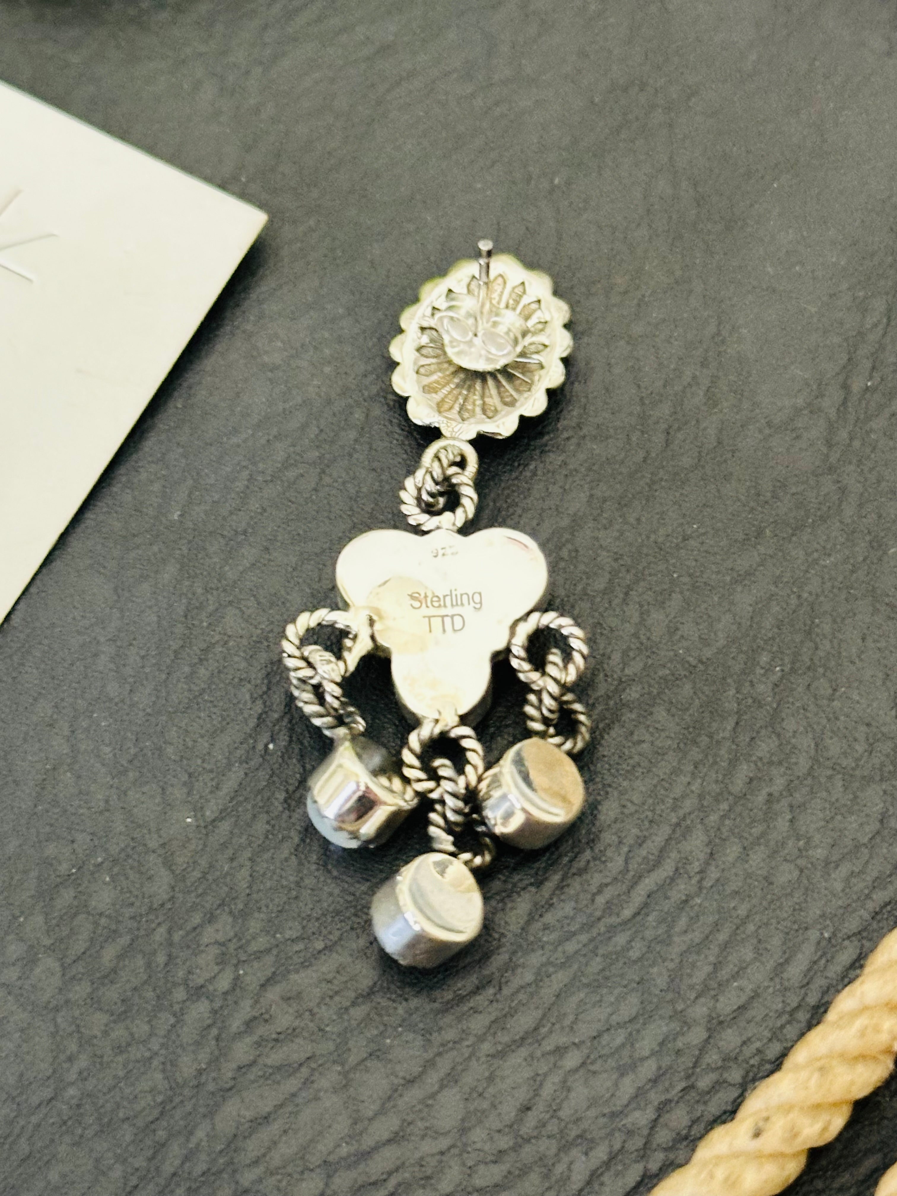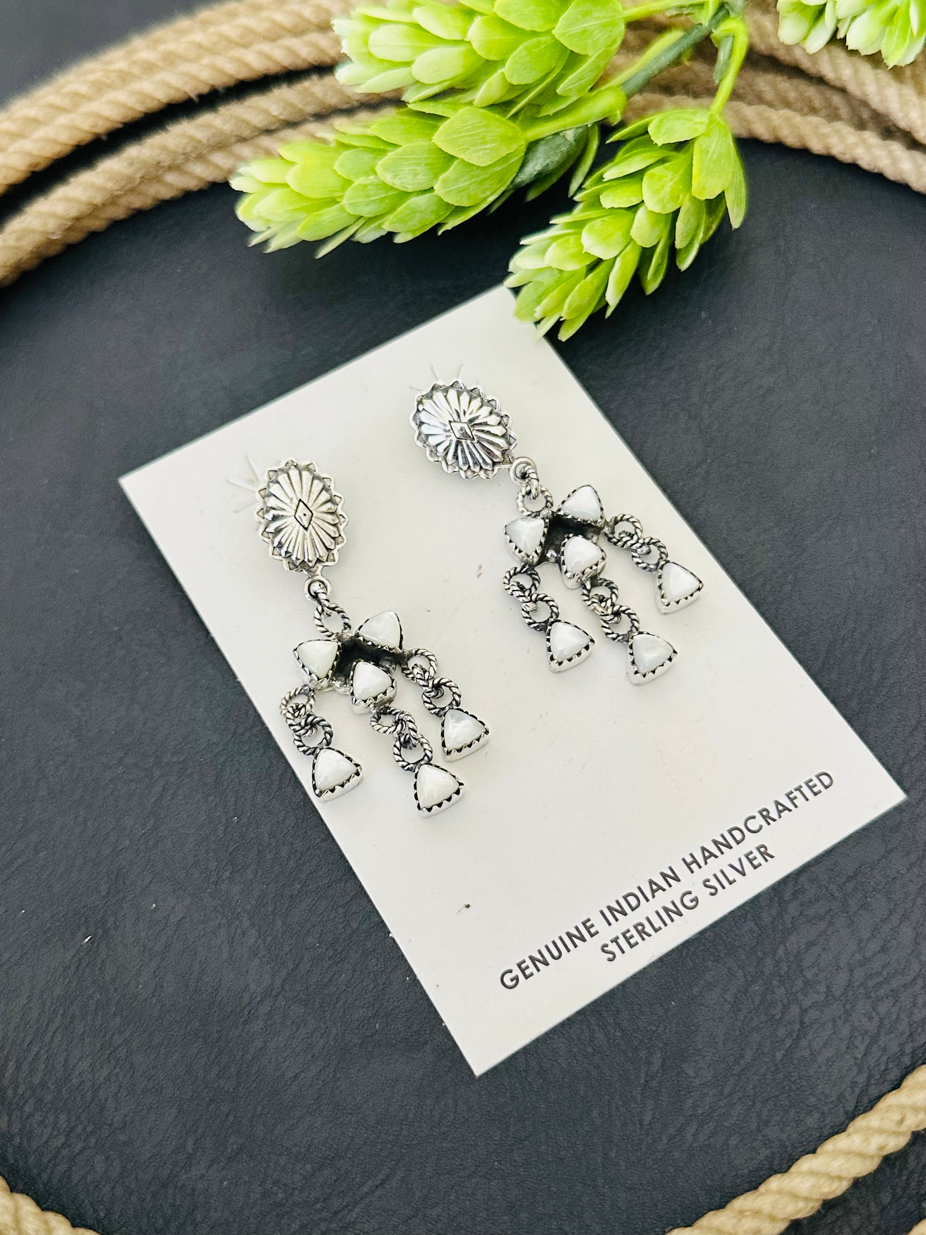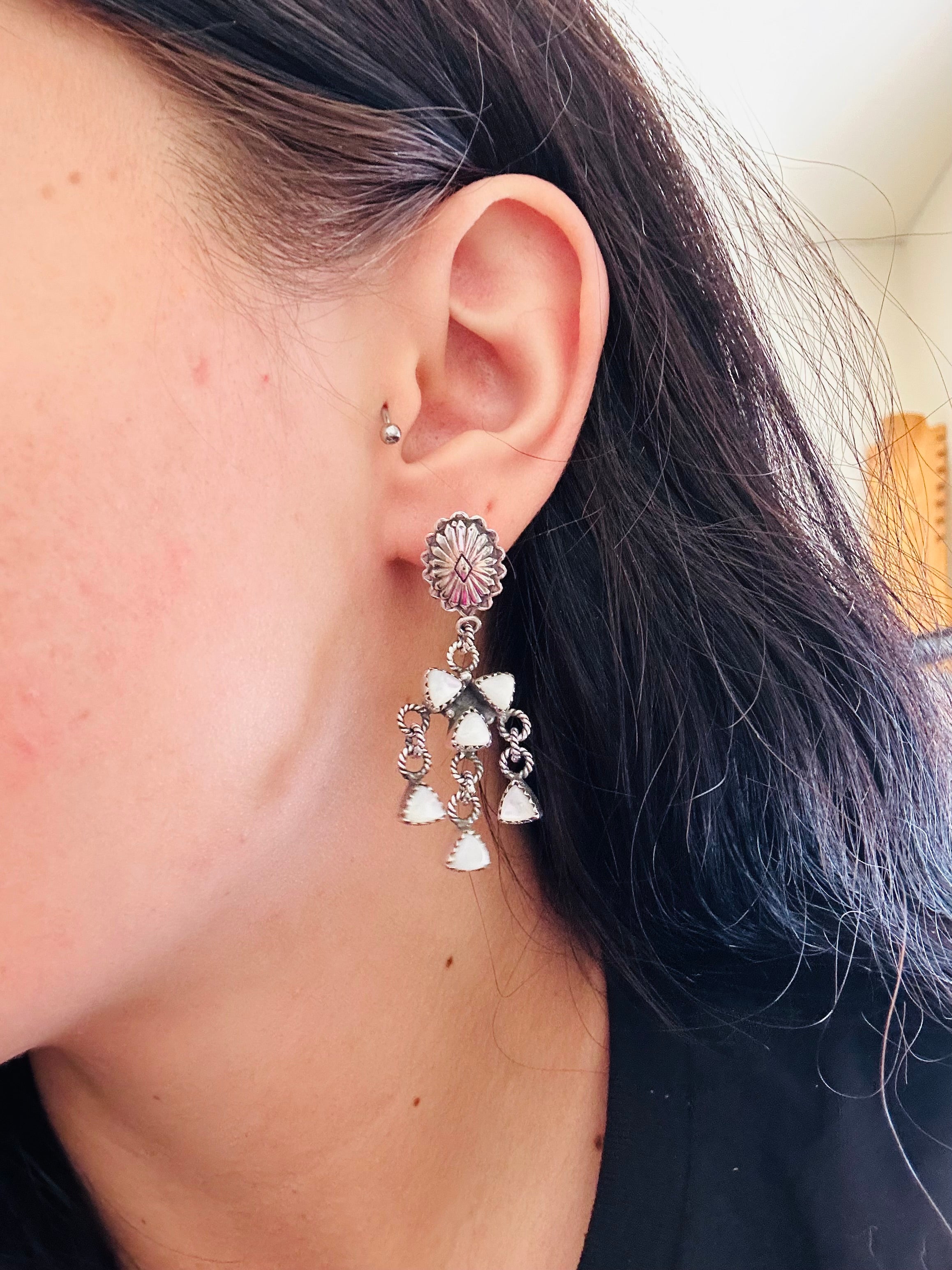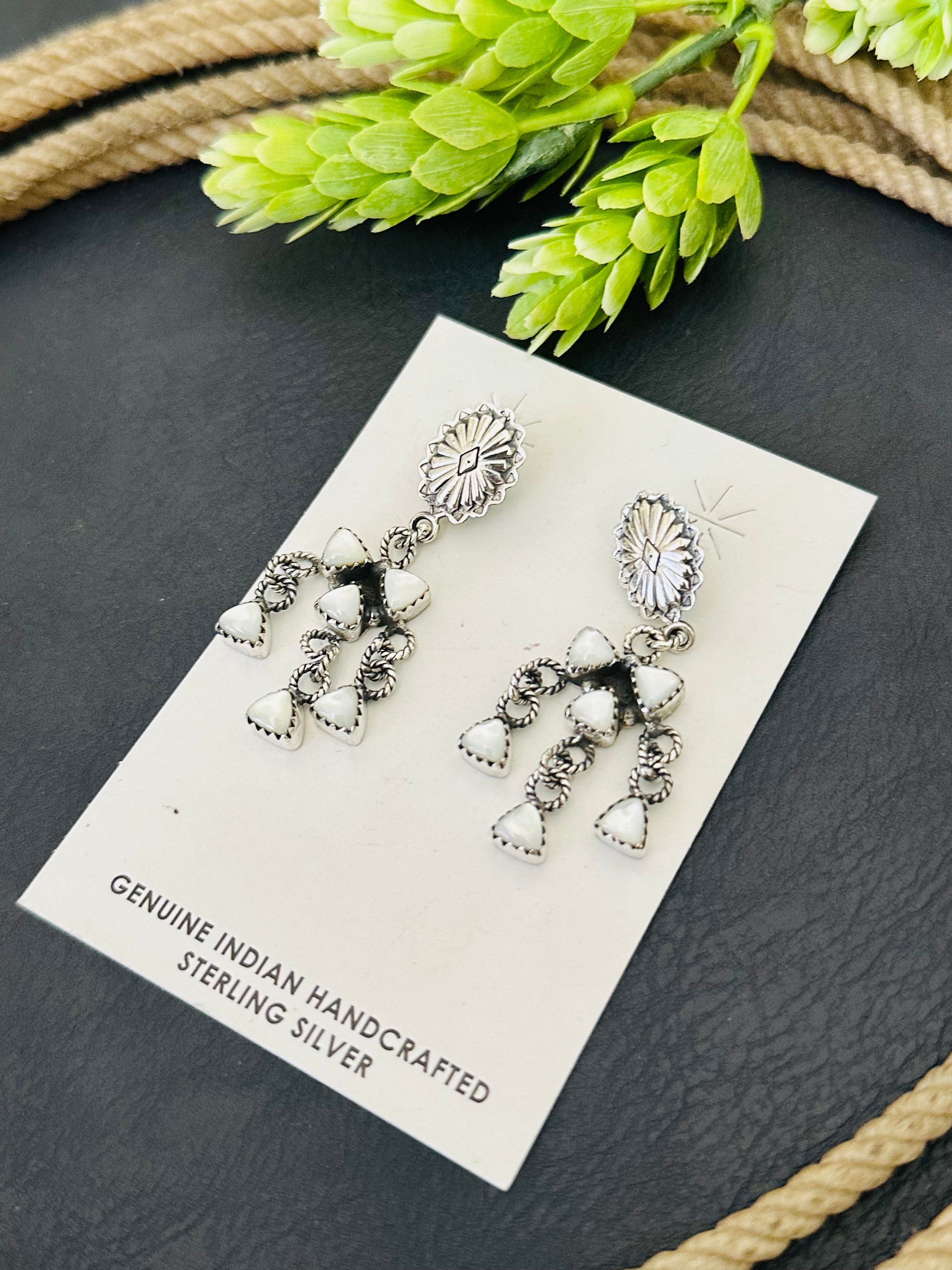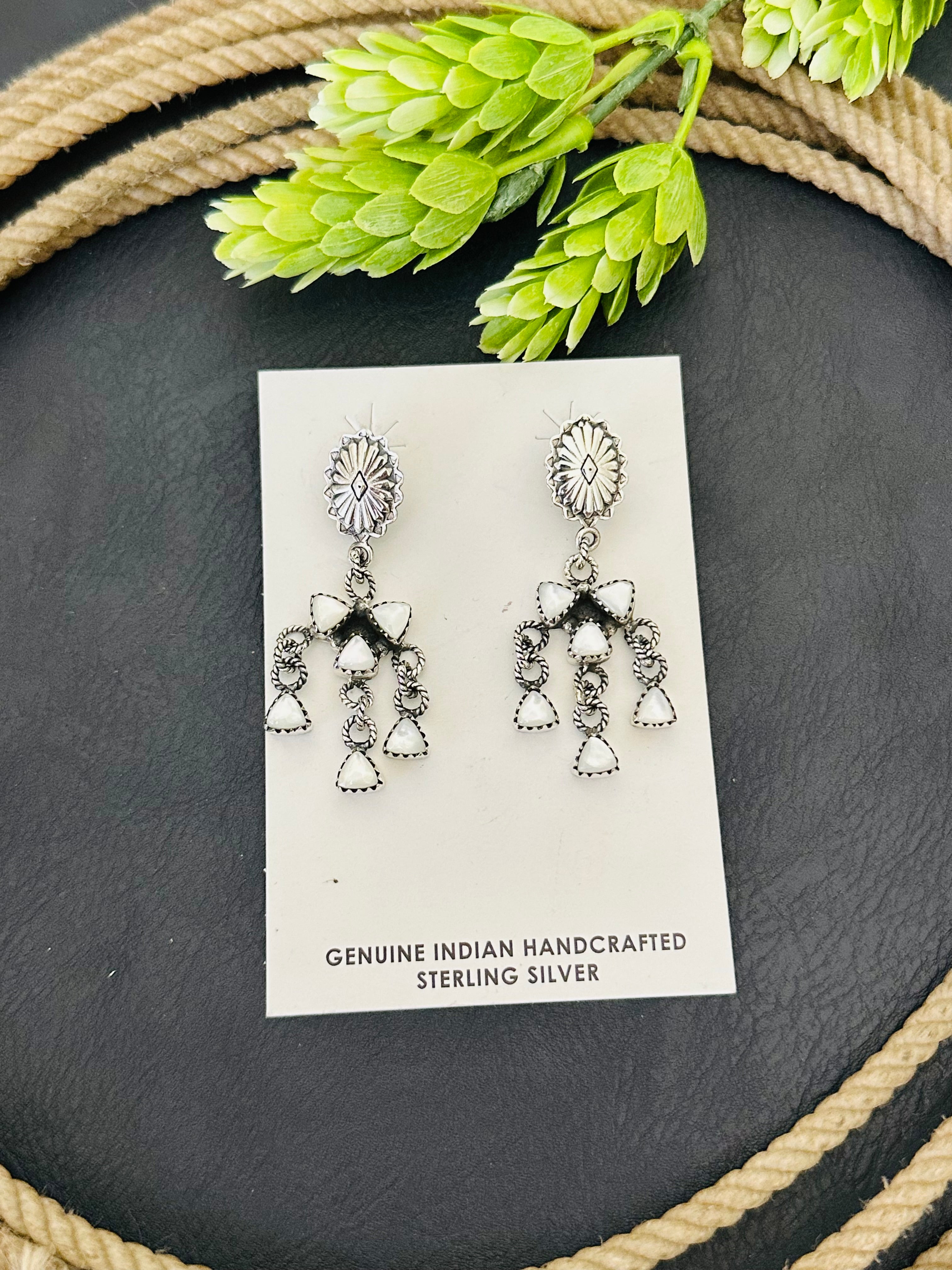 Southwest Handmade Mother of Pearl & Sterling Silver Post Dangle Earrings