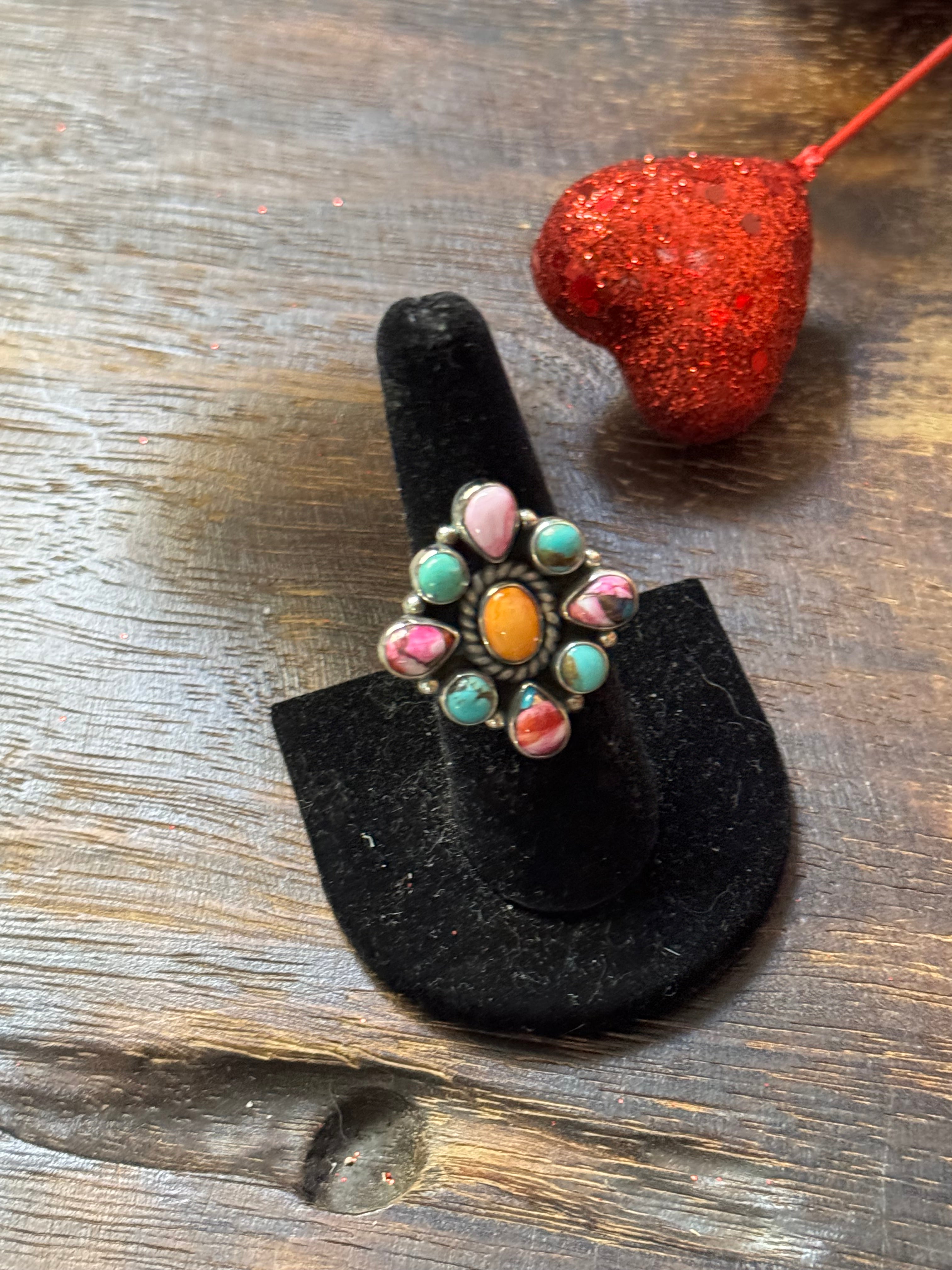 Southwest Handmade Multi Stone & Sterling Silver Adjustable Cluster Ring