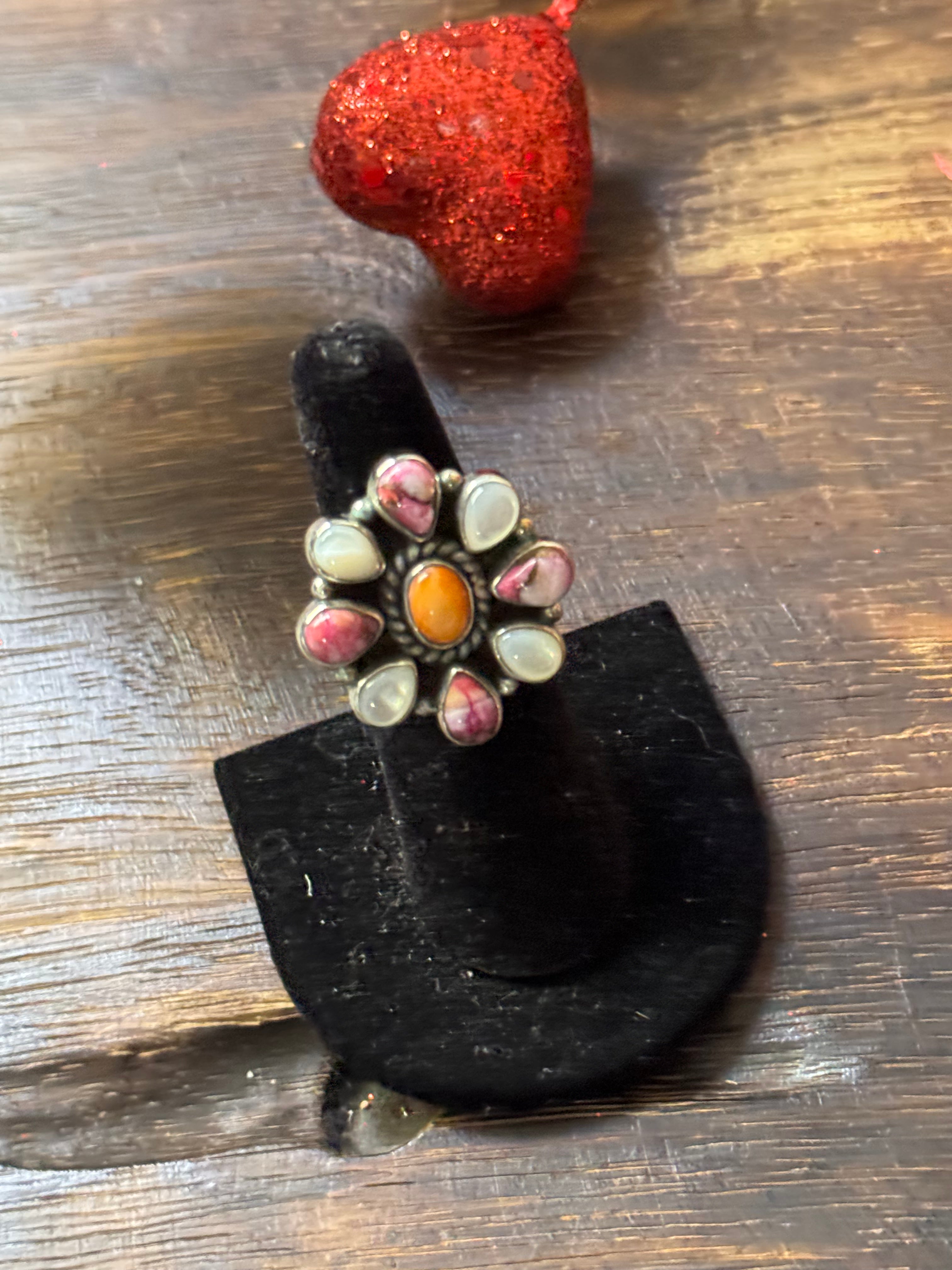 Southwest Handmade Multi Stone & Sterling Silver Adjustable Cluster Ring