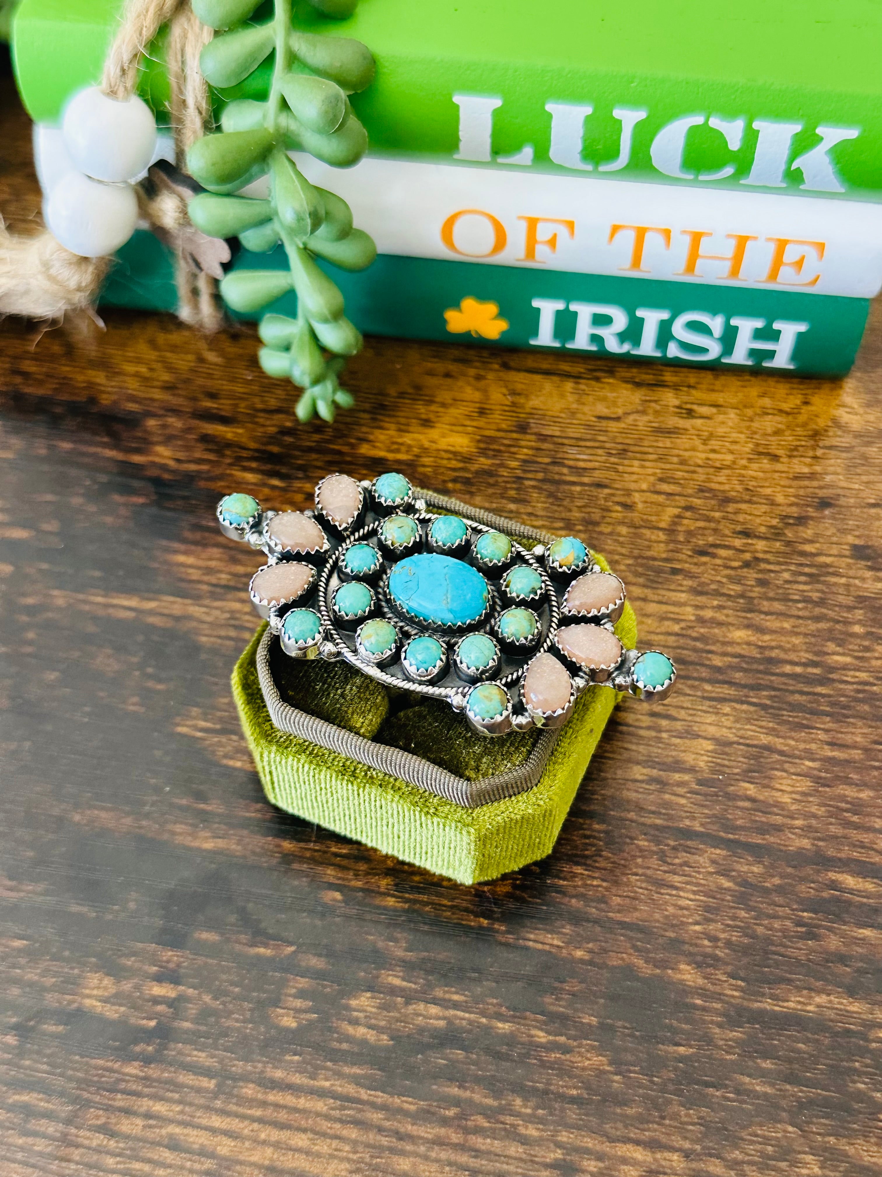 Southwest Handmade Multi Stone & Sterling Silver Adjustable Cluster Ring