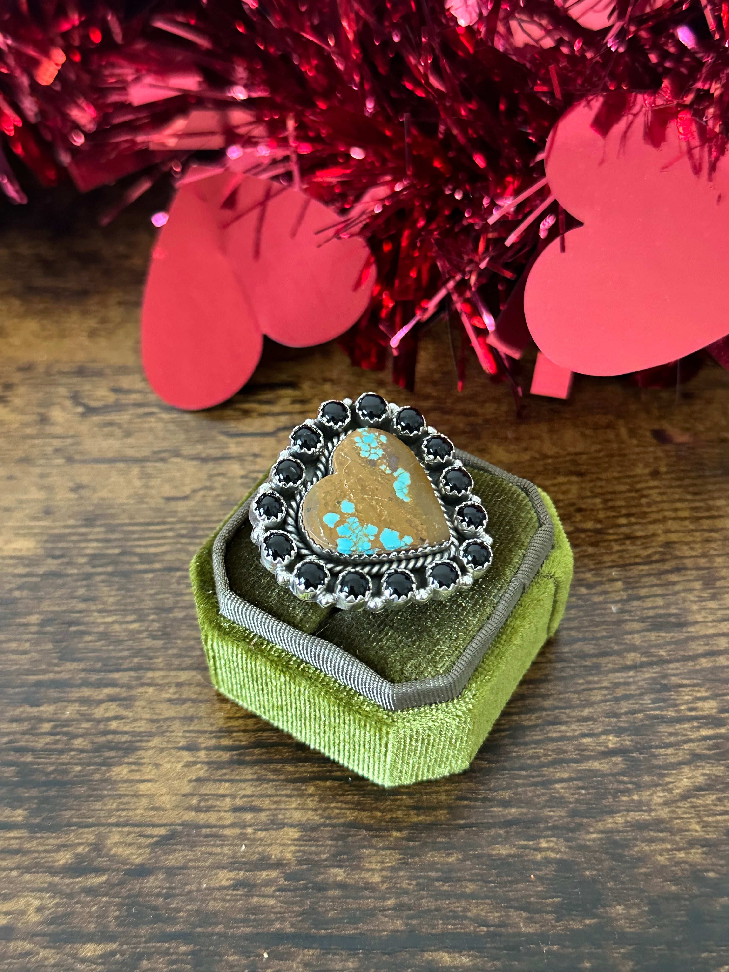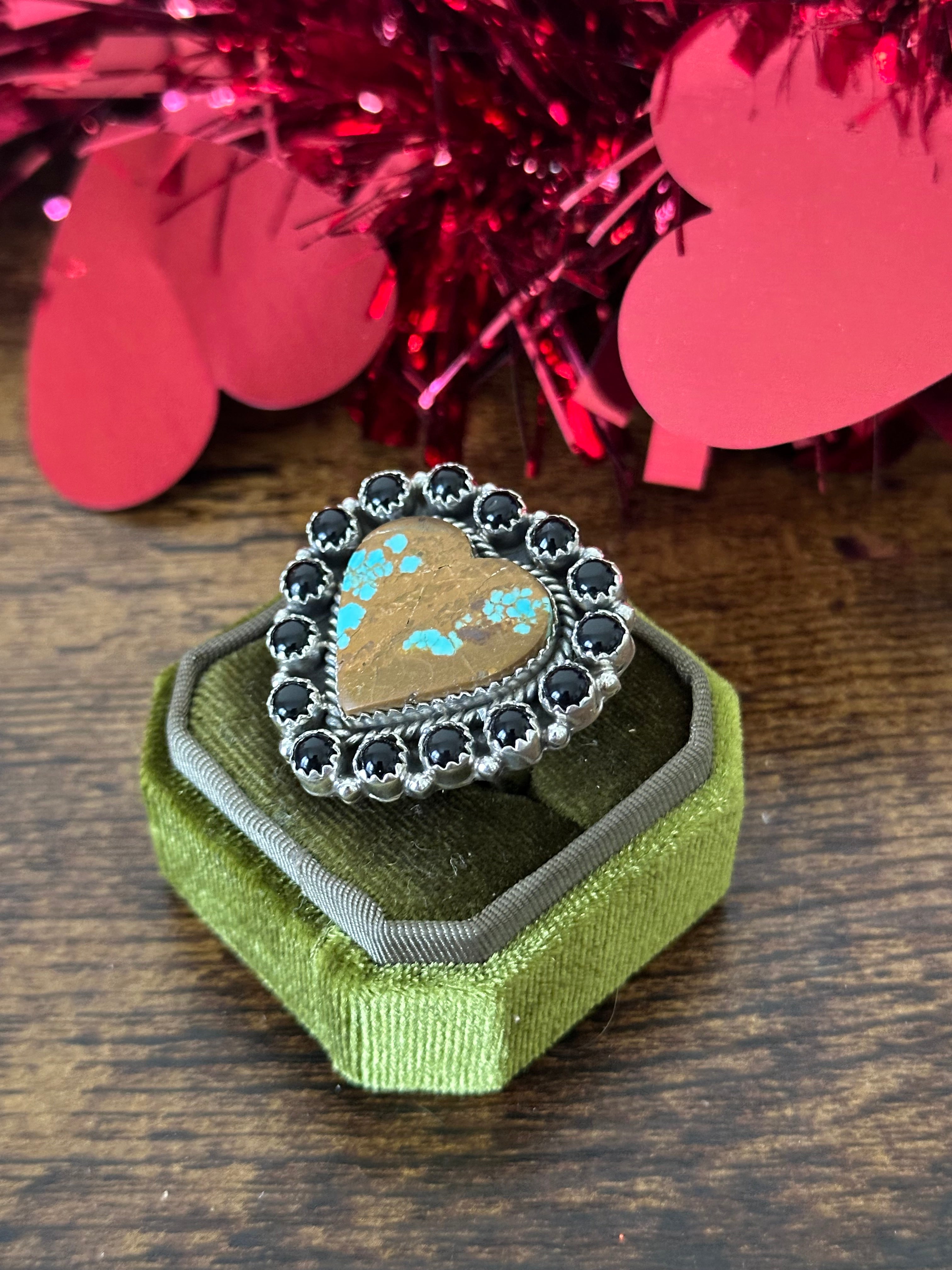 Southwest Handmade Multi Stone & Sterling Silver Cluster Adjustable Heart Ring