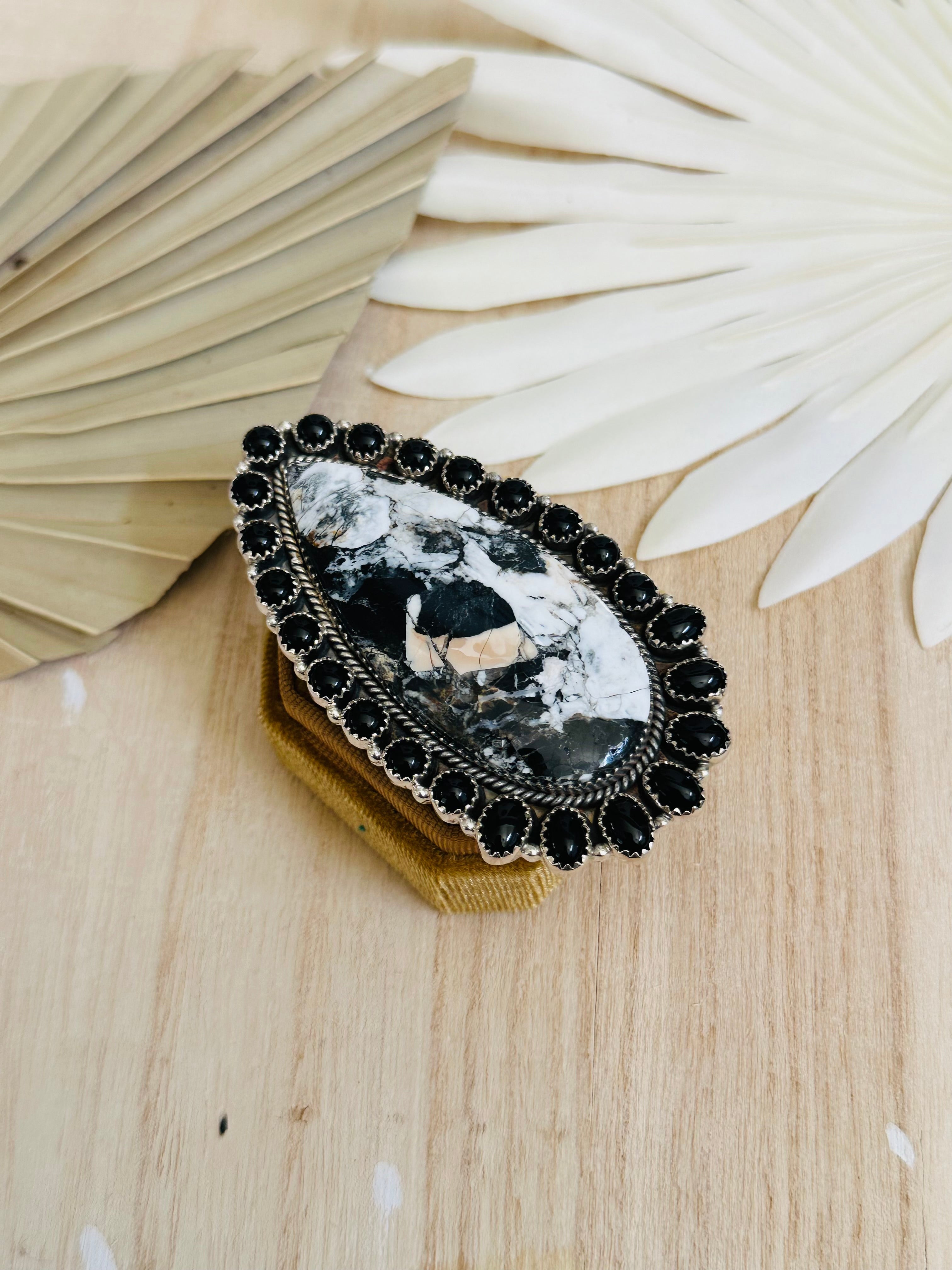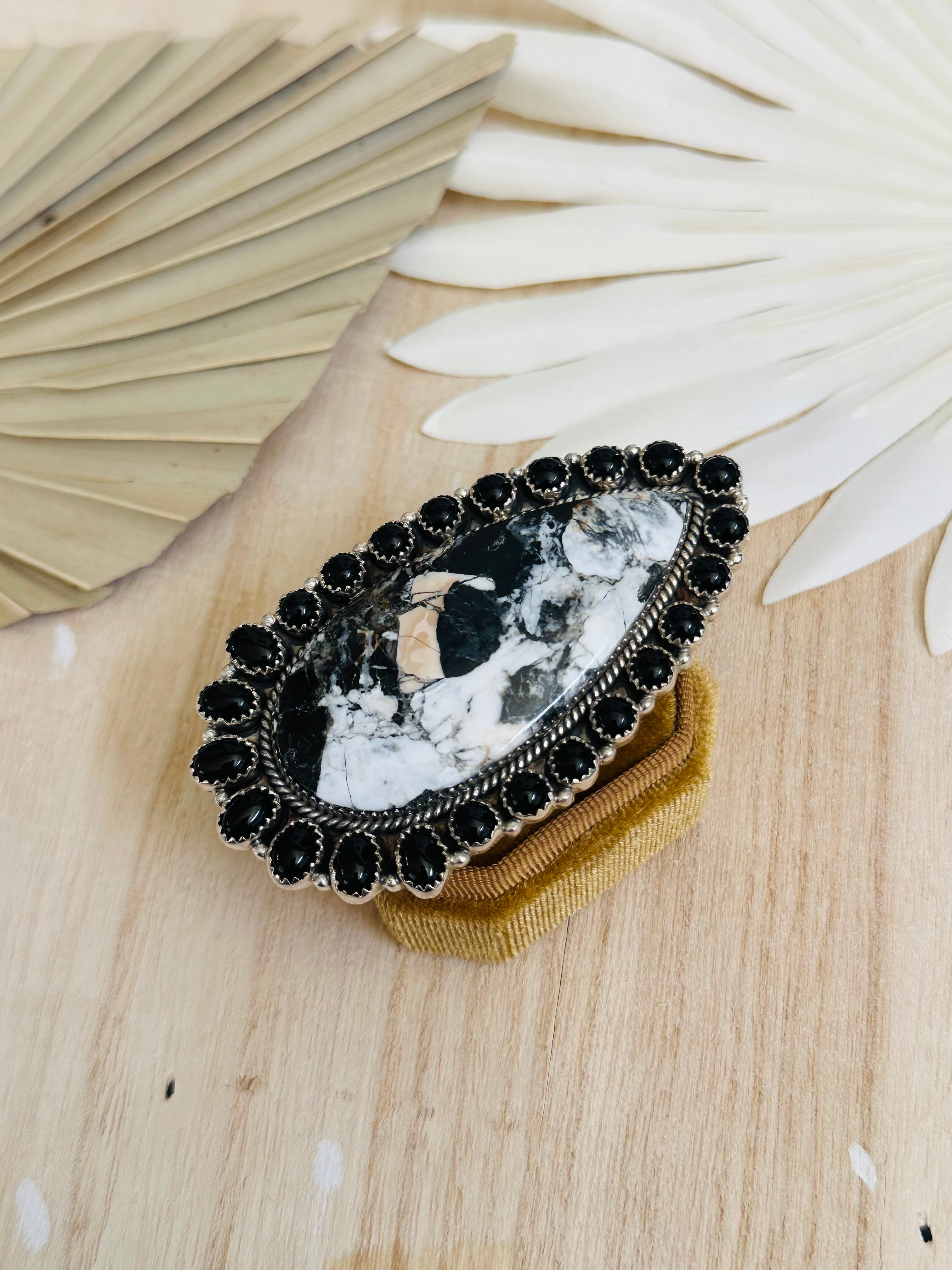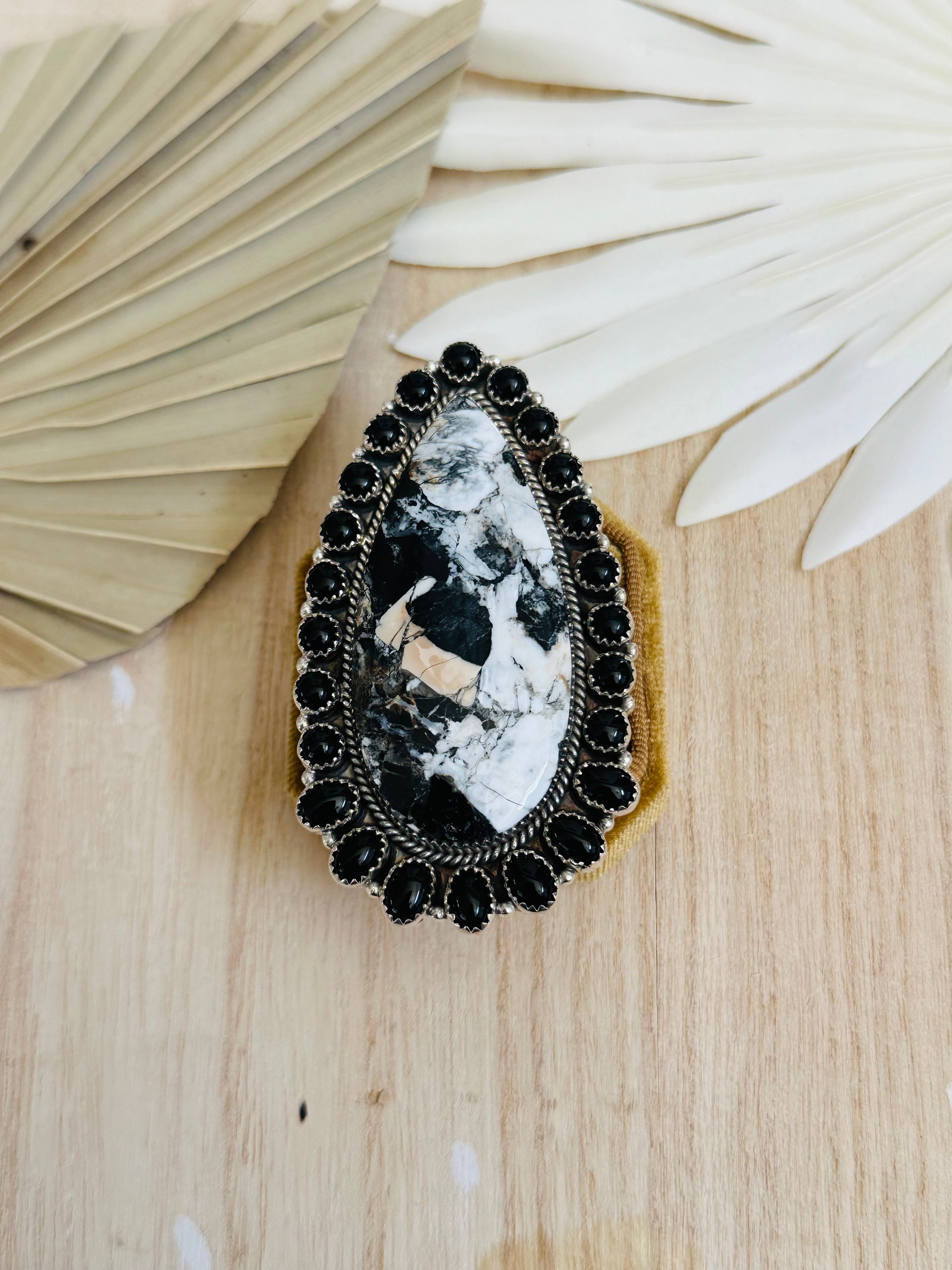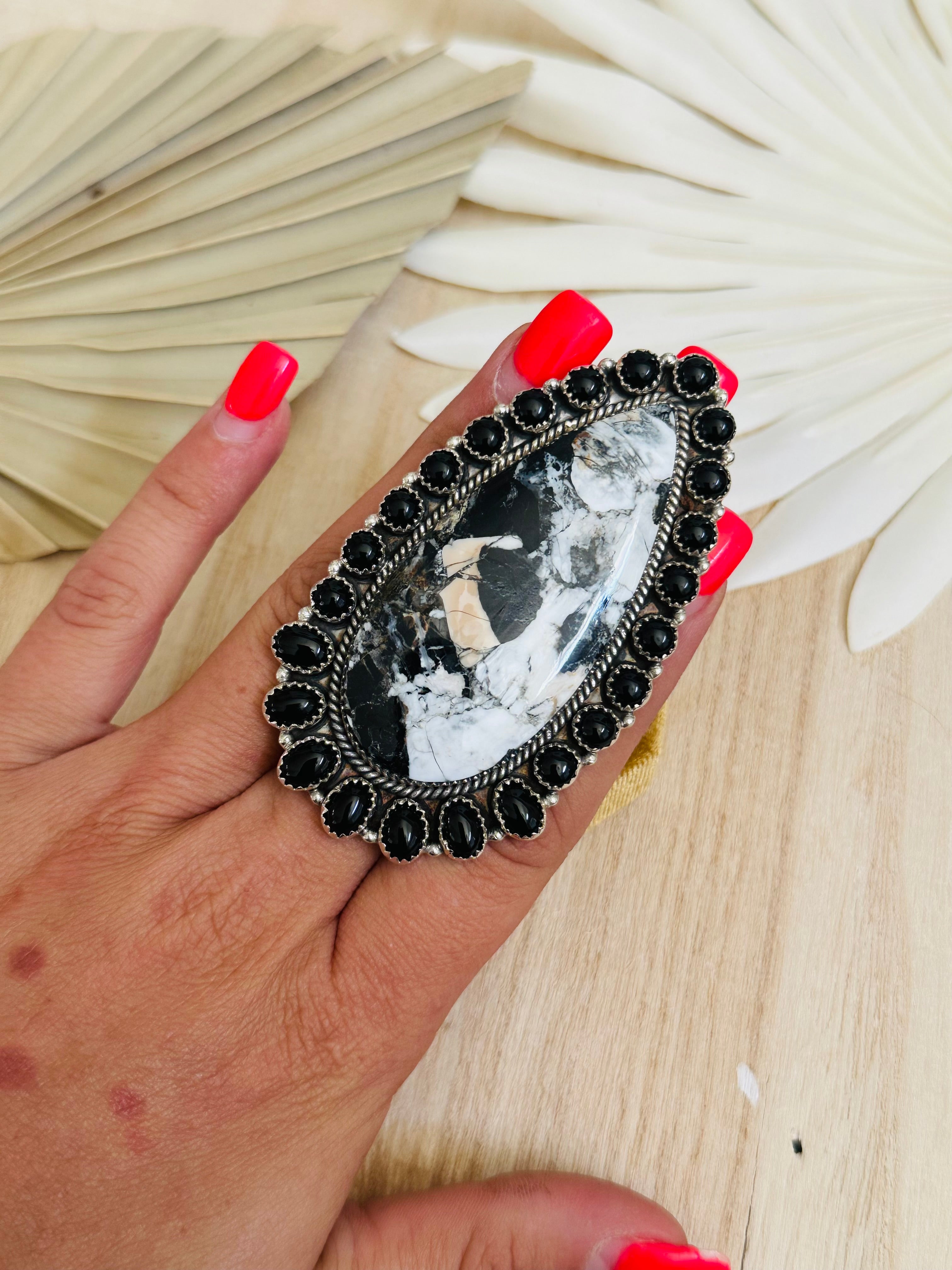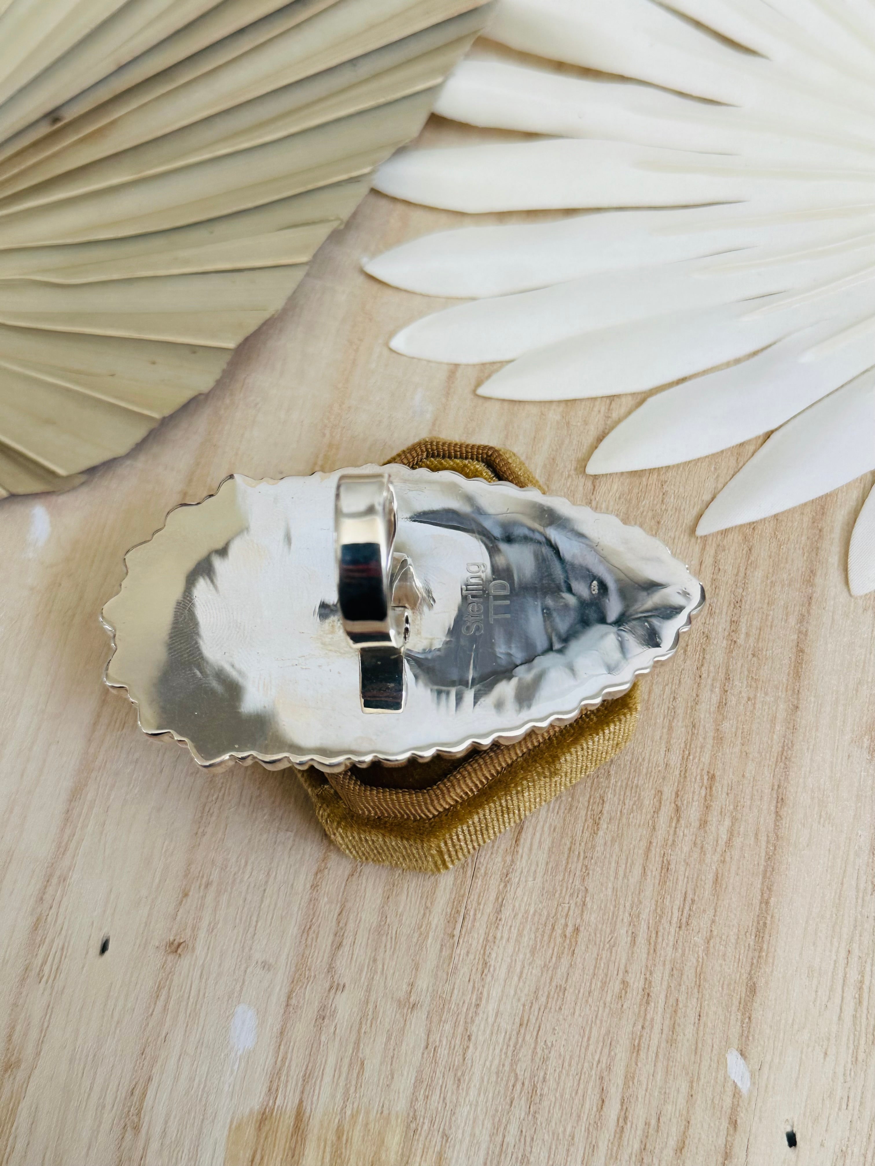 Beautiful cluster rings. Southwest Handmade Multi Stone & Sterling Silver Cluster Adjustable Ring. It measures 3 inches long and 1 5/8 inches wide. Signed by the artist and stamped sterling silver.