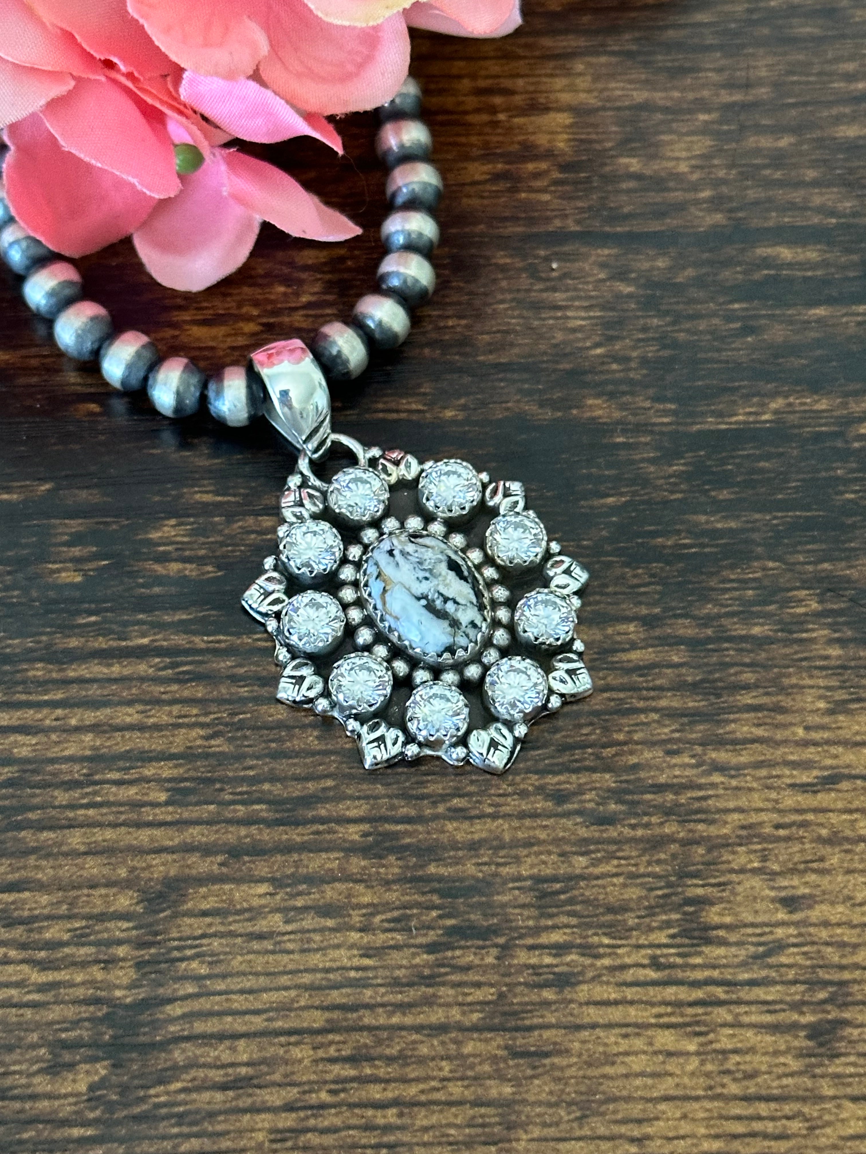 Southwest Handmade Multi Stone & Sterling Silver Cluster Pendant