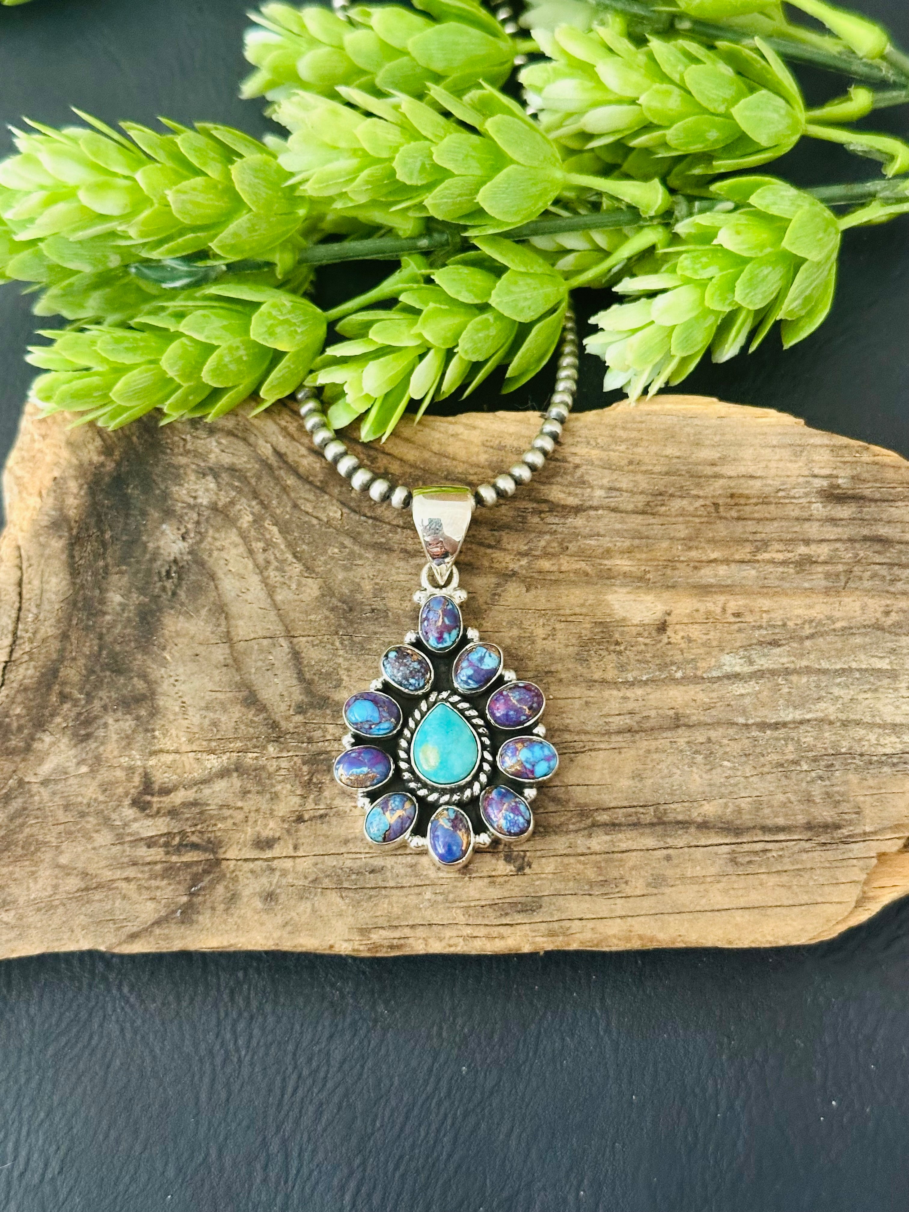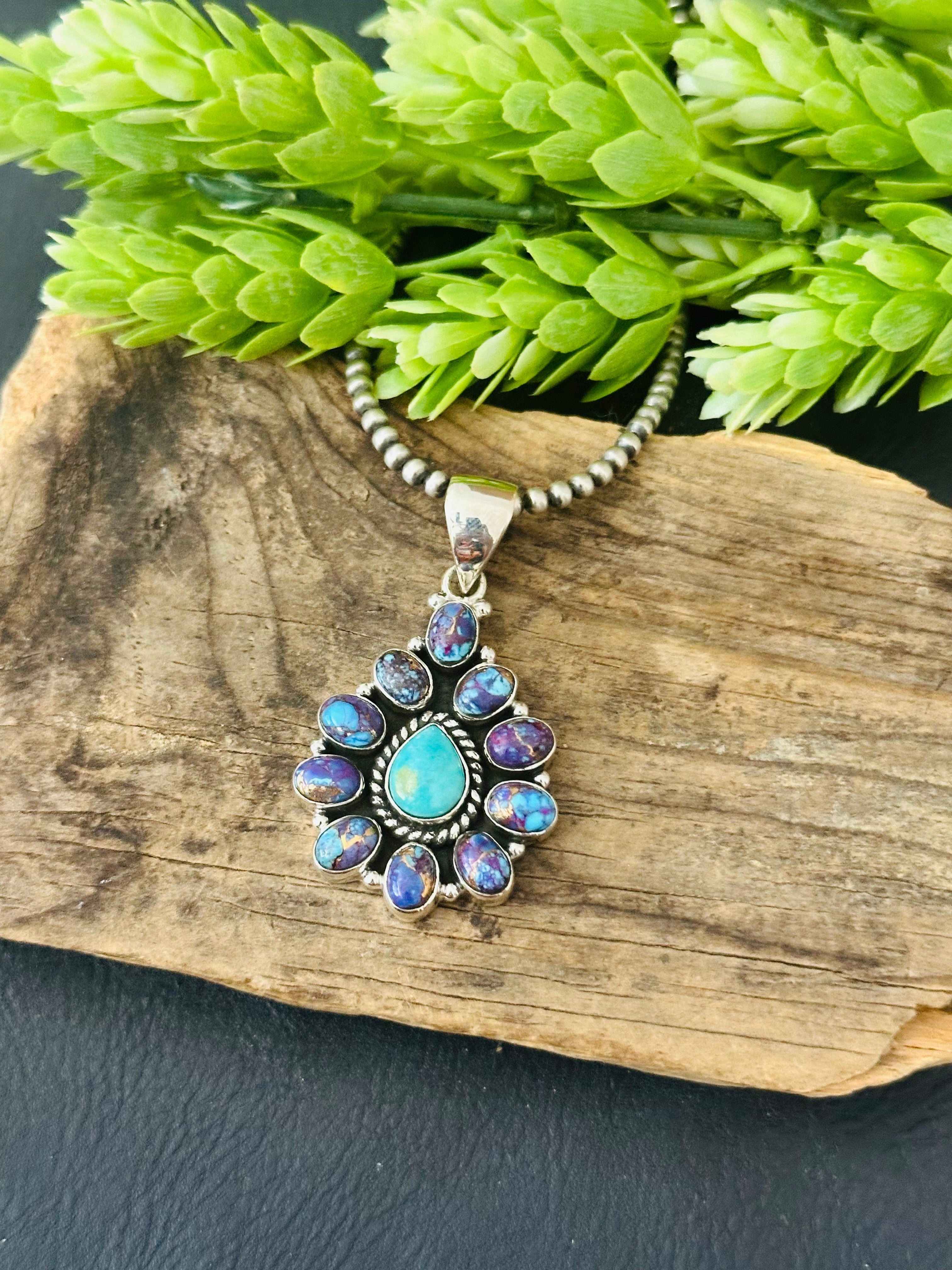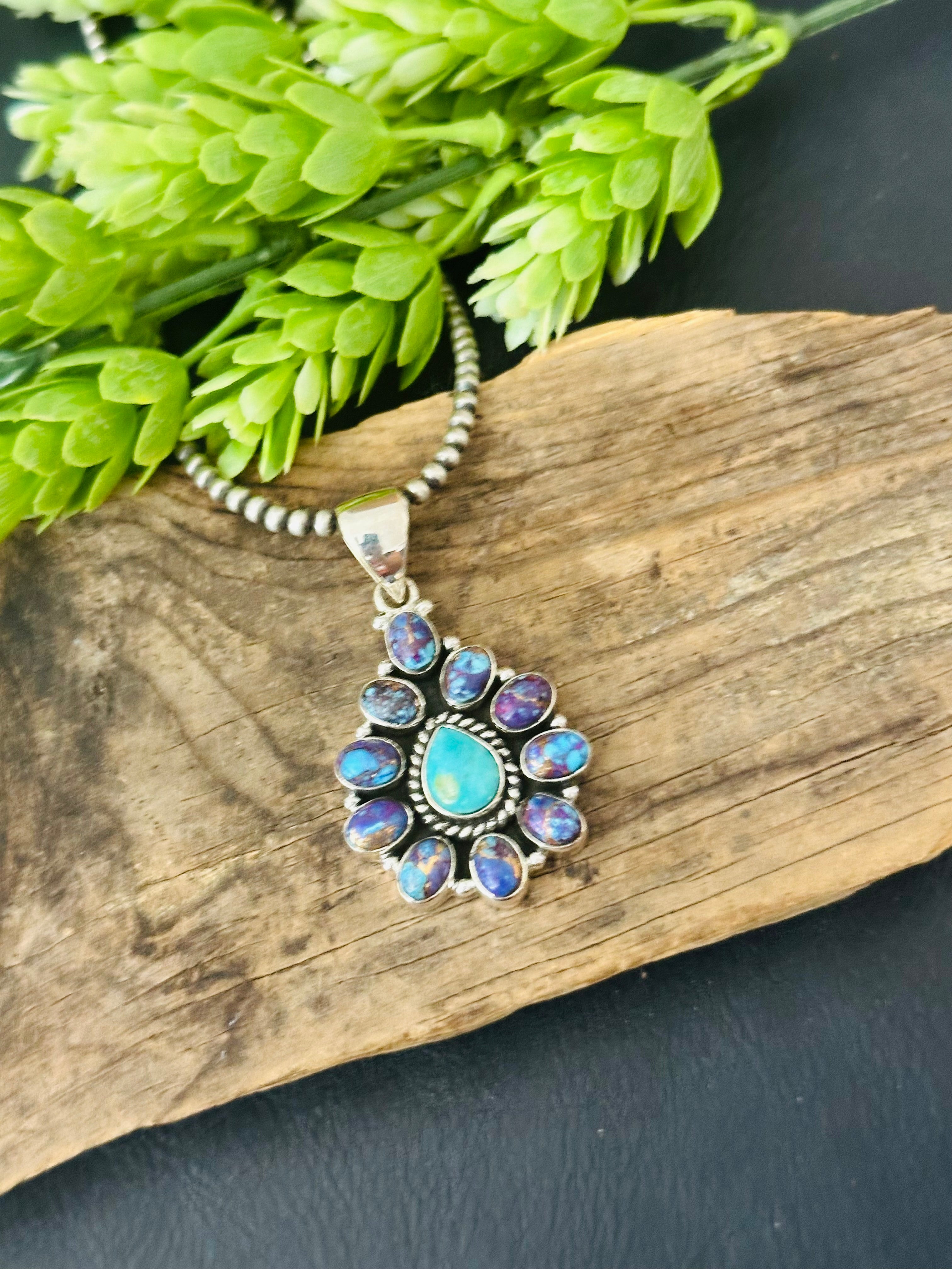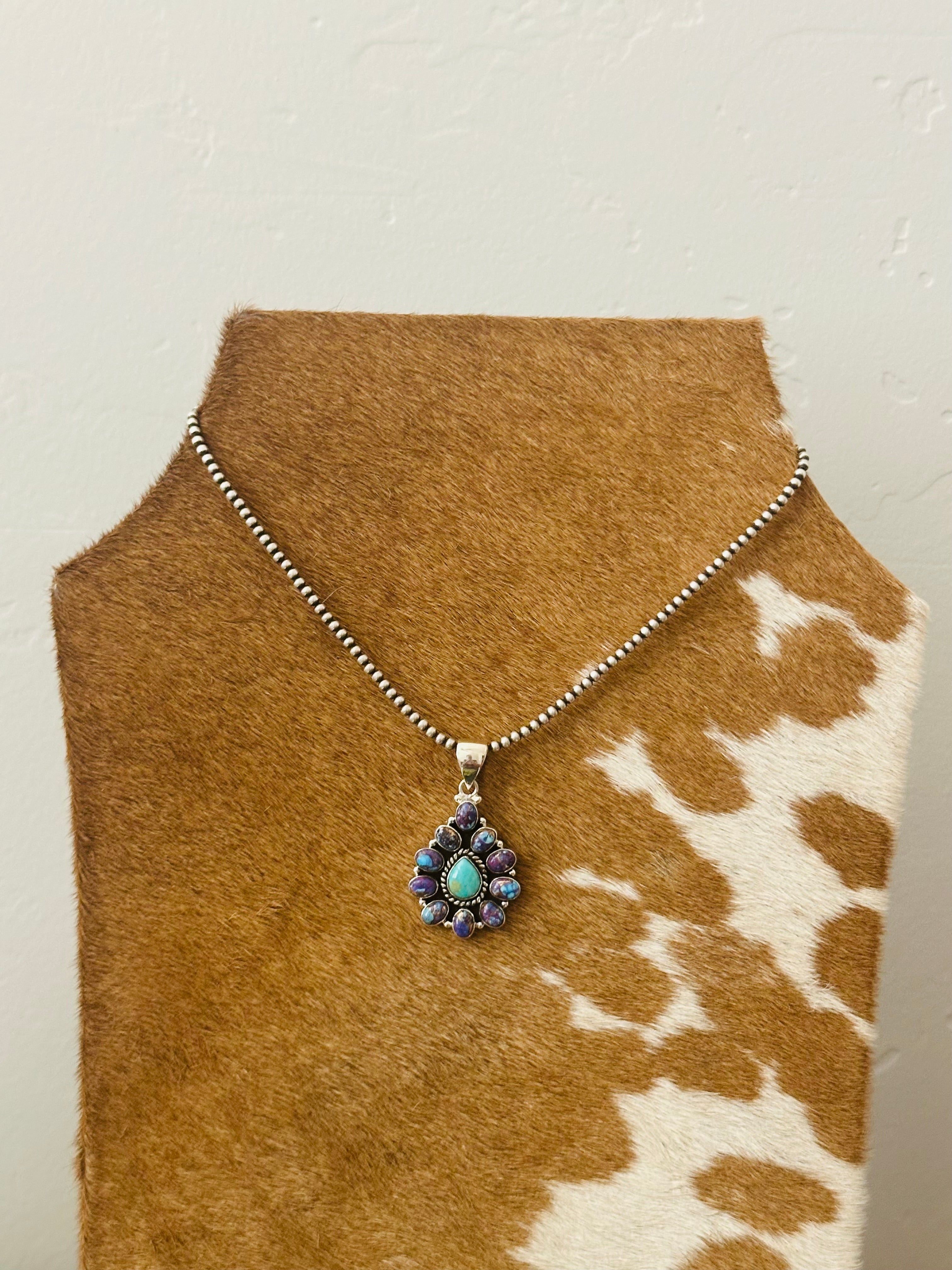 Southwest Handmade Multi Stone & Sterling Silver Cluster Pendant