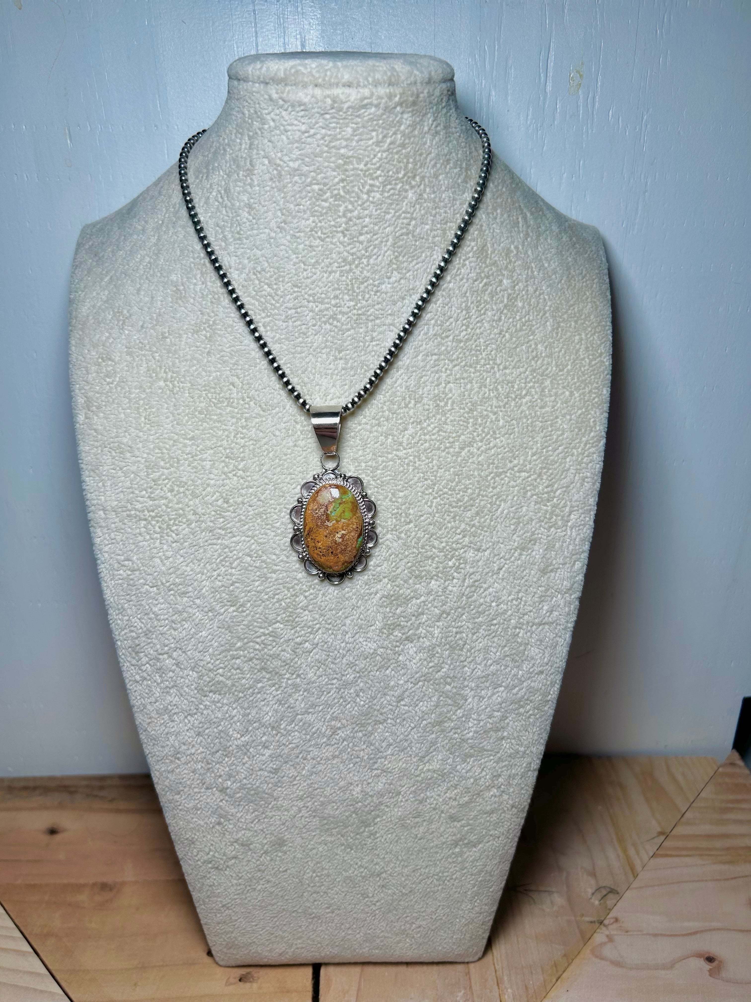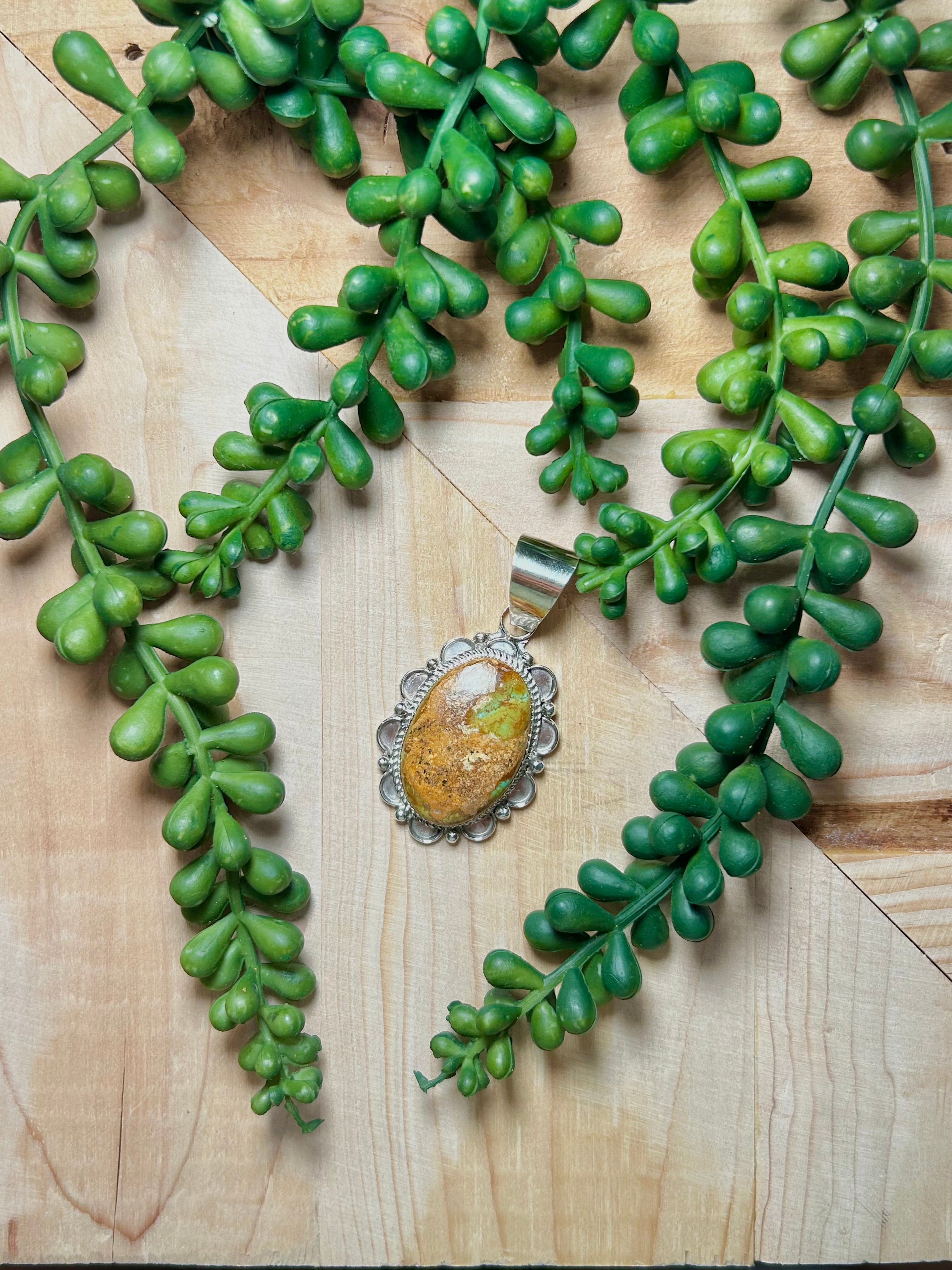 Navajo Made Evans Turquoise & Sterling Silver Cluster Pendant