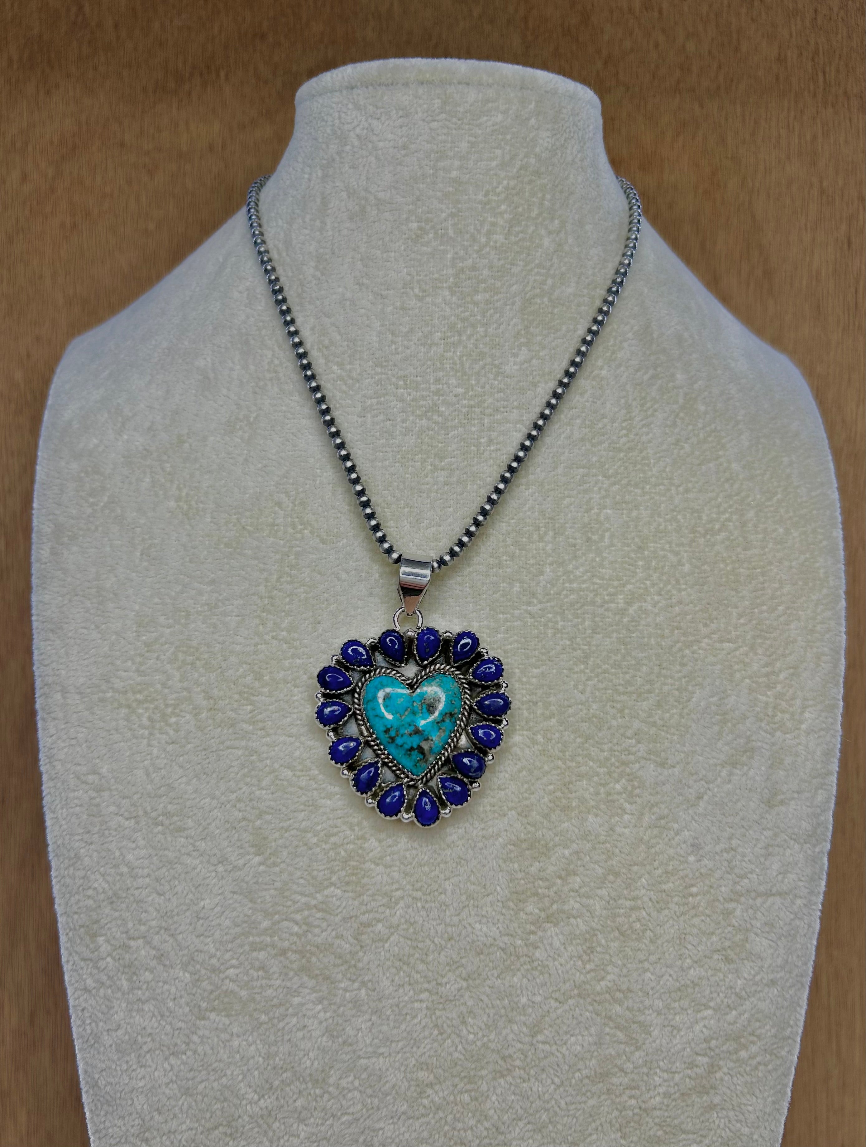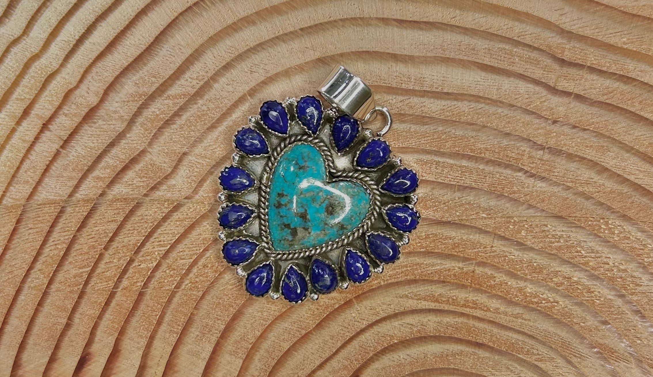 Southwest Handmade Multi Stone & Sterling Silver Heart Pendant