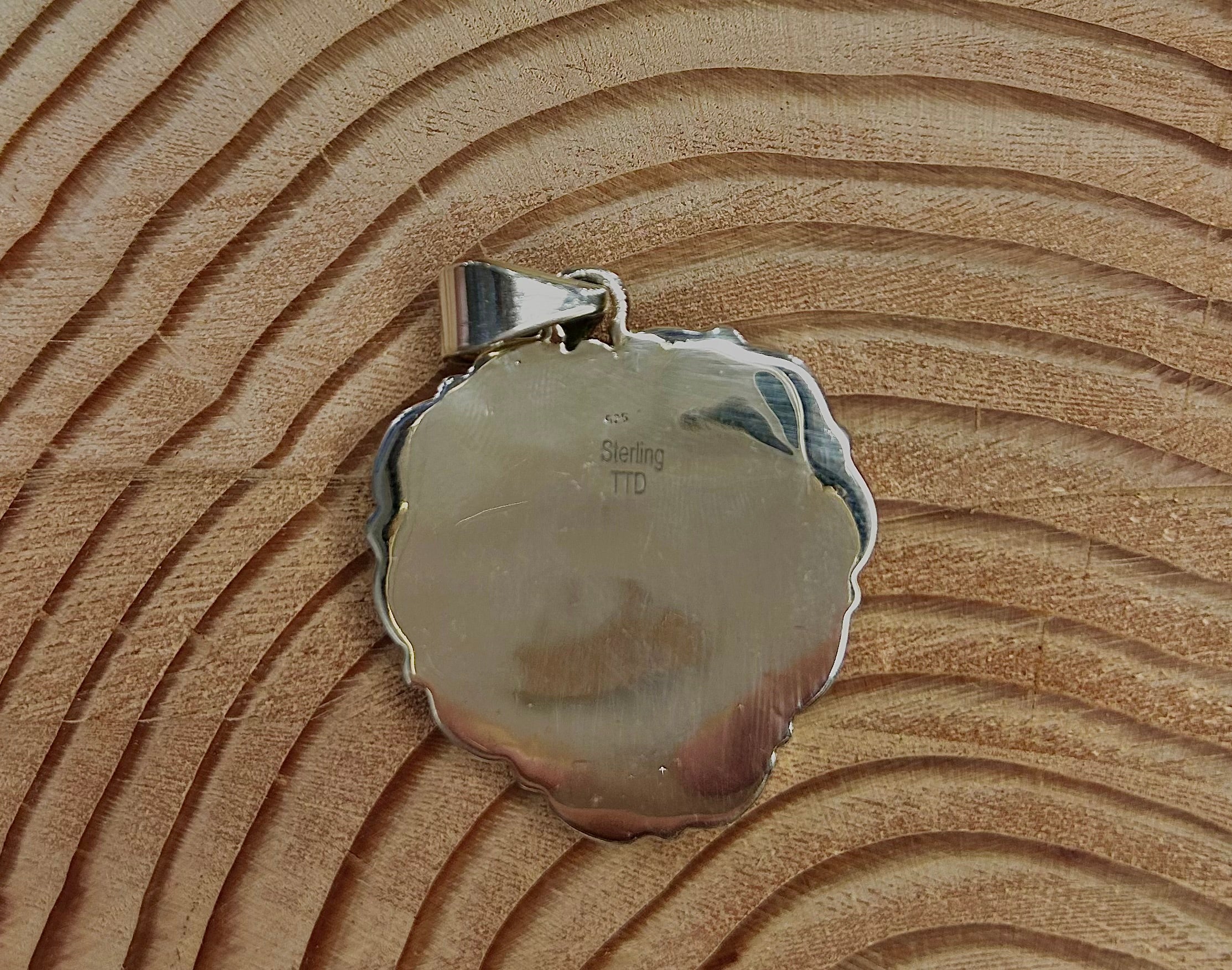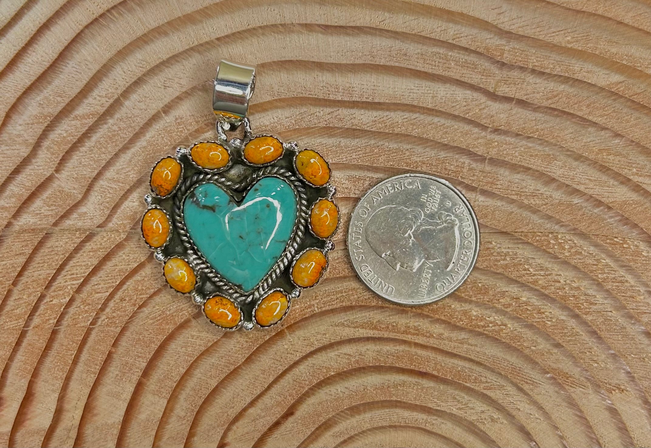 Southwest Handmade Multi Stone & Sterling Silver Heart Pendant. It measures 2 inches long and a little over 1 3/8 inches wide. Pendant Only. Signed by the artist and stamped sterling silver.