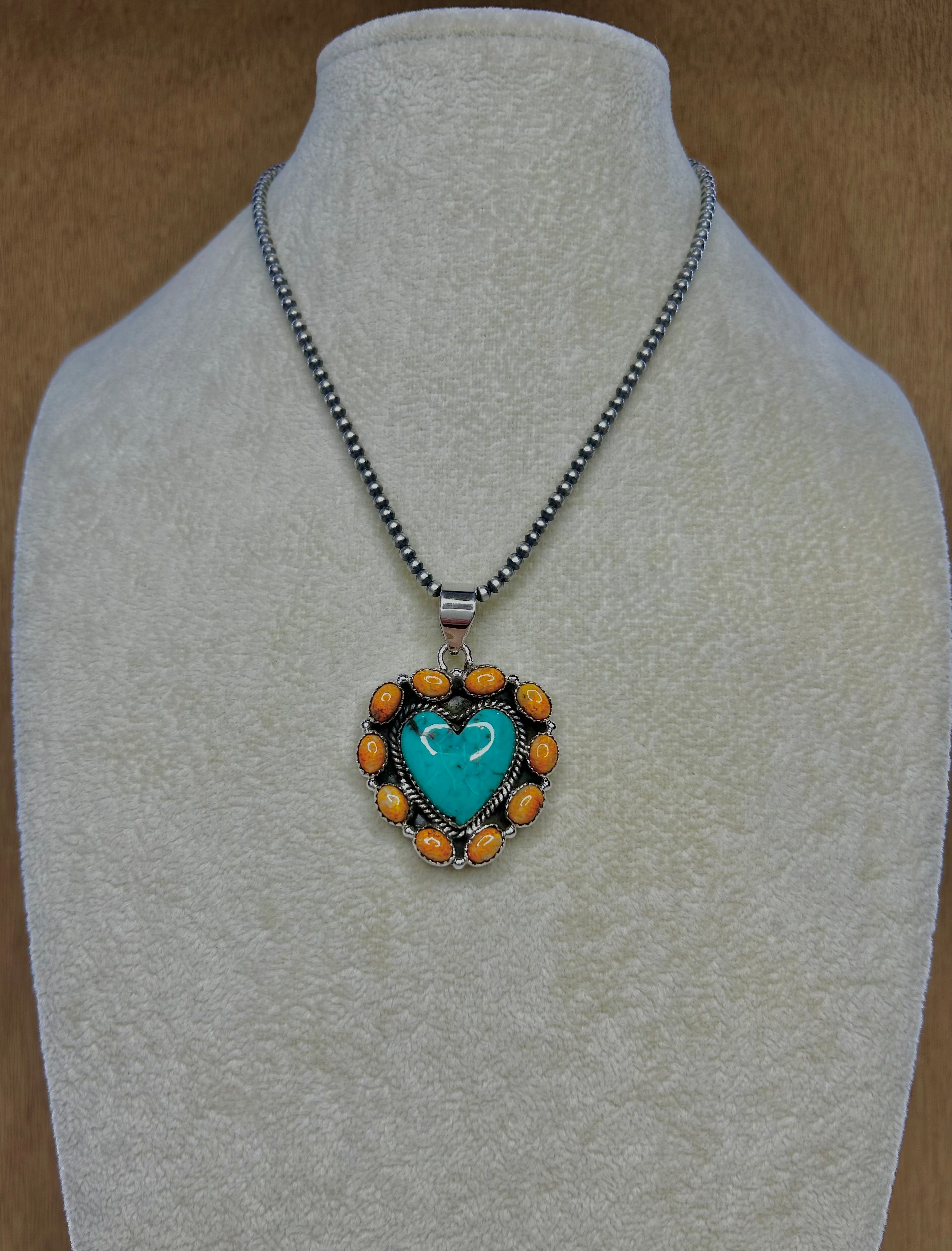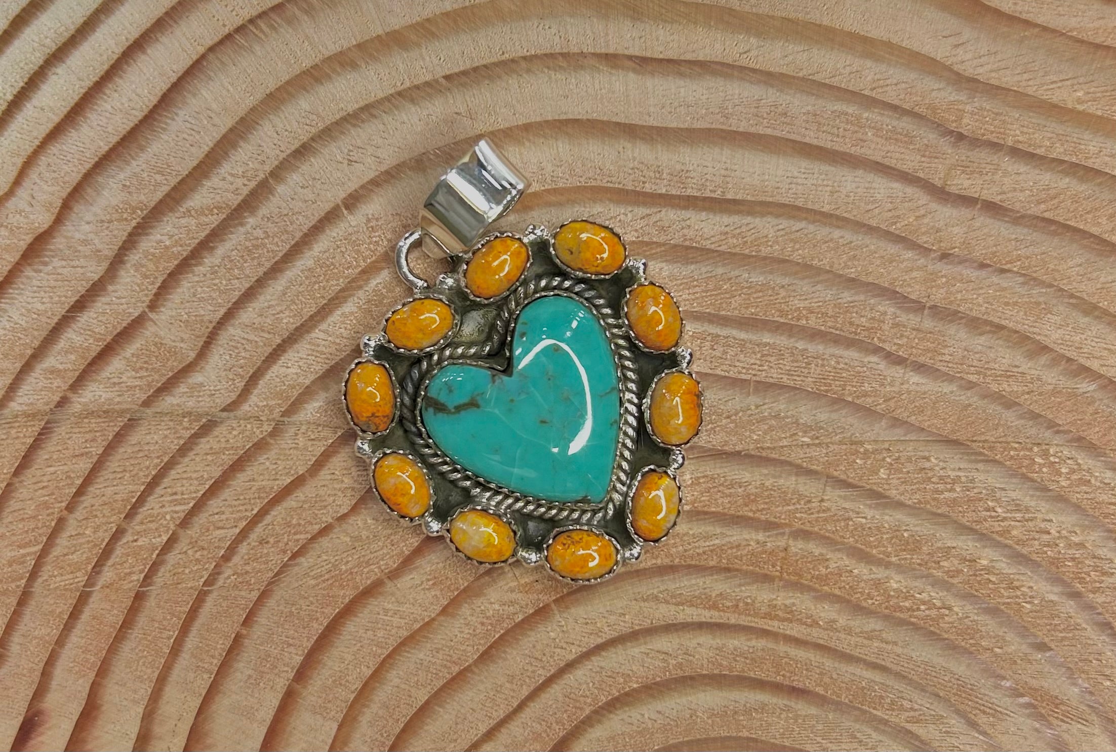 Southwest Handmade Multi Stone & Sterling Silver Heart Pendant