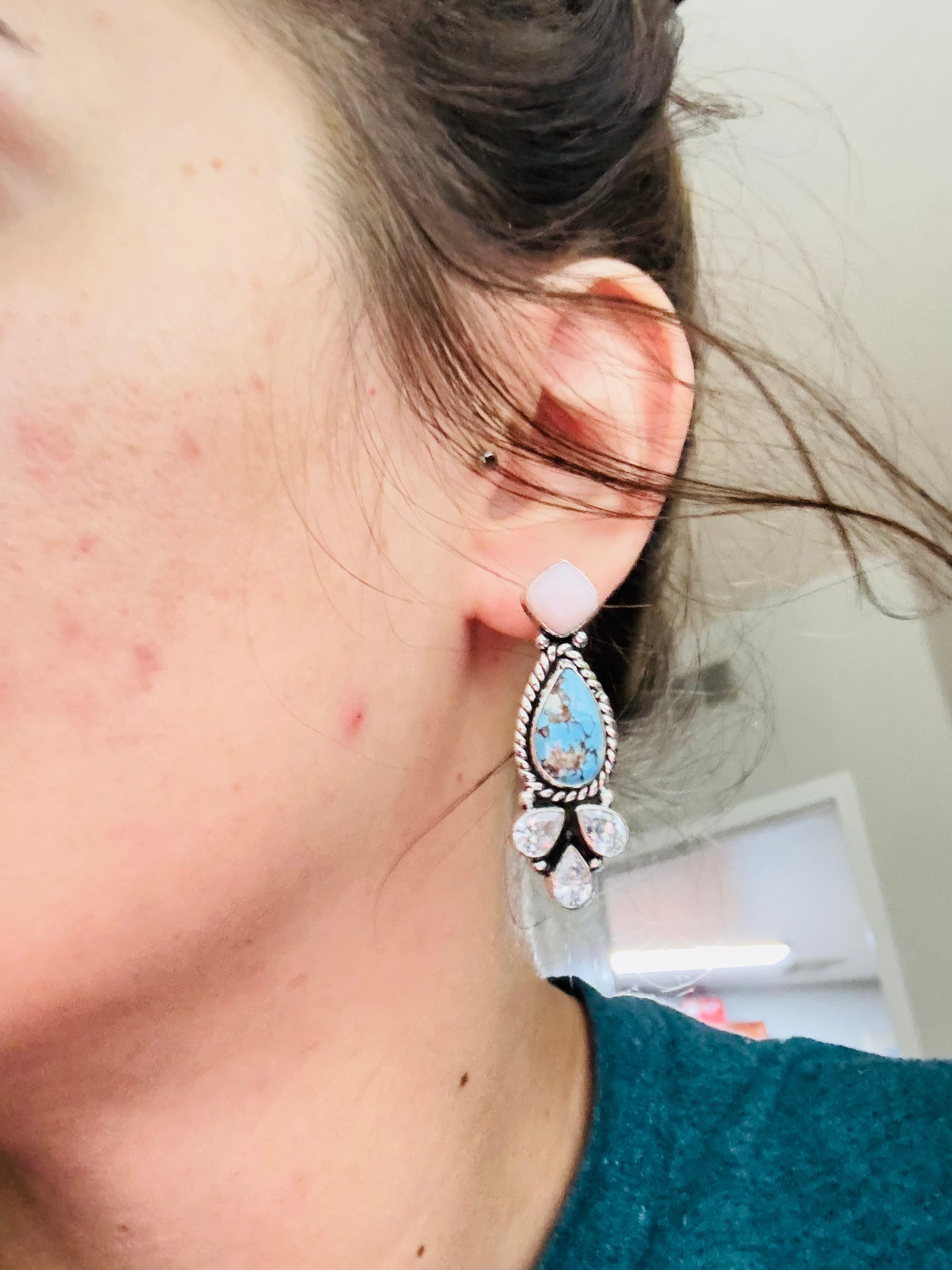 Breathtaking earrings. Southwest Handmade Multi Stone & Sterling Silver Post Cluster Earrings. It measures 1 7/8 inches long and 3/4 of an inch wide. Signed by the artist and stamped sterling silver. Stones will differ due to natural stones.