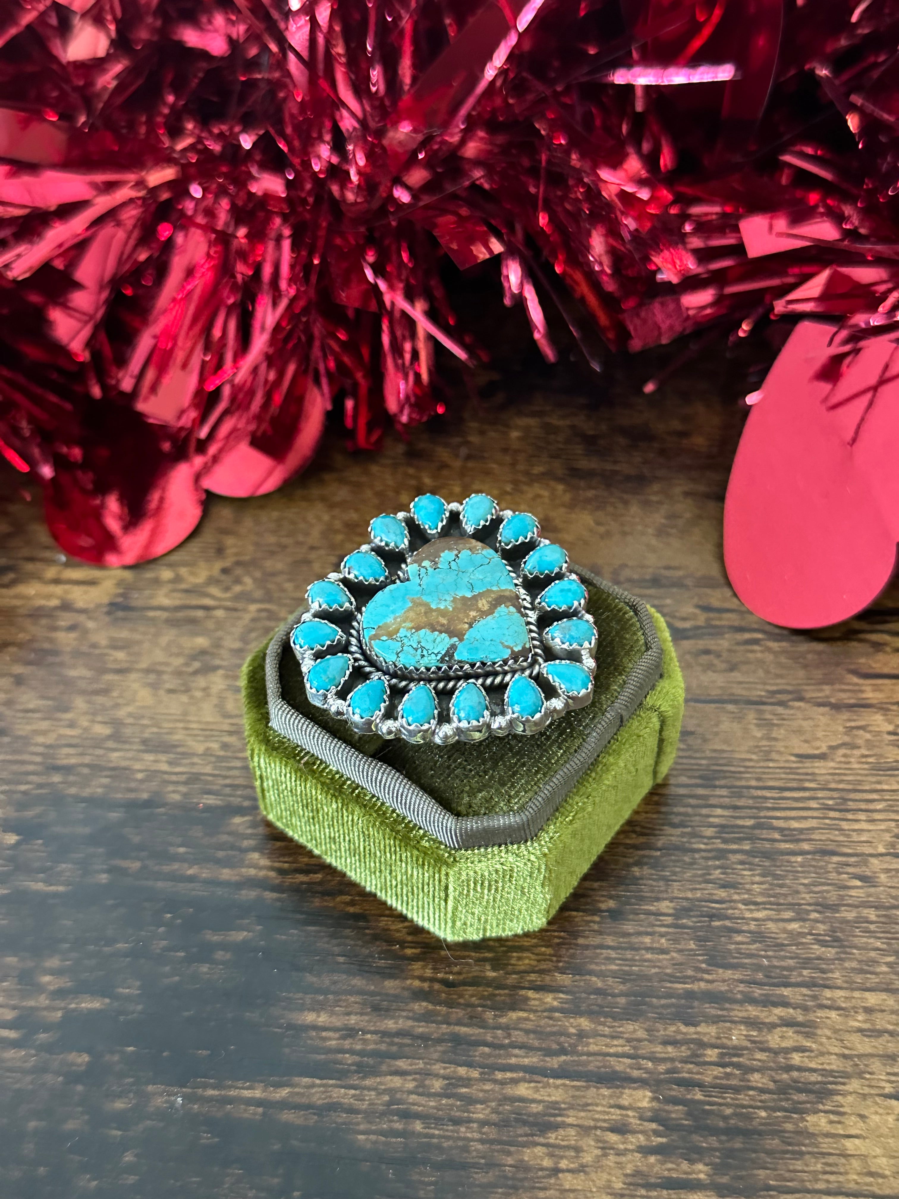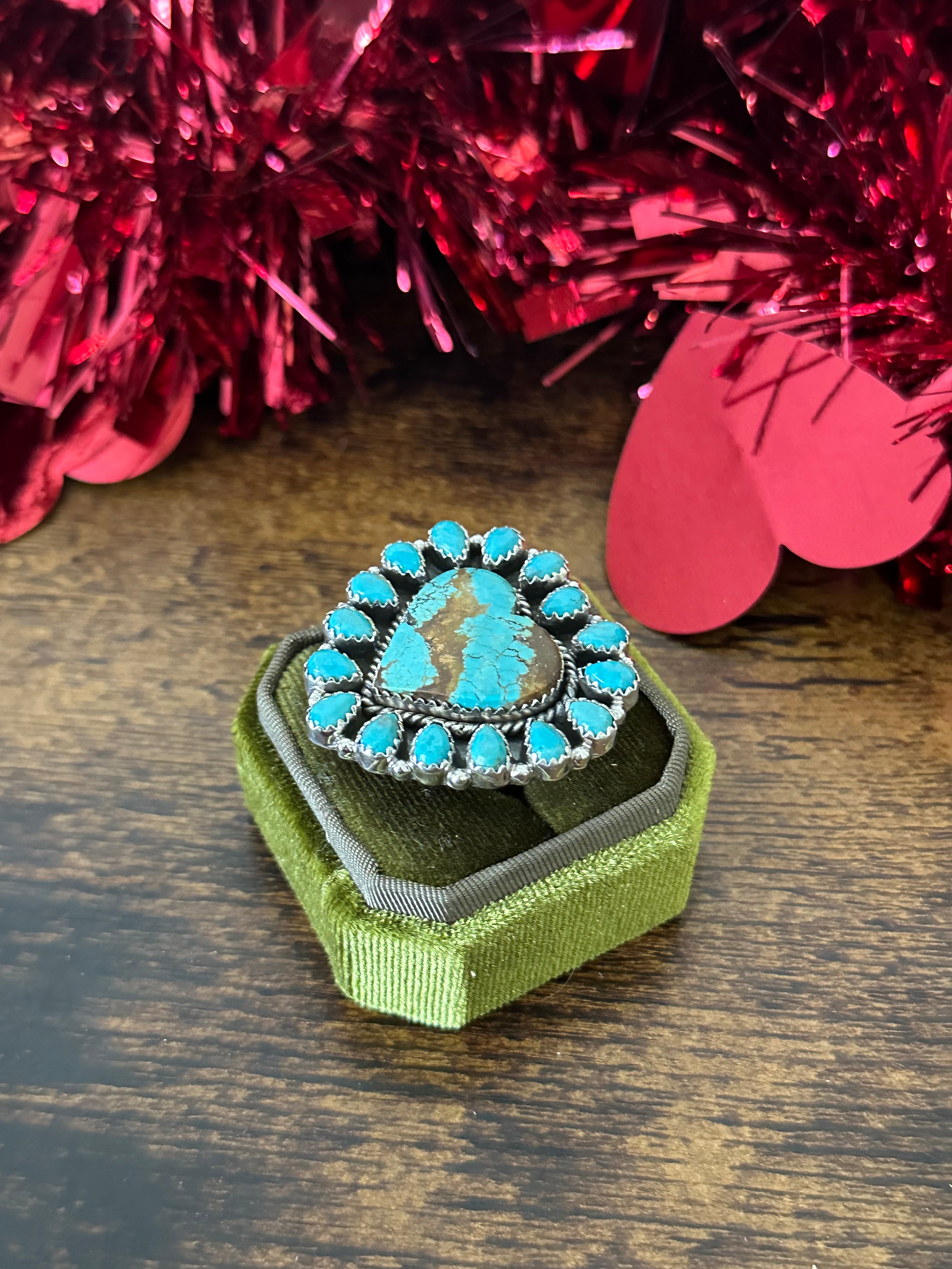 Southwest Handmade Multi Turquoise & Sterling Silver Heart Cluster Adjustable Ring