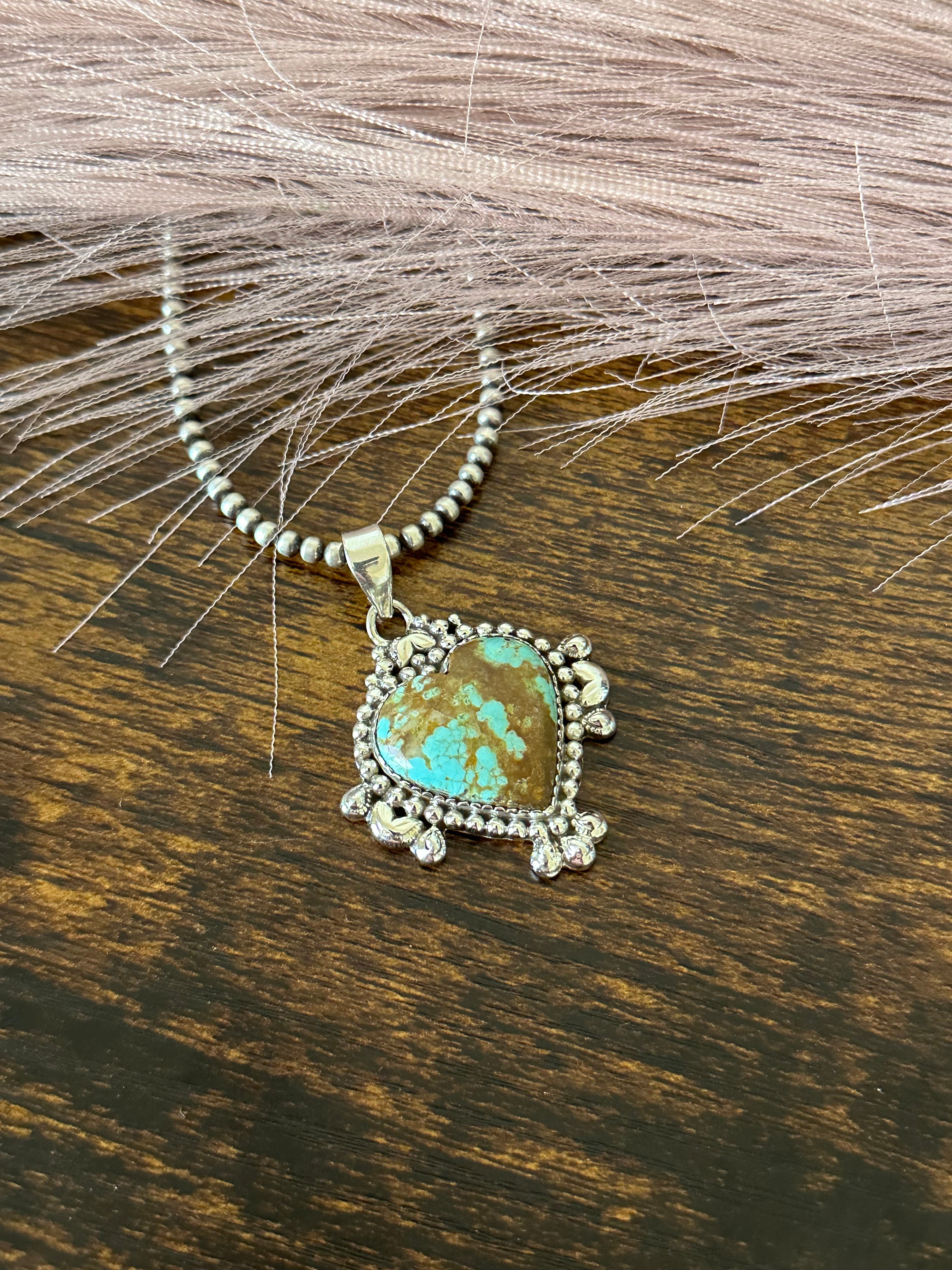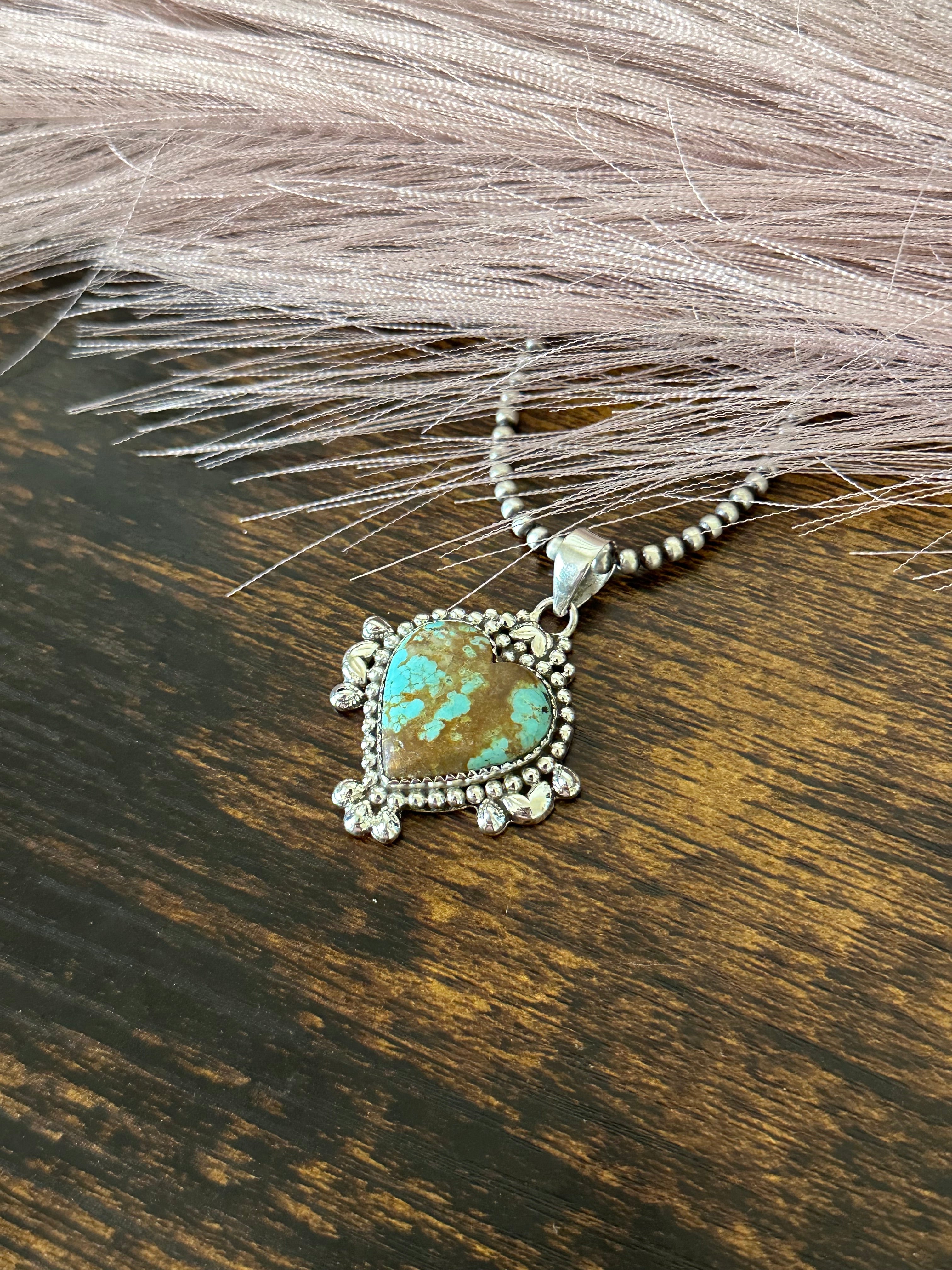Southwest Handmade Number 8 Turquoise & Sterling Silver Heart Pendant