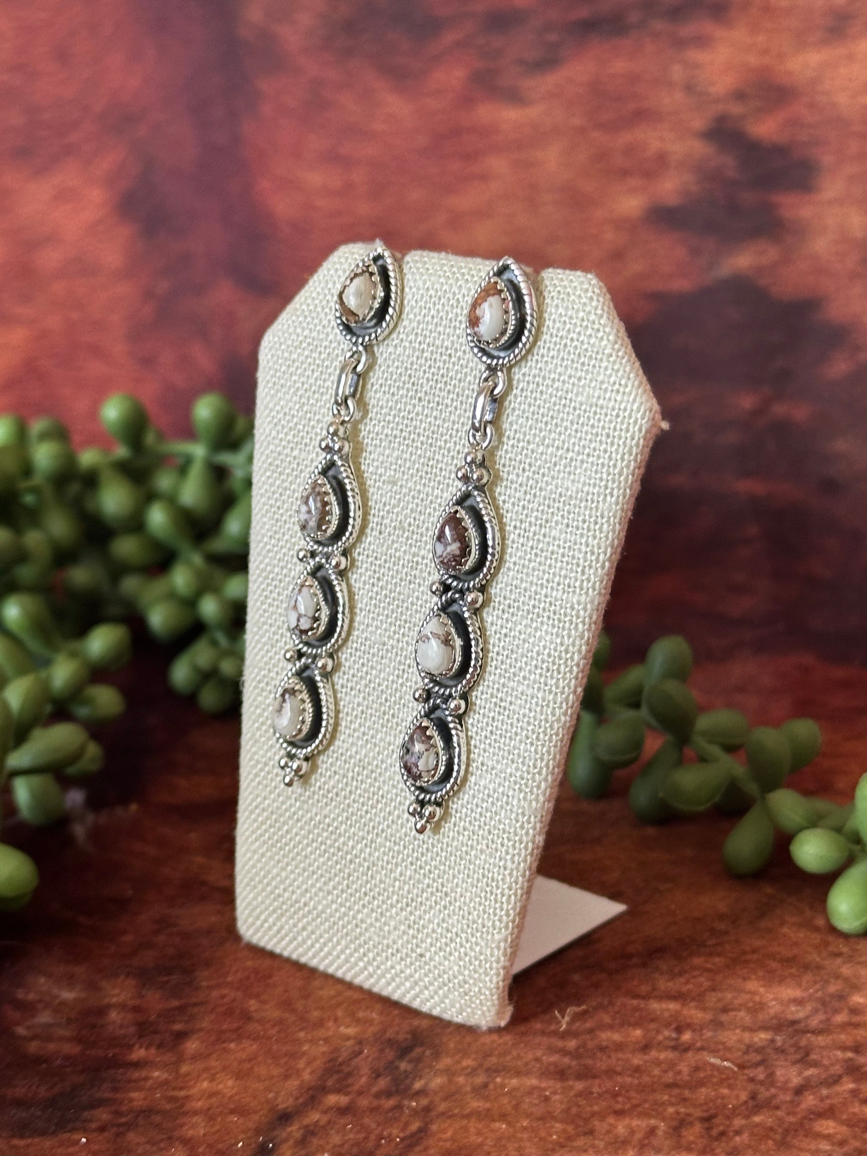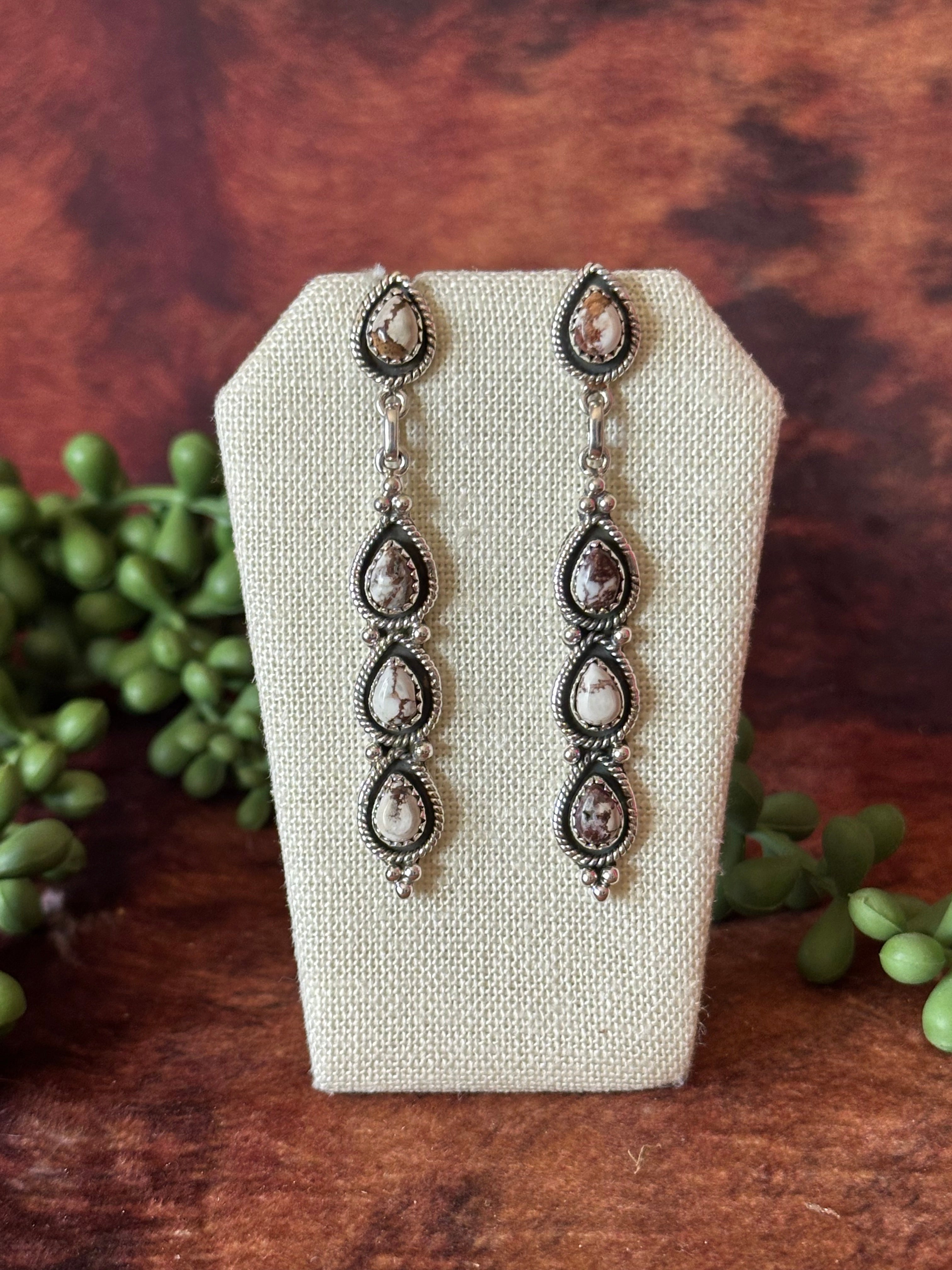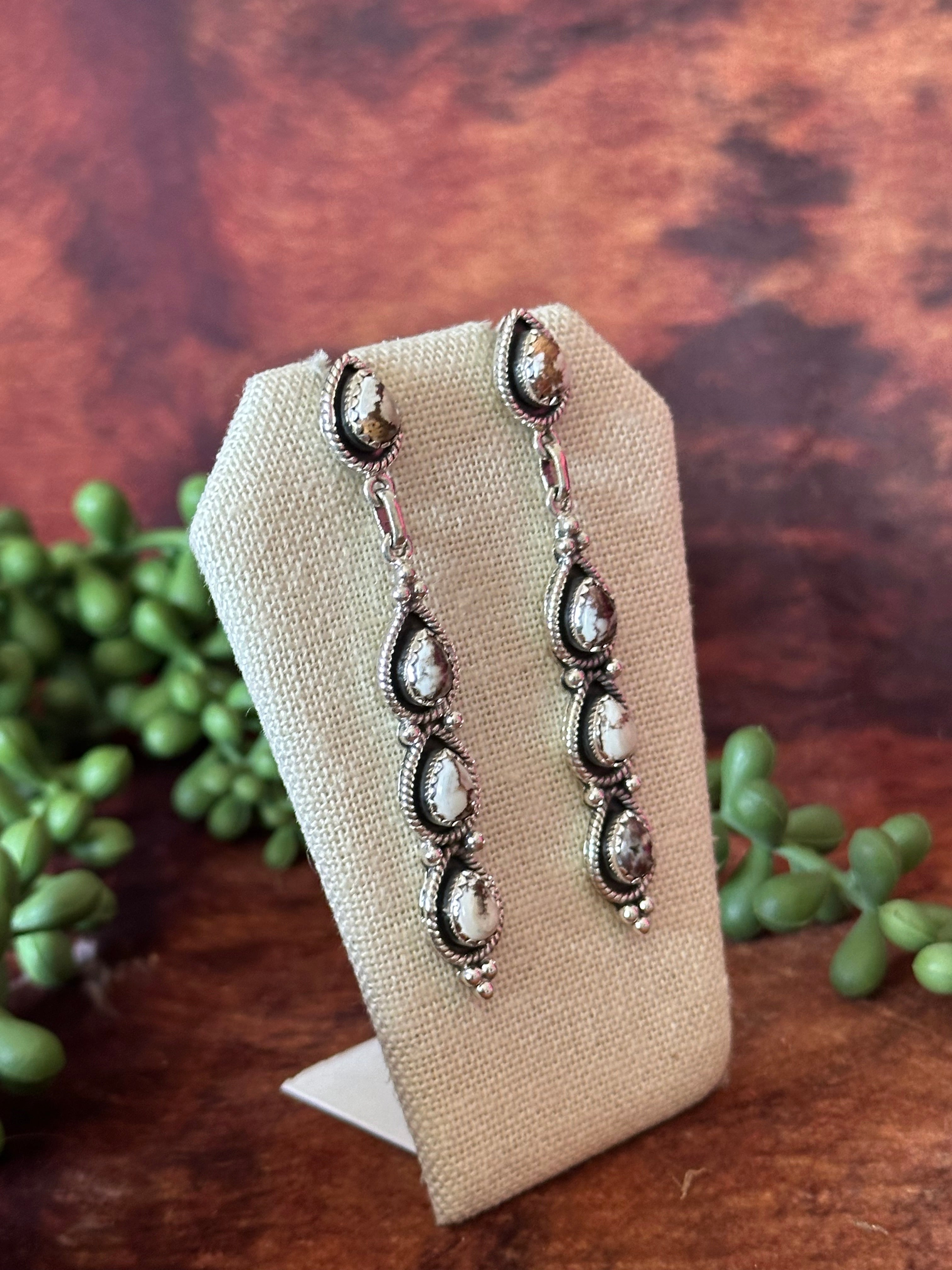 Southwest Handmade Wild Horse & Sterling Silver Post Dangle Earrings