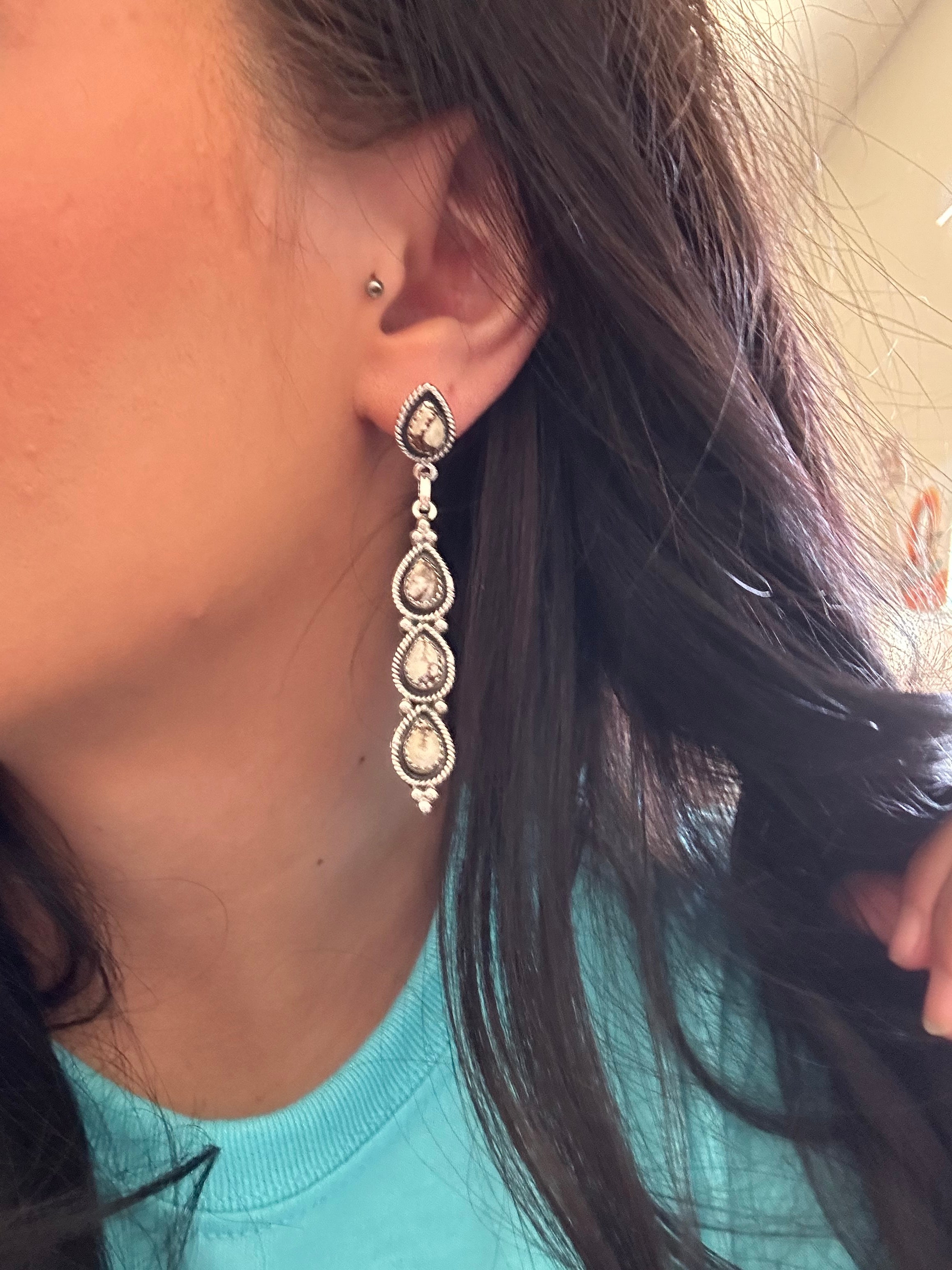 Breathtaking earrings. Southwest Handmade Wild Horse & Sterling Silver Post Dangle Earrings. It measures 2 3/4 inches long and 3/8 of an inch wide. Signed by the artist and stamped sterling silver.