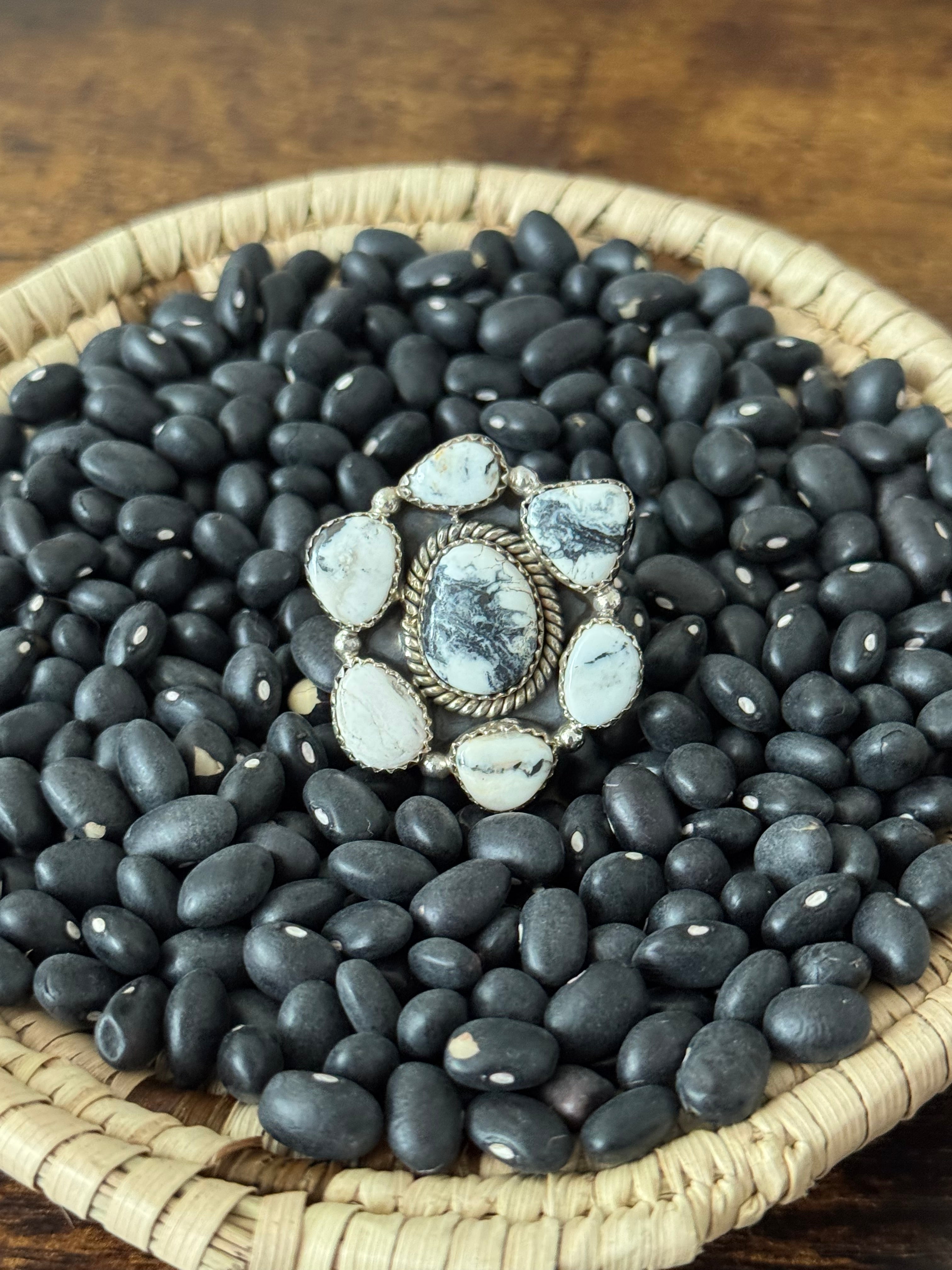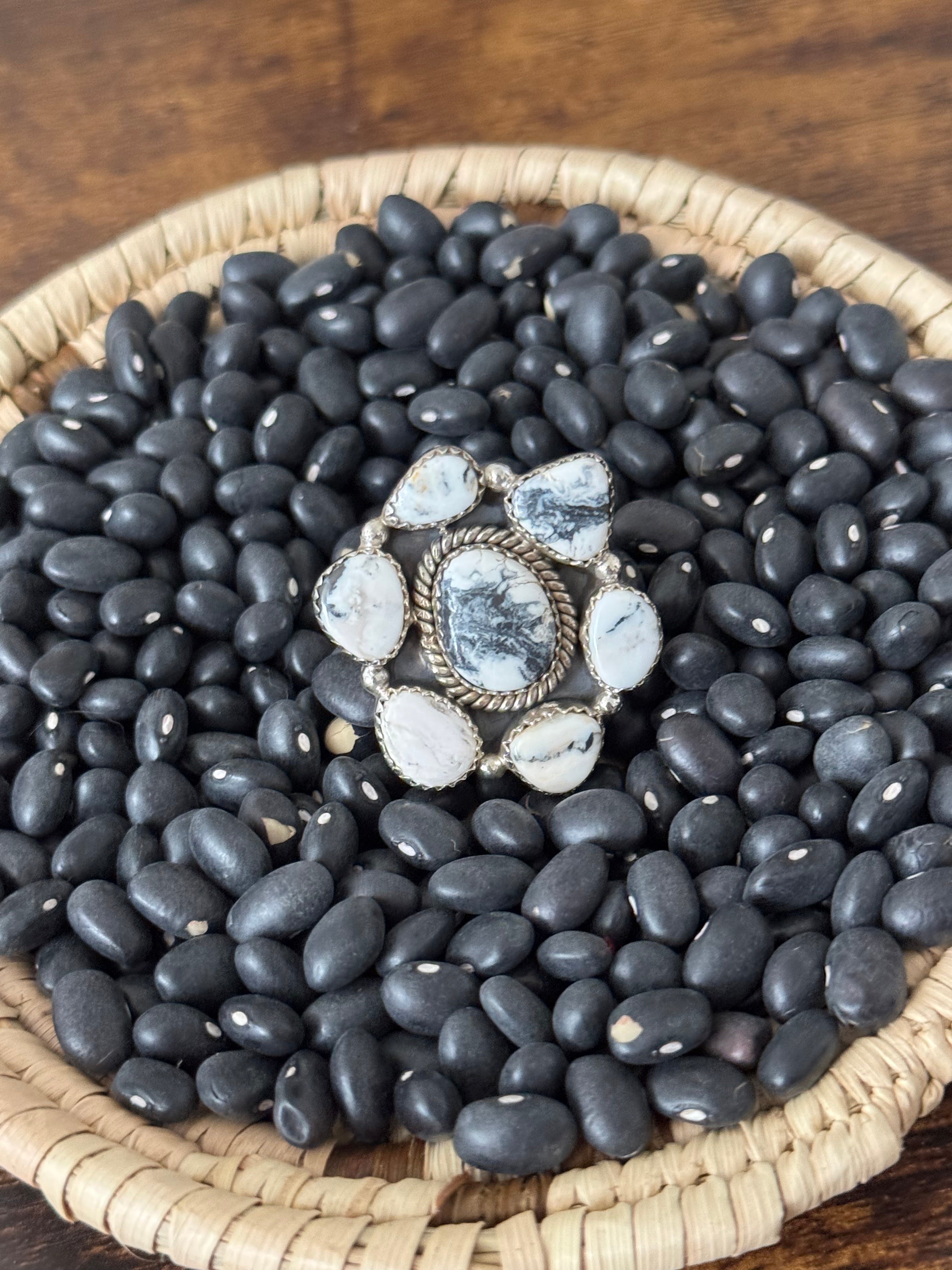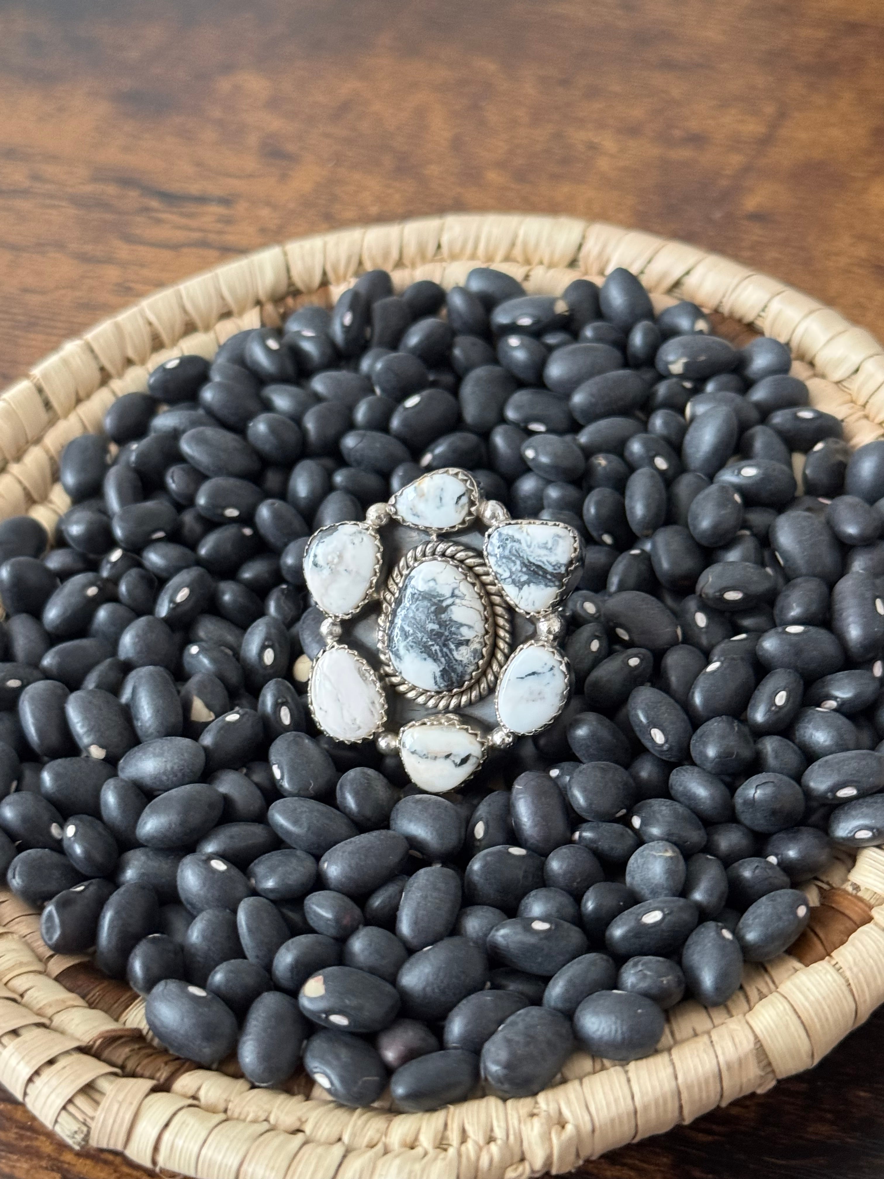 Southwest Handmade White Buffalo & Sterling Silver Adjustable Cluster Ring