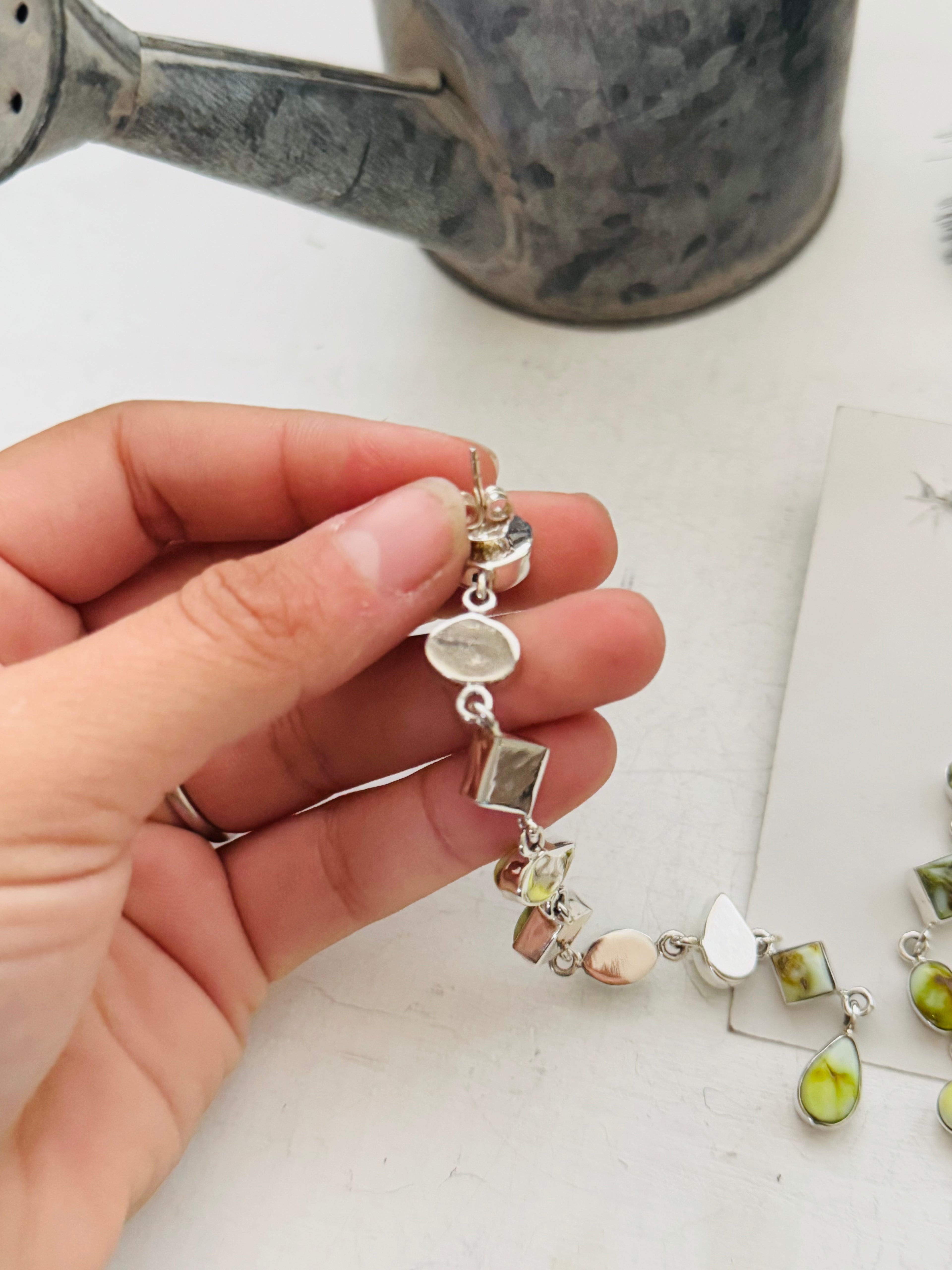 Southwest Handmade Palomino Variscite & Sterling Silver Post Dangle Earrings