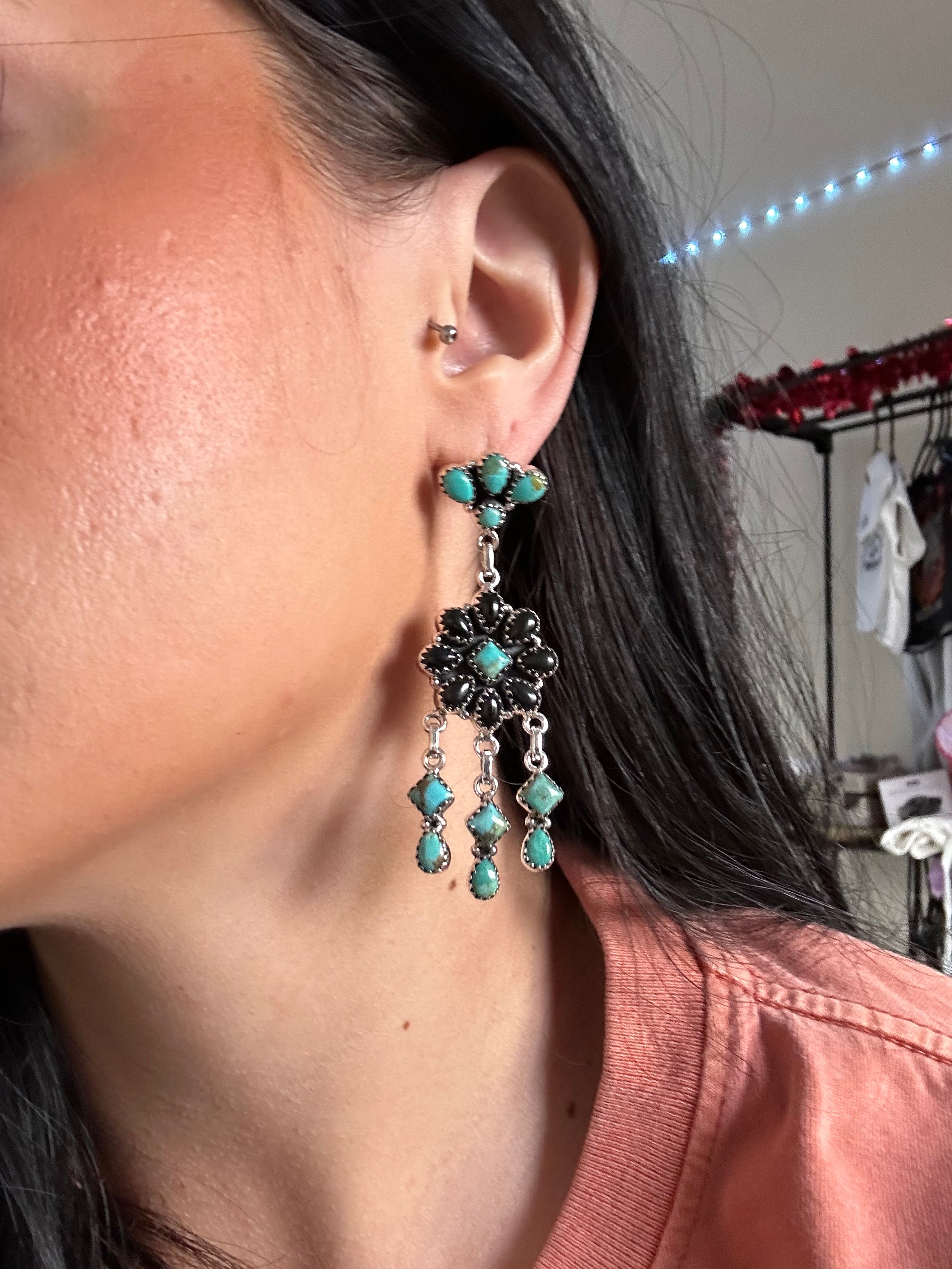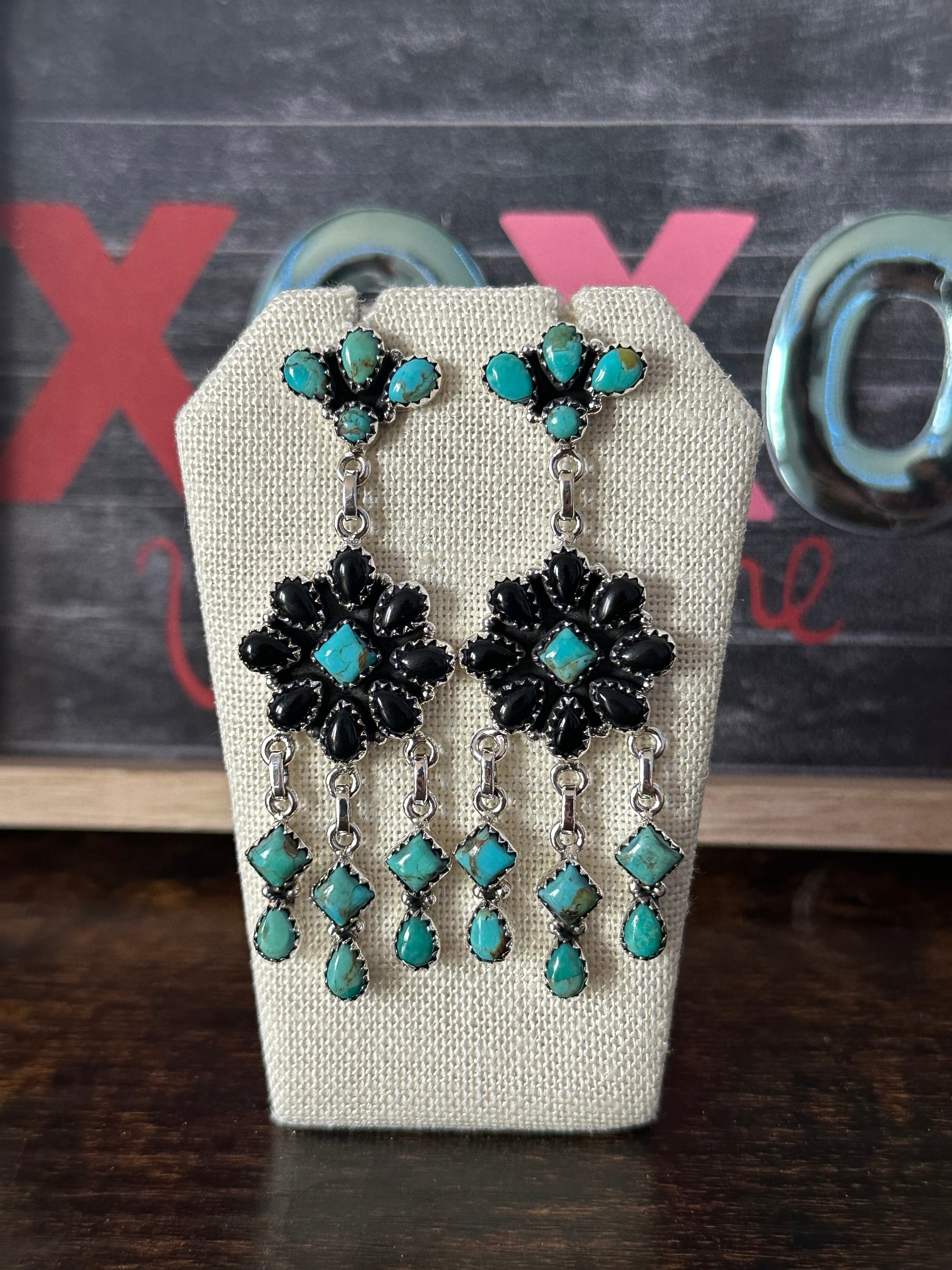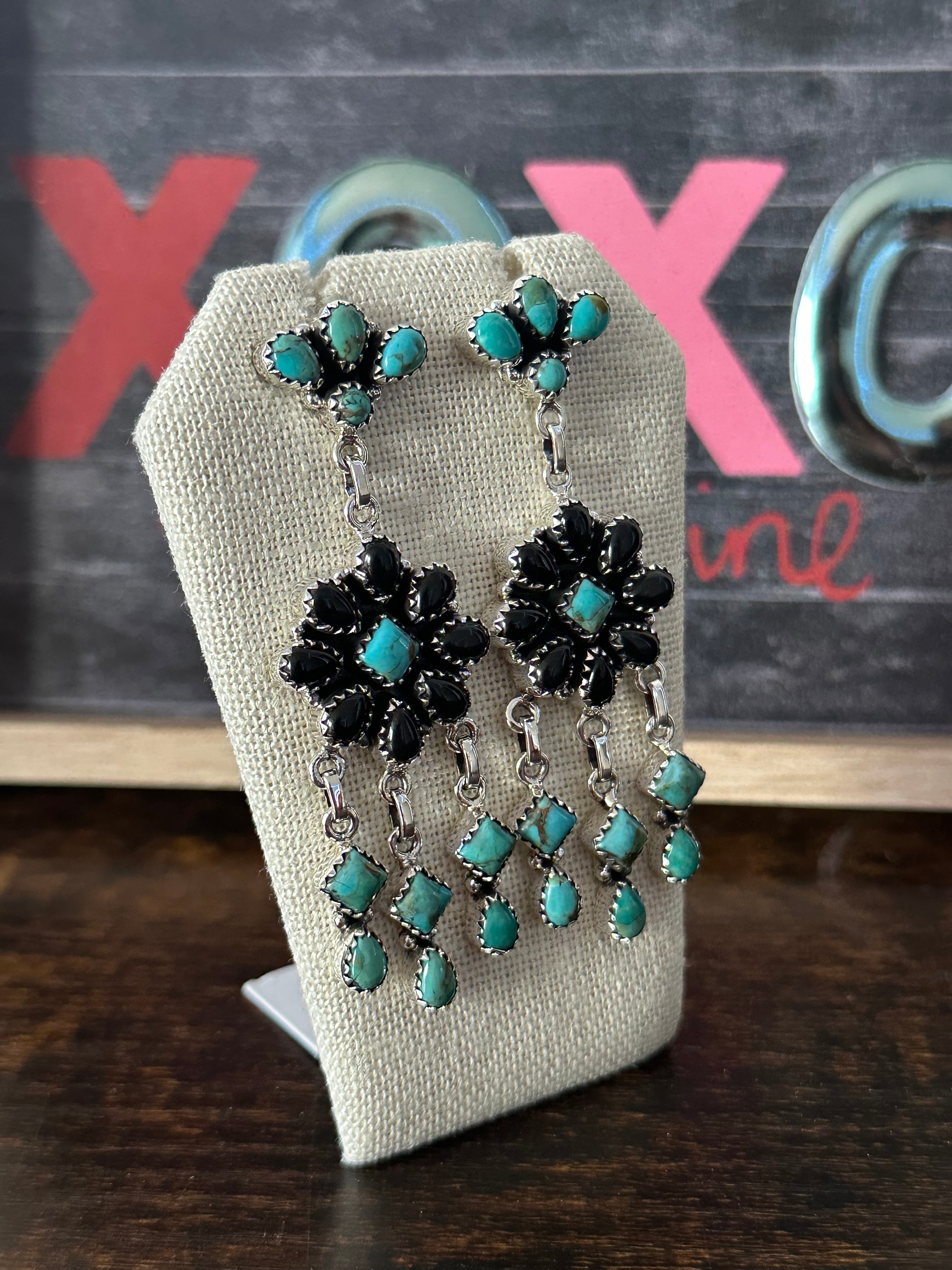 Southwest Handmade Multi Stone & Sterling Silver Post Dangle Earrings