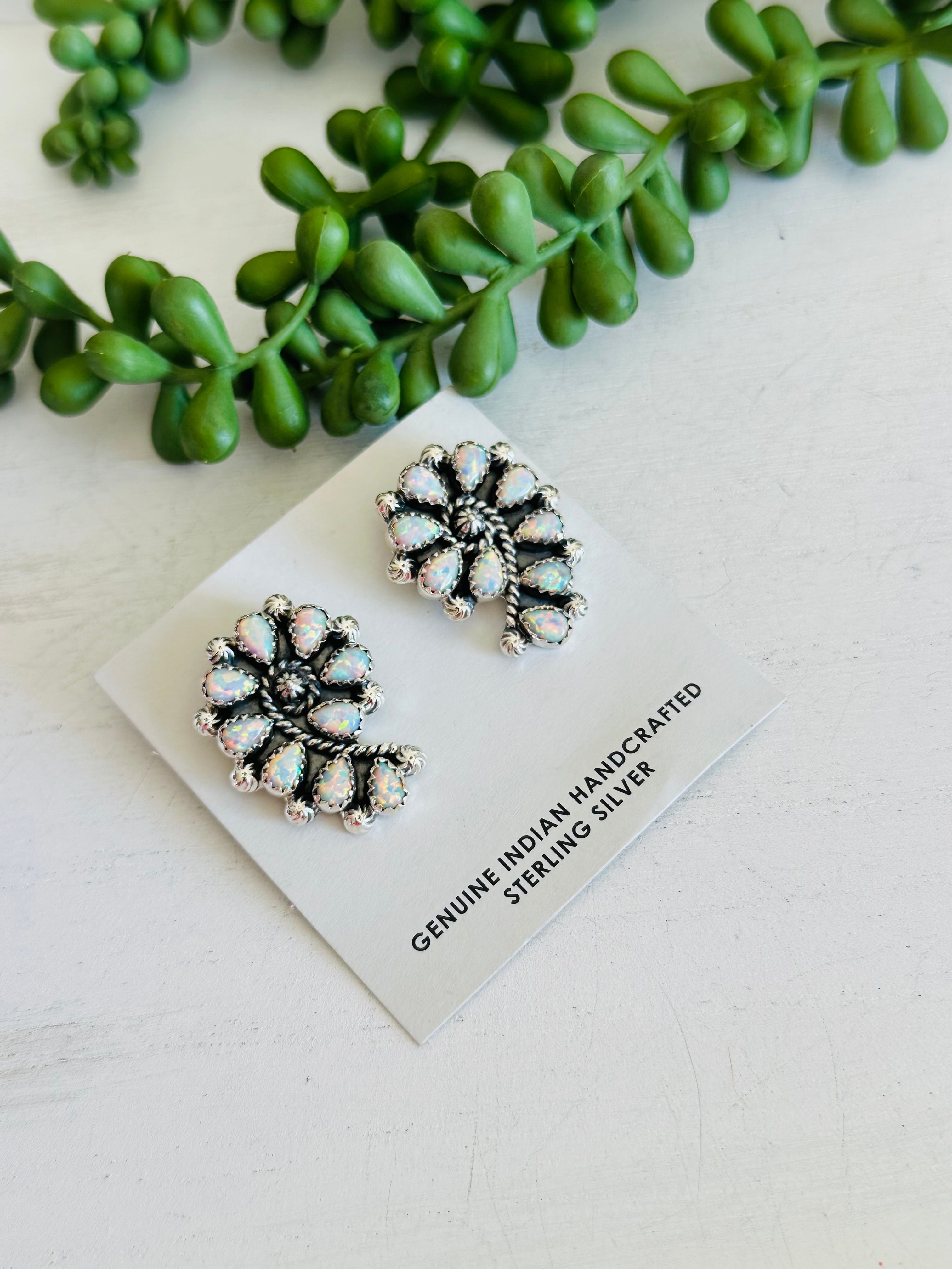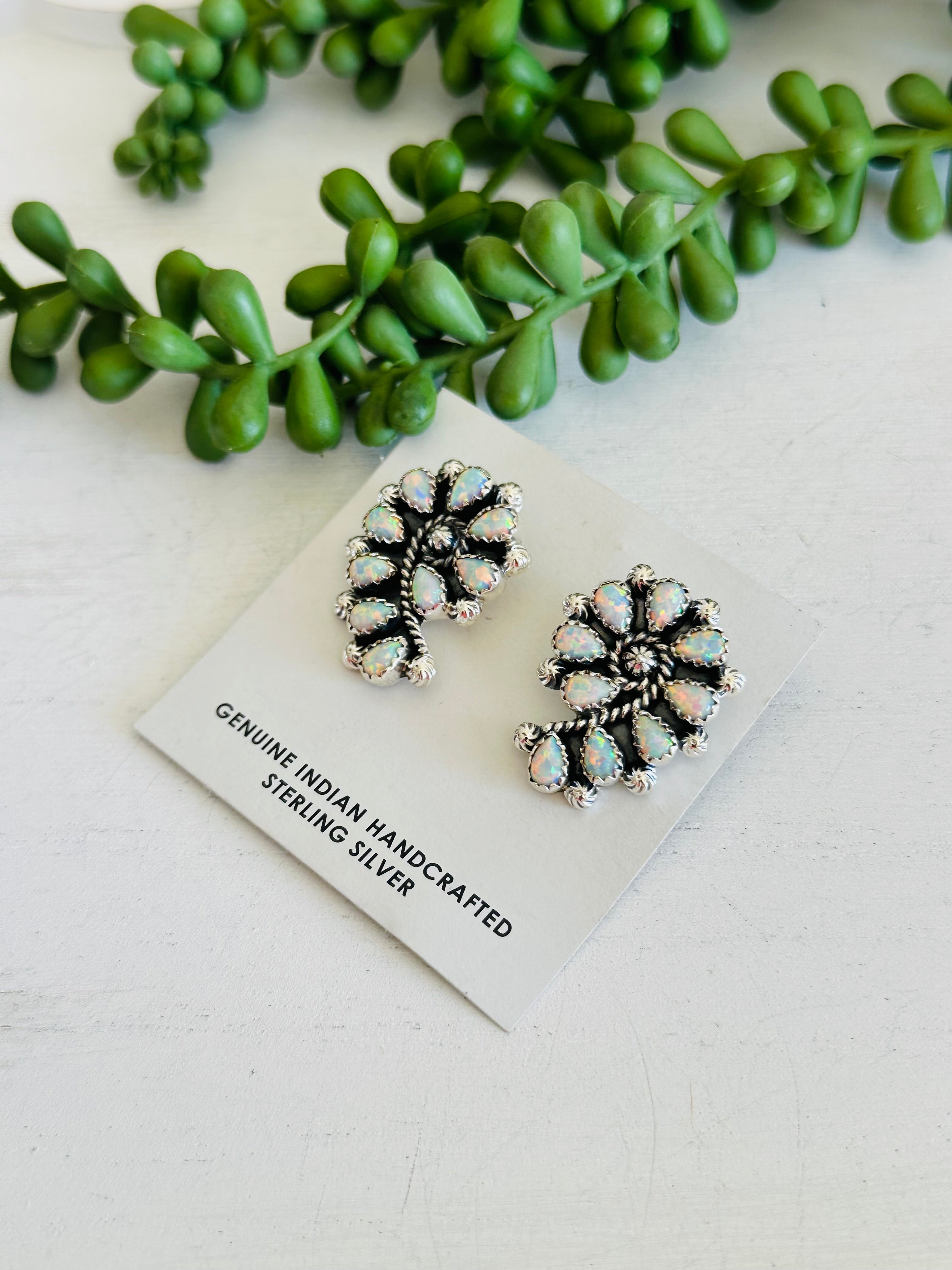 Southwest Handmade Opal & Sterling Silver Post Cluster Earrings