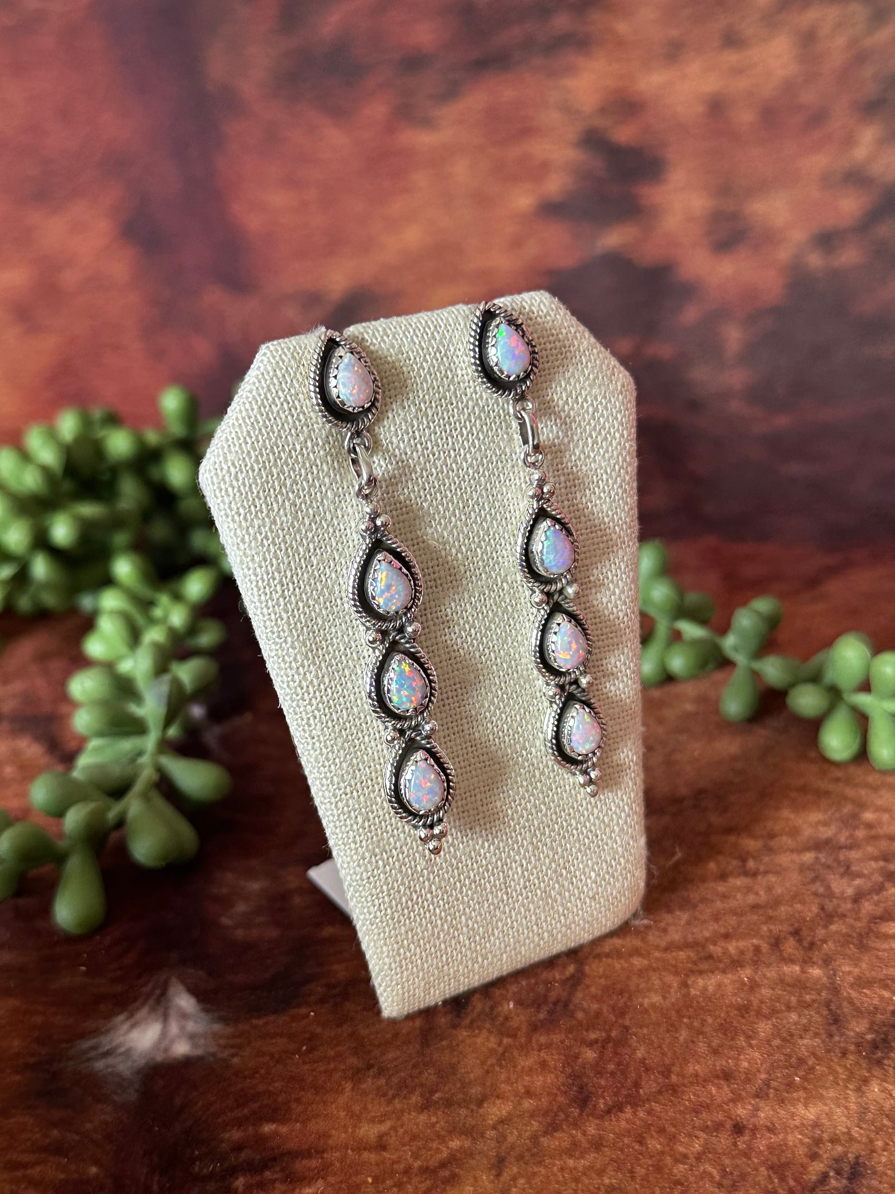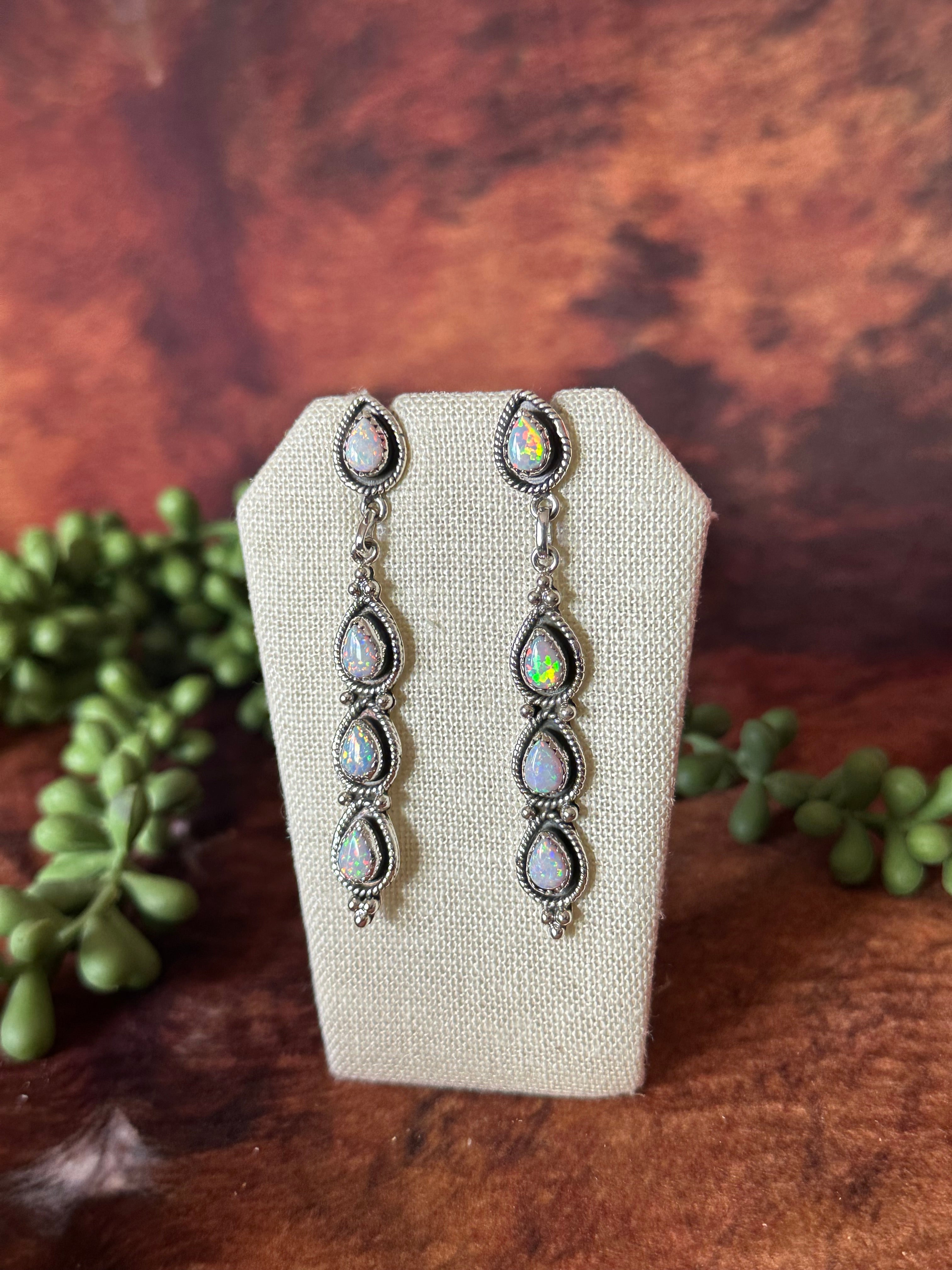 Southwest Handmade Opal & Sterling Silver Post Dangle Earrings
