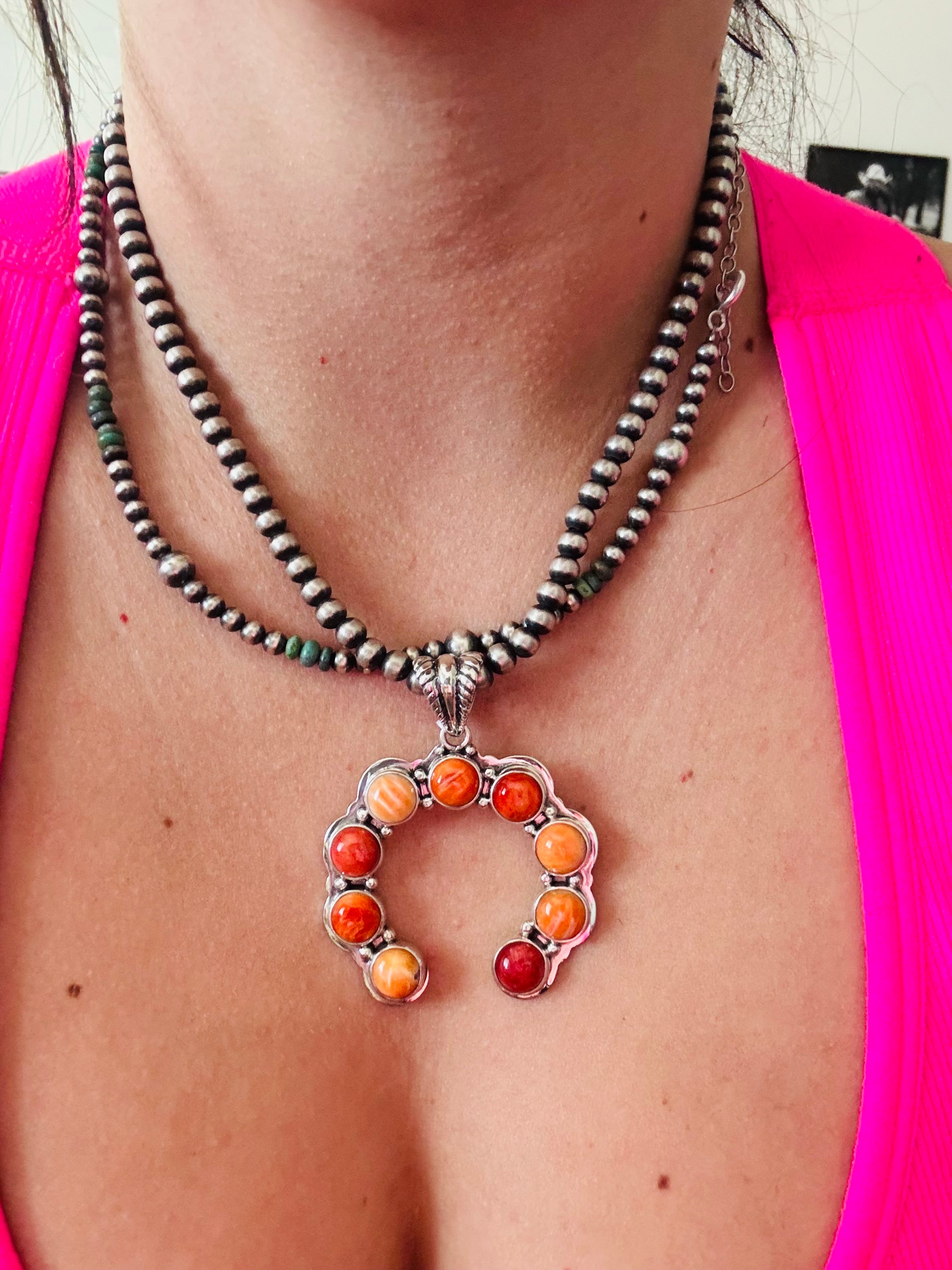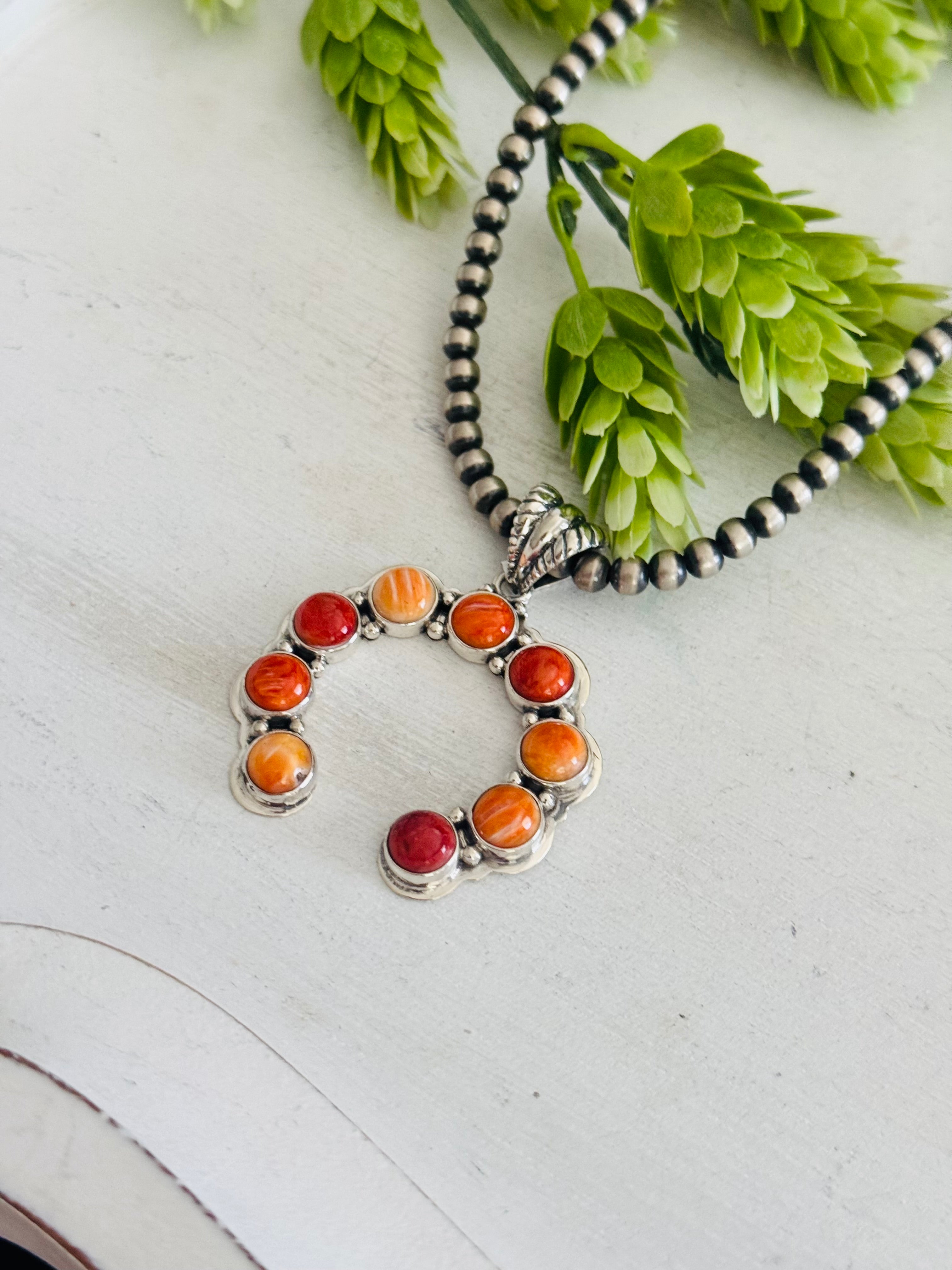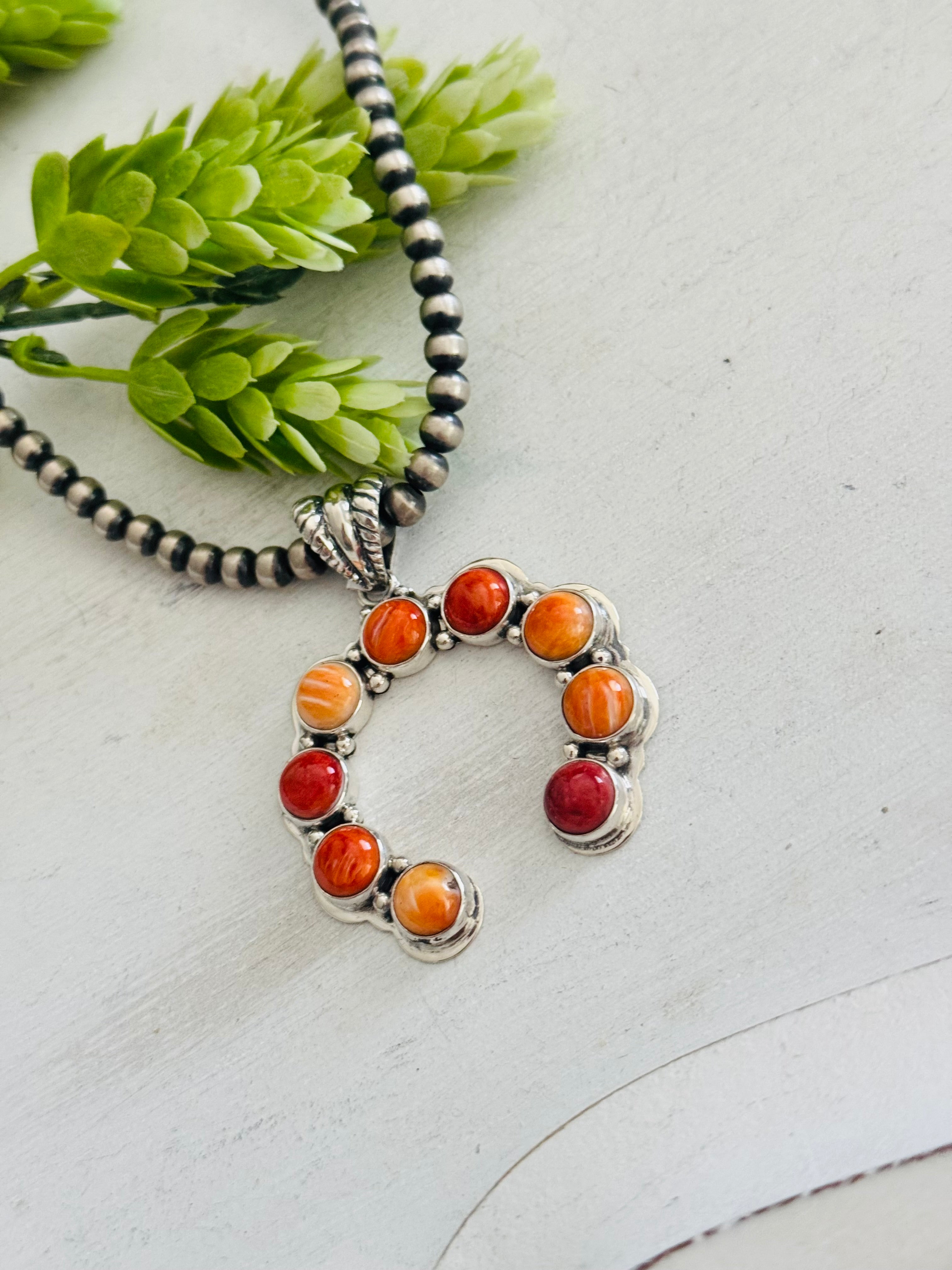 Southwest Handmade Spiny Oyster & Sterling Silver Cluster Pendant