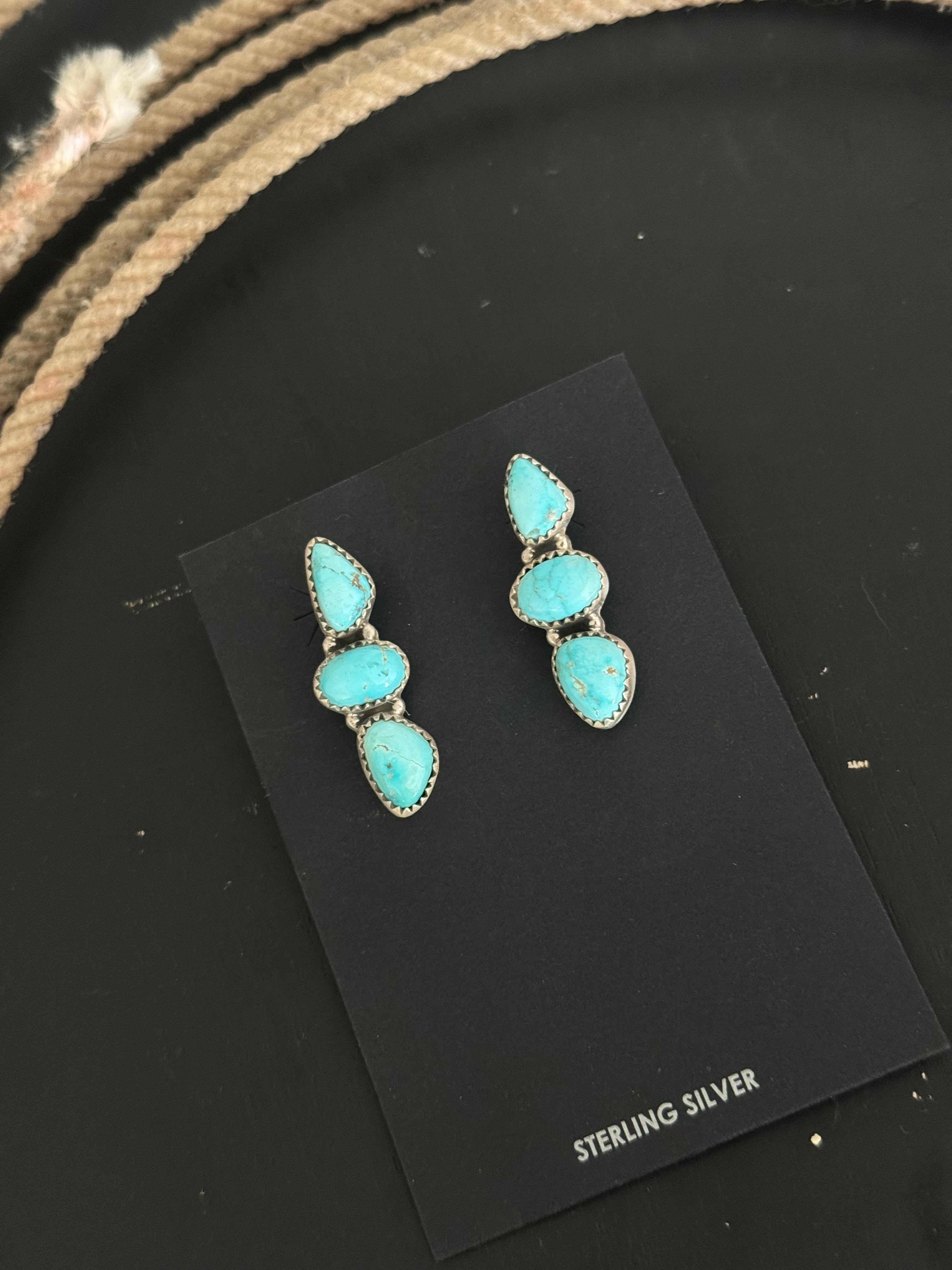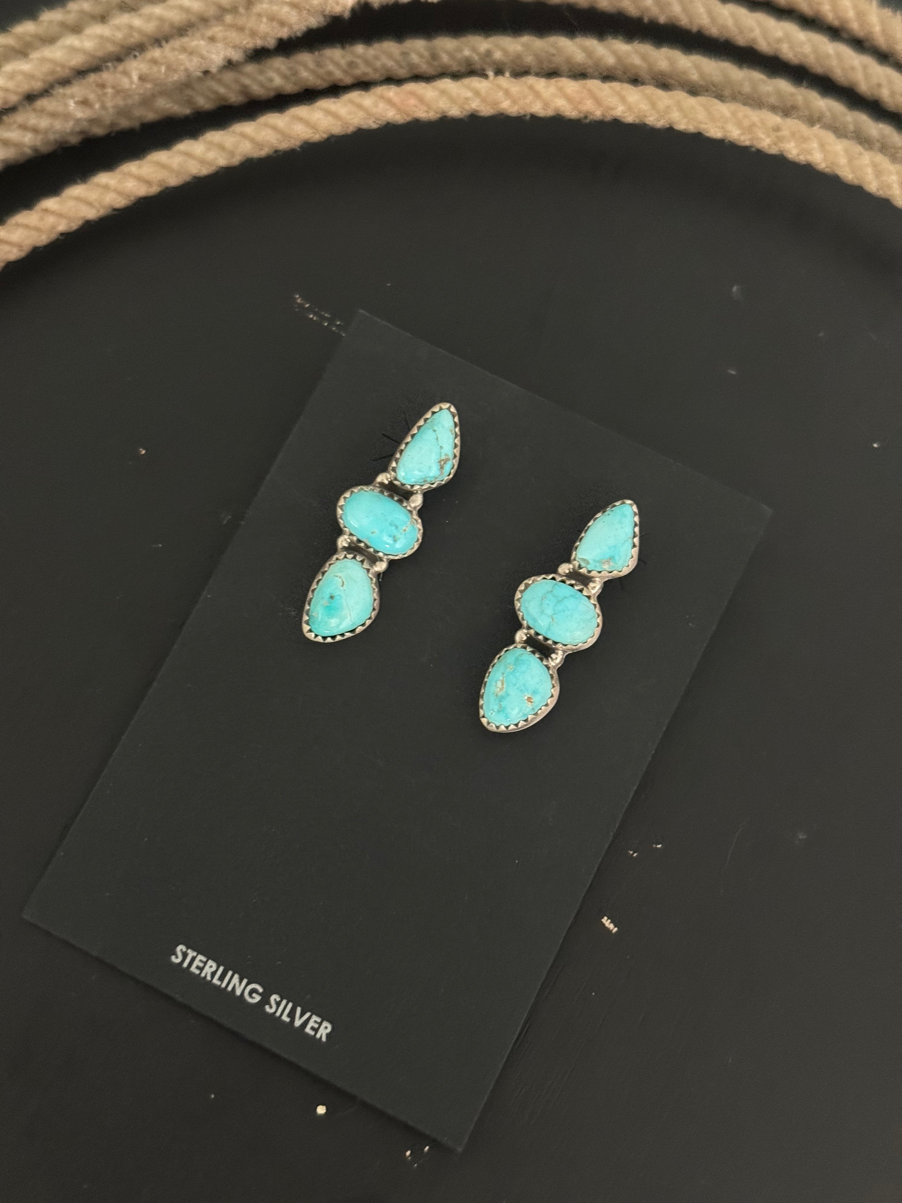 Southwest Handmade Royston Turquoise & Sterling Silver Post Dangles Earrings
