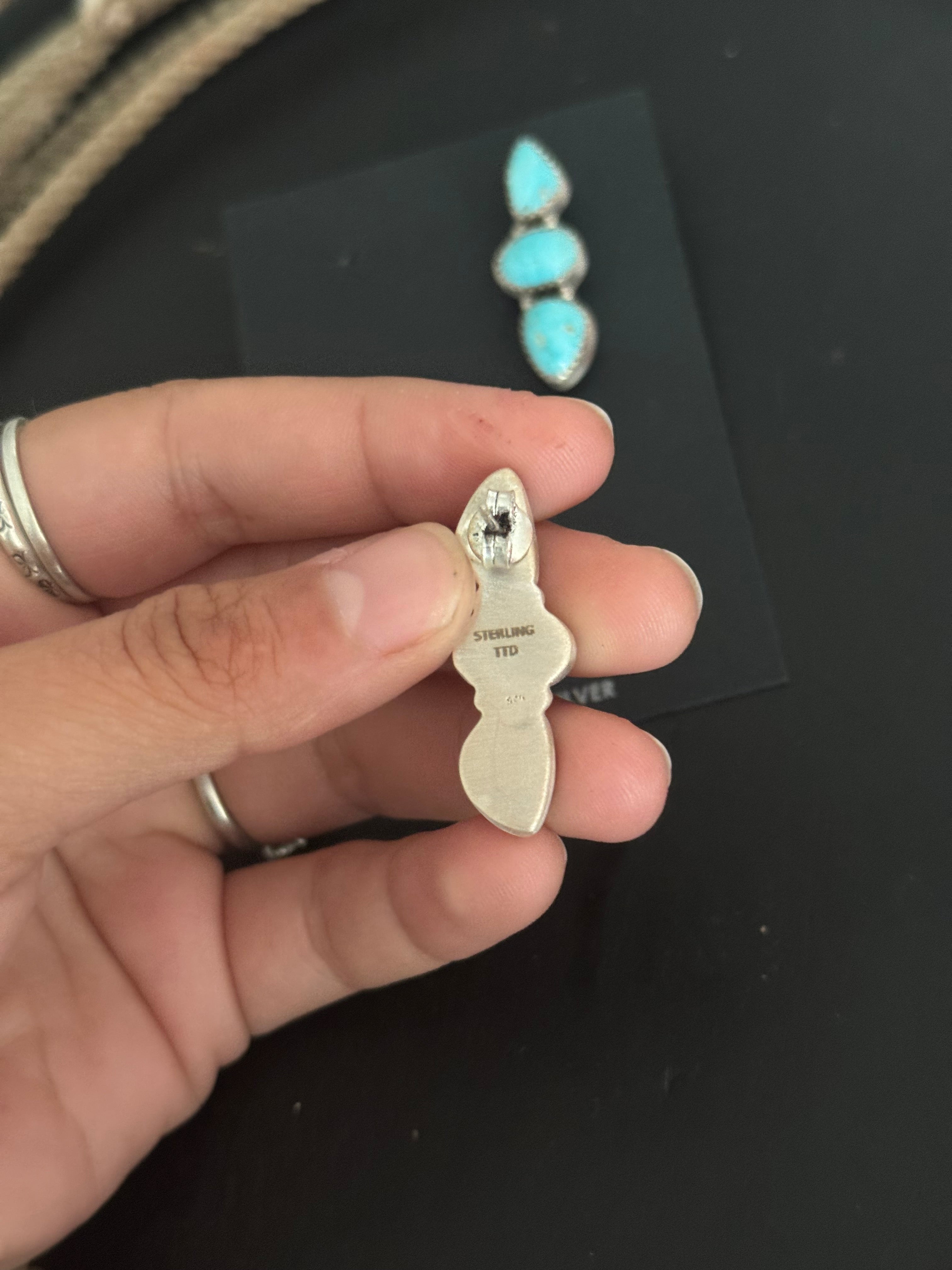 Southwest Handmade Royston Turquoise & Sterling Silver Dangles Earrings. They measure just over 1 3/8 inches long and 1/2 of an inch wide. Signed by the artist and stamped sterling silver.