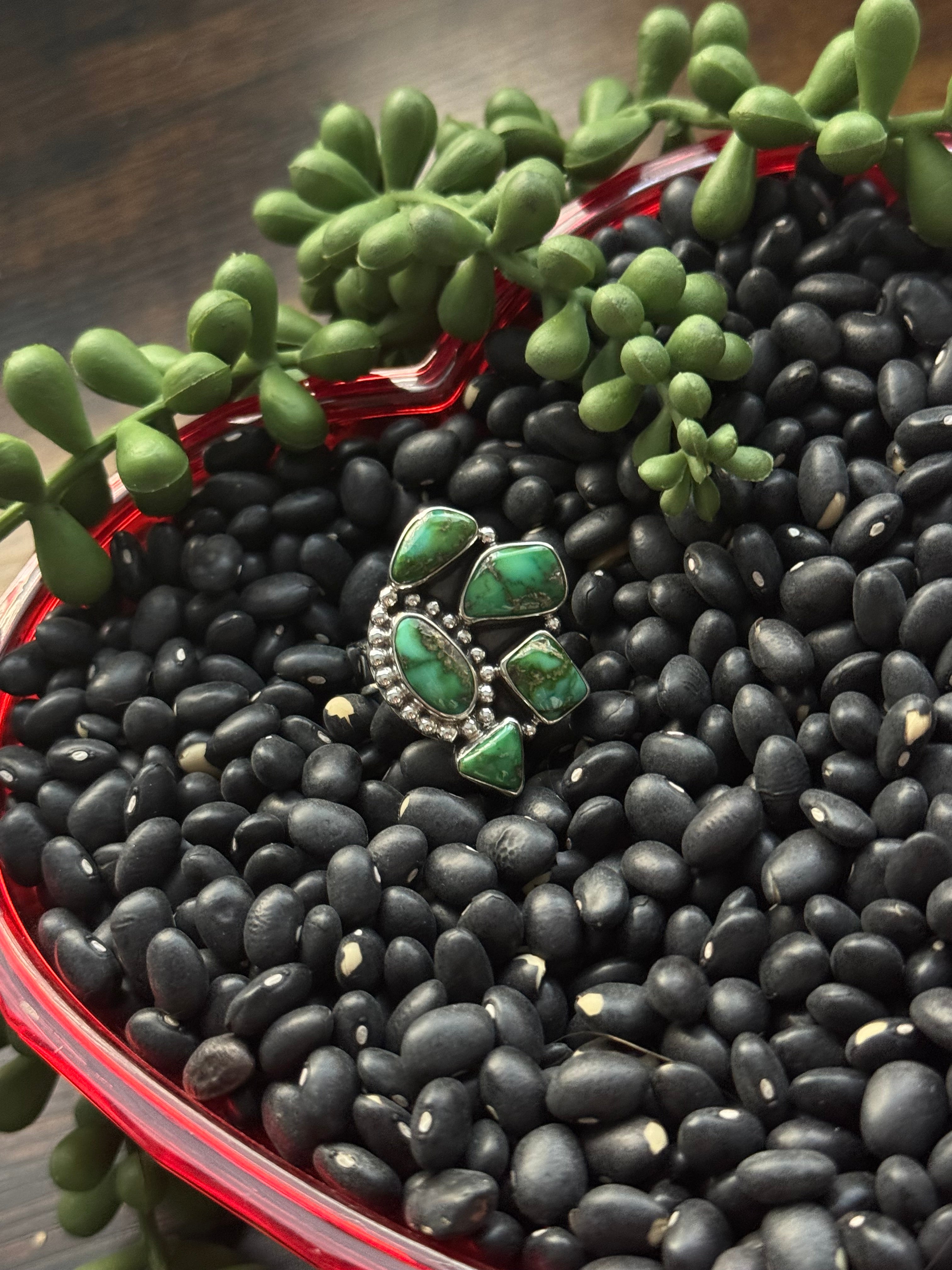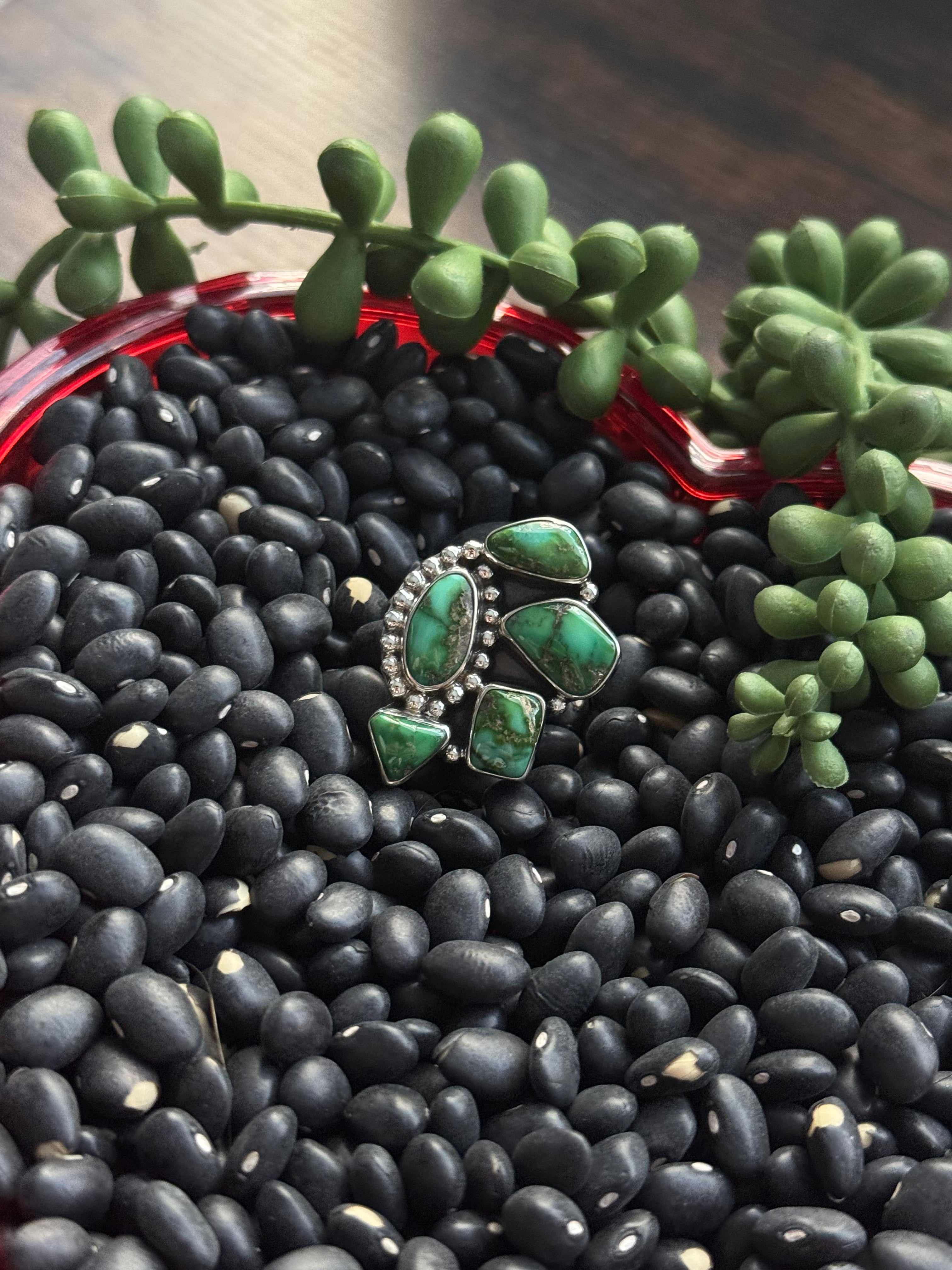 Southwest Handmade Sonoran Mountain Turquoise & Sterling Silver Adjustable Cluster Ring