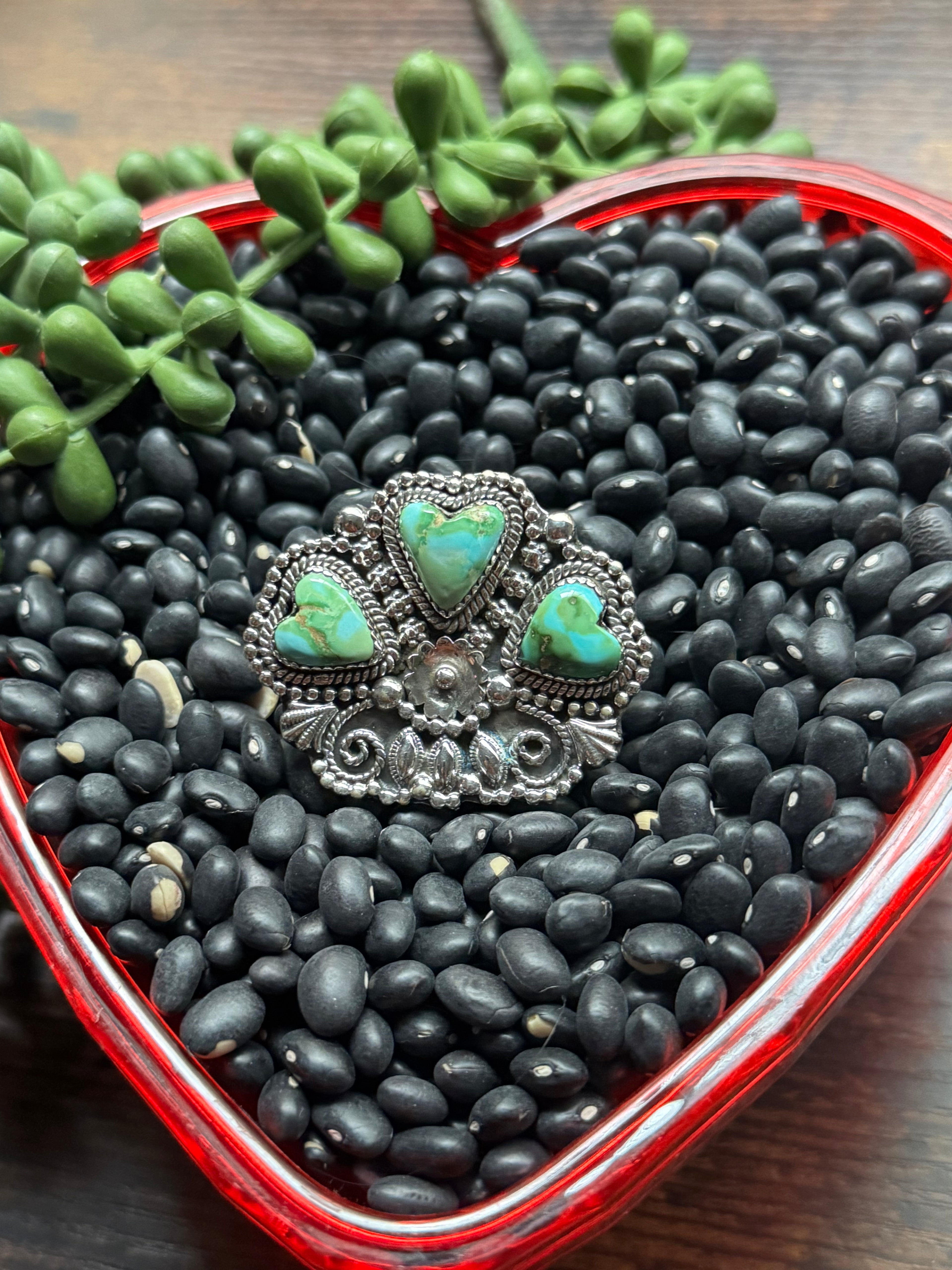 Southwest Handmade Sonoran Mountain Turquoise & Sterling Silver Adjustable Cluster Triple Heart Ring