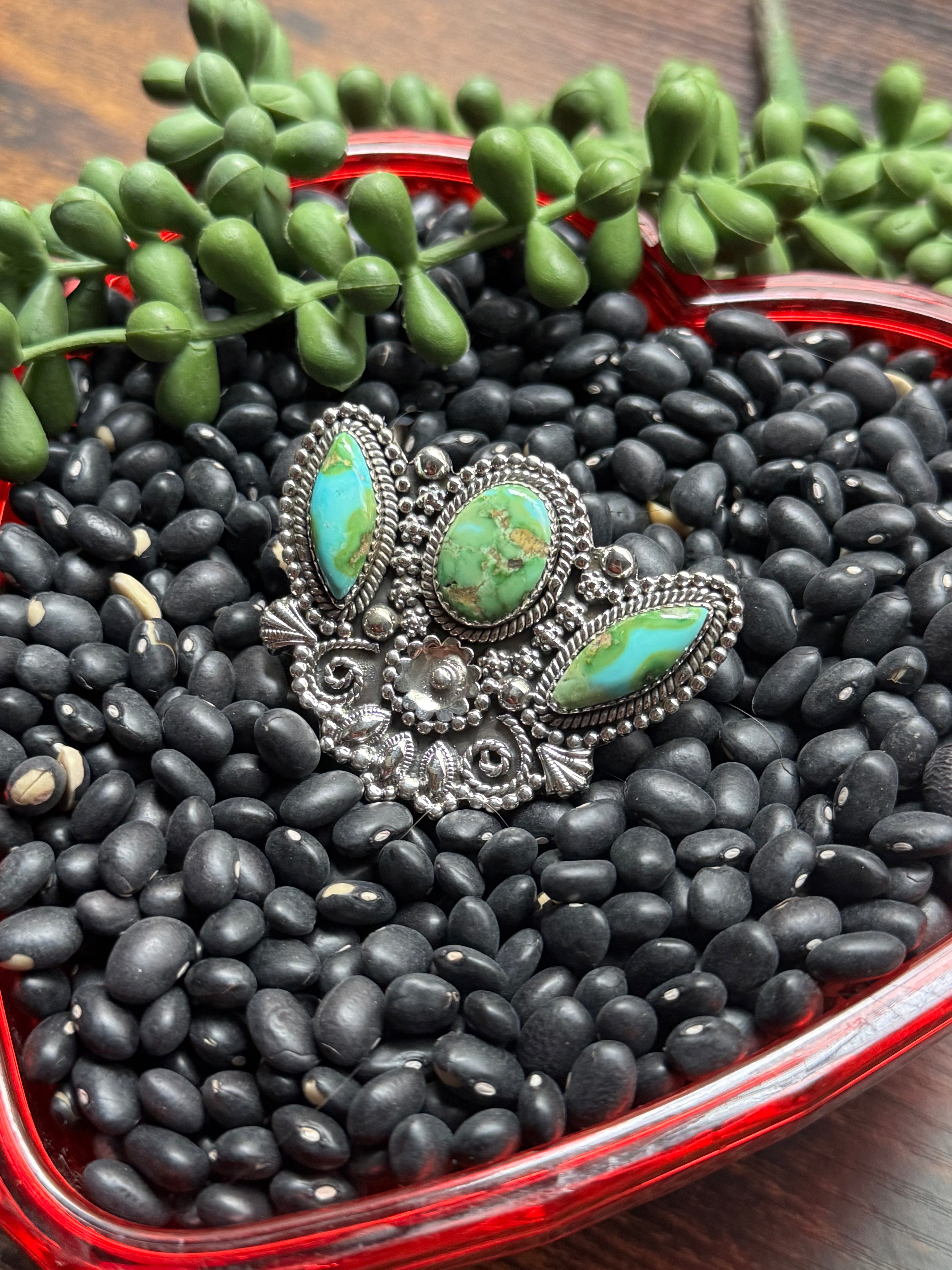 Southwest Handmade Sonoran Mountain Turquoise & Sterling Silver Adjustable Cluster Ring