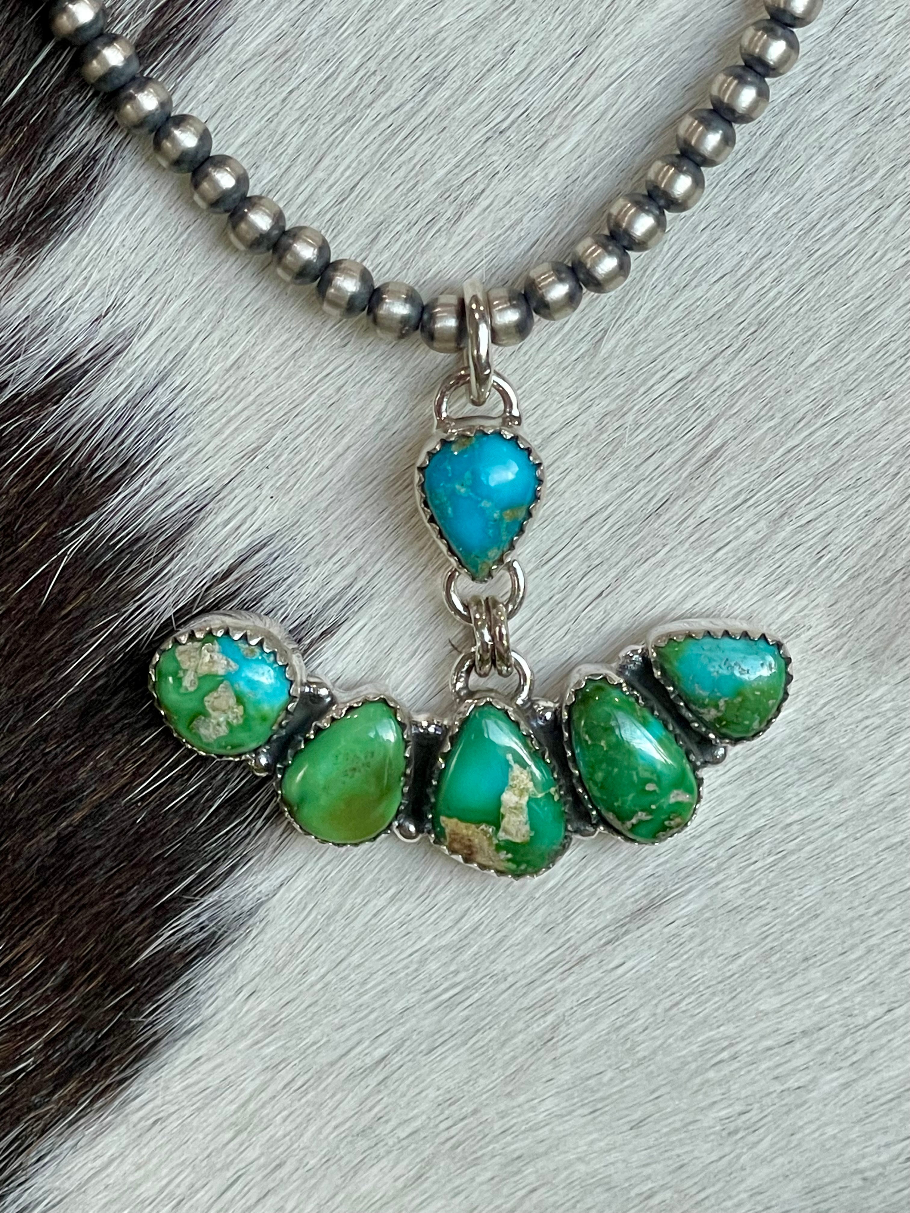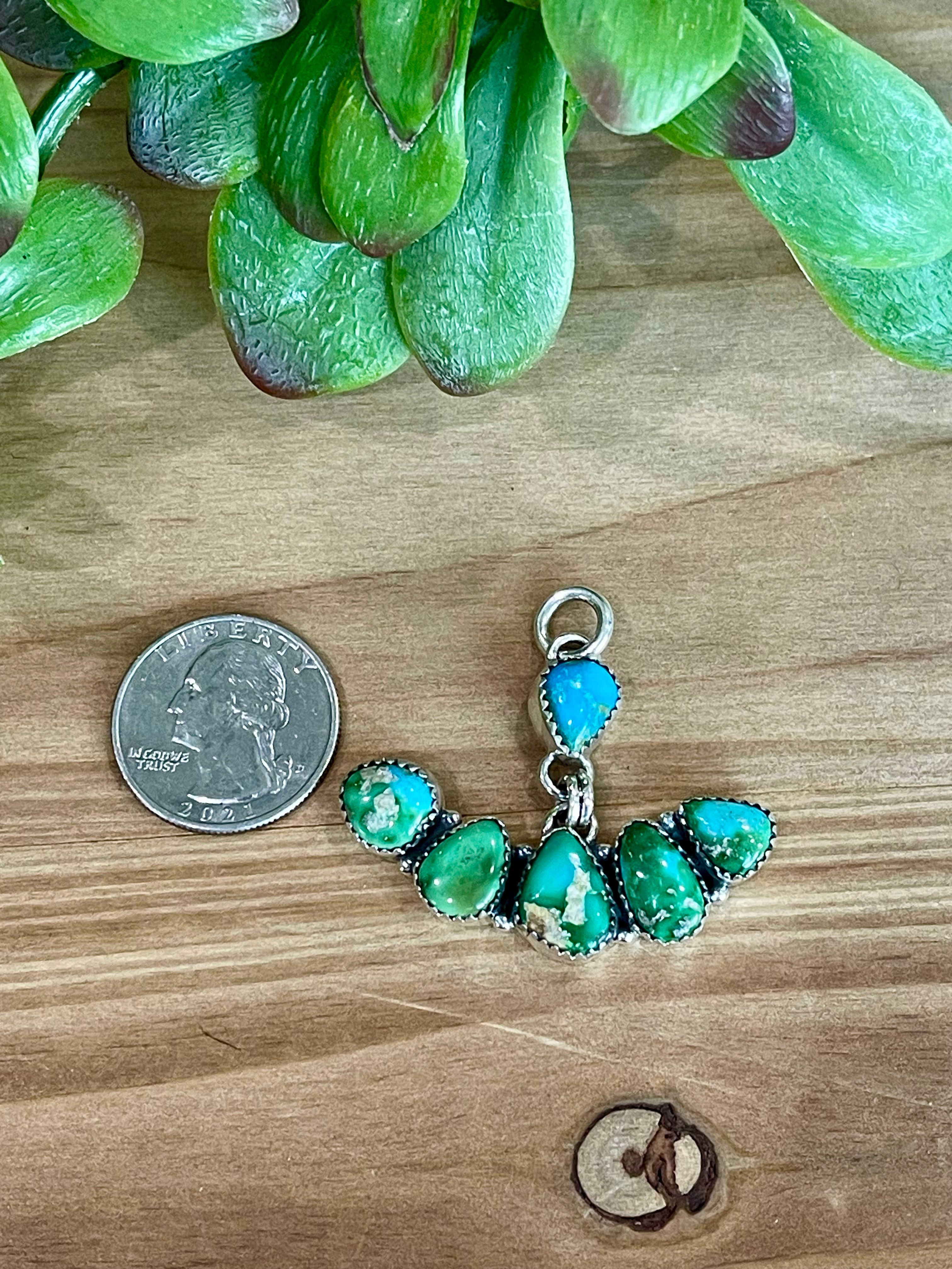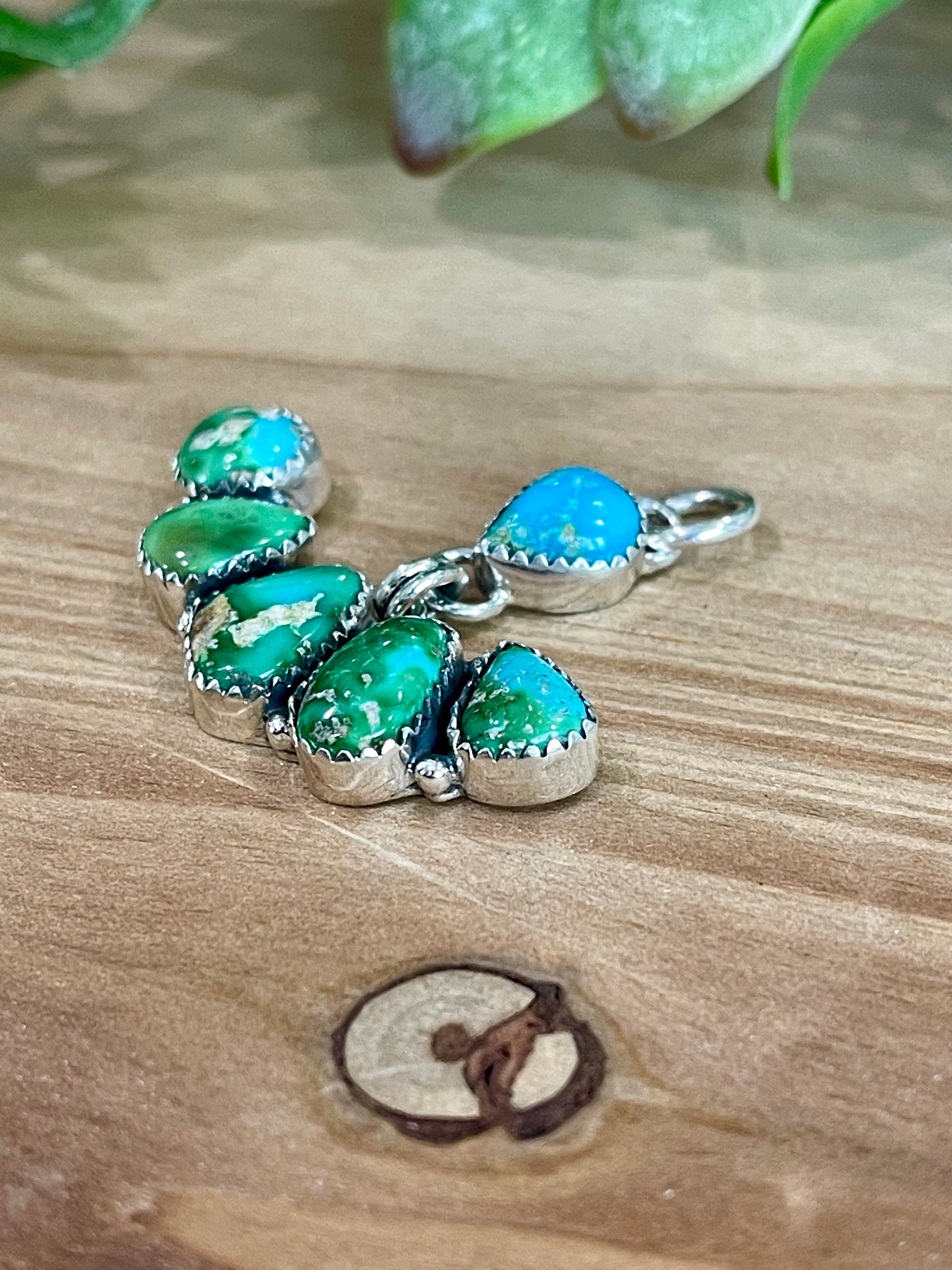 Southwest Handmade Sonoran Mountain Turquoise & Sterling Silver Cluster Dangle Pendant