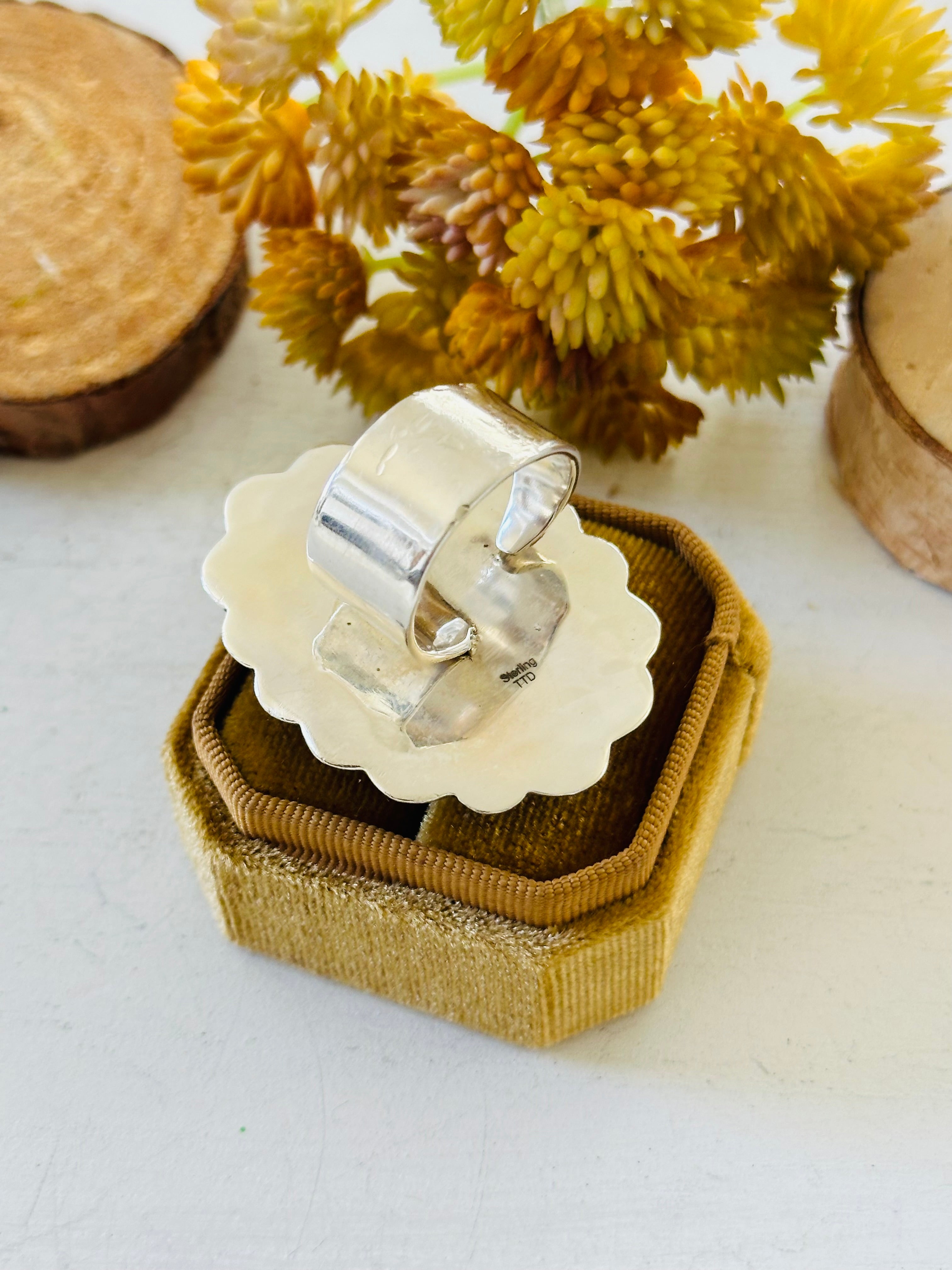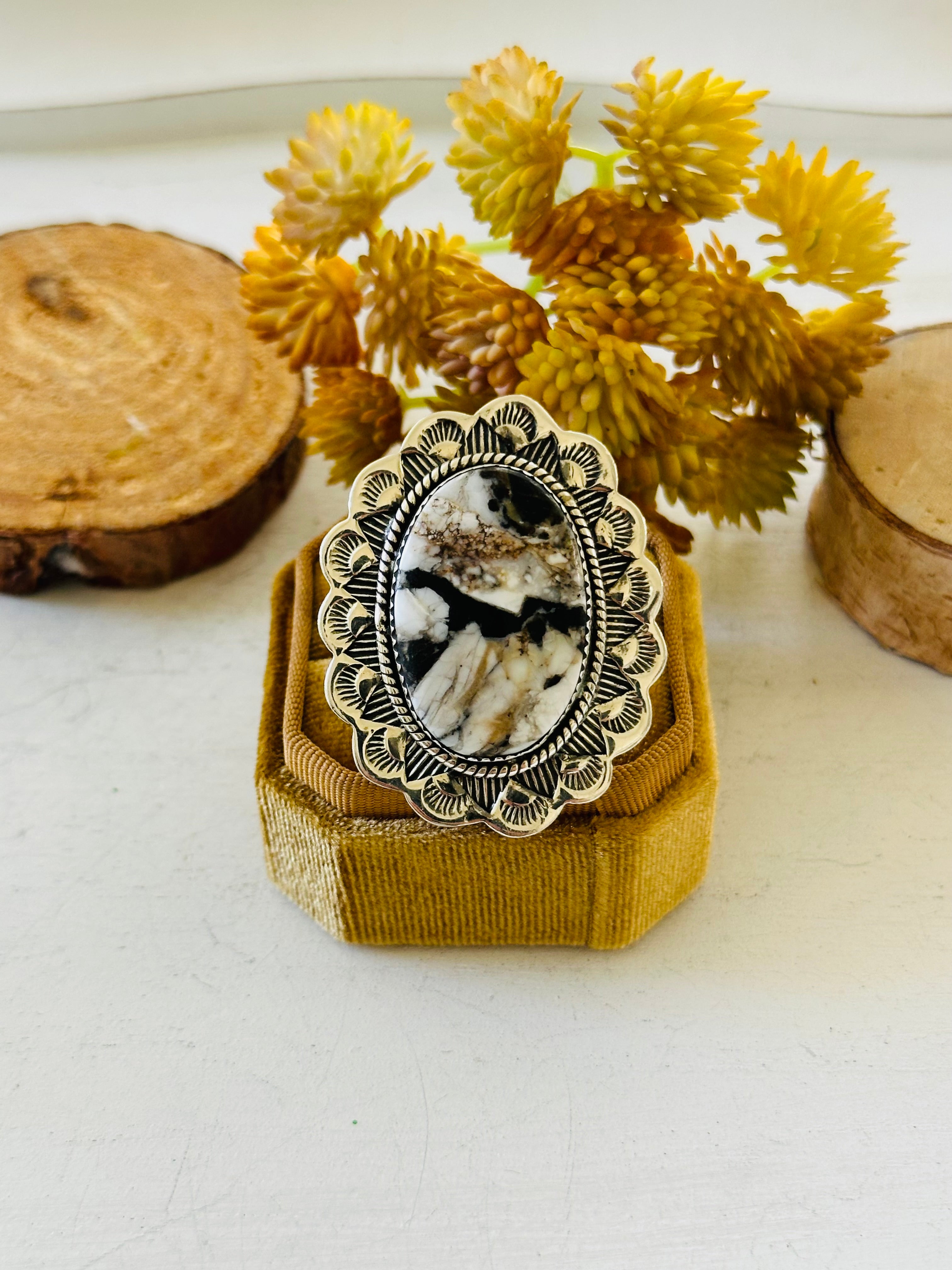 Southwest Handmade White Buffalo & Sterling Silver Adjustable Ring