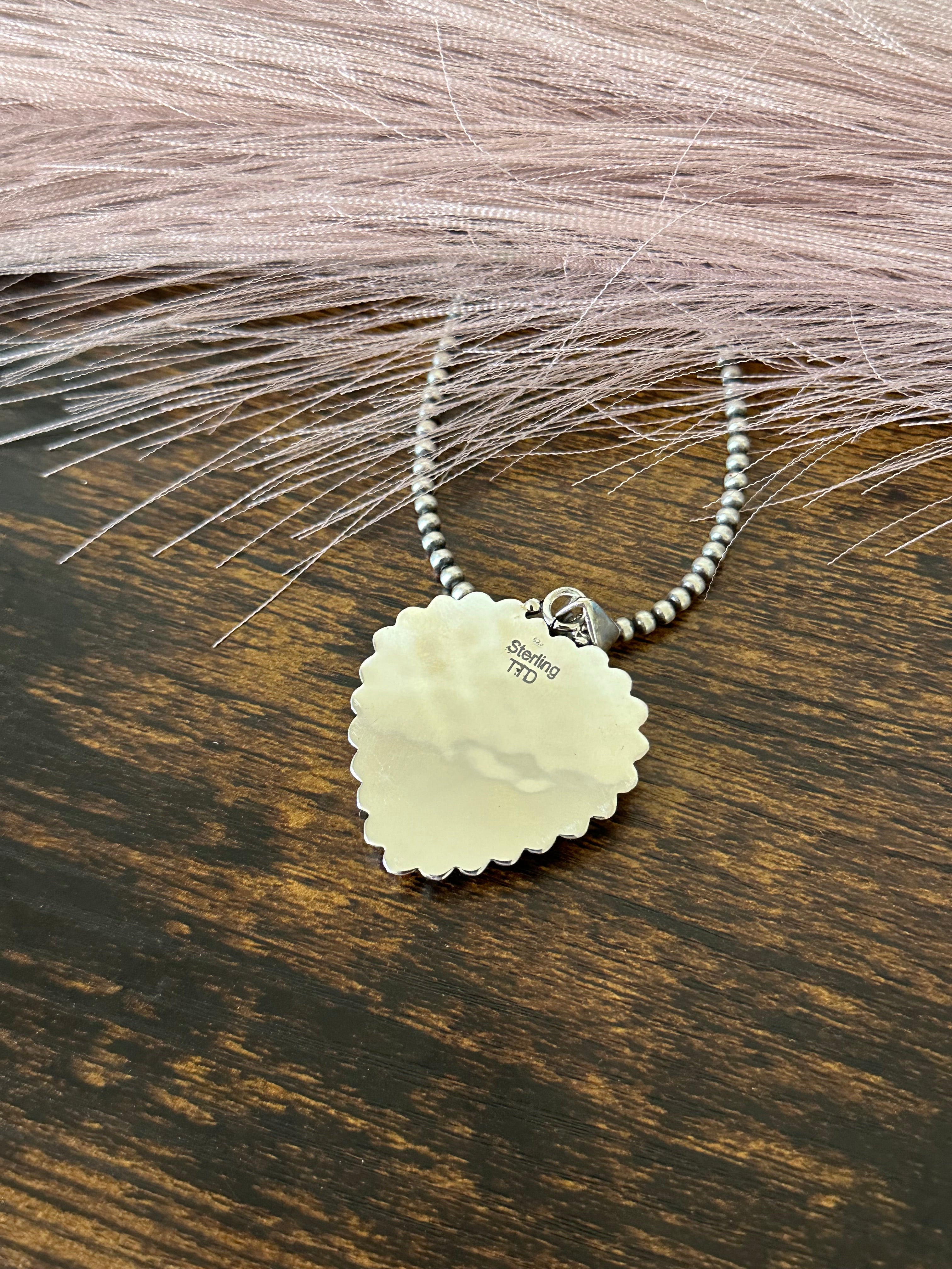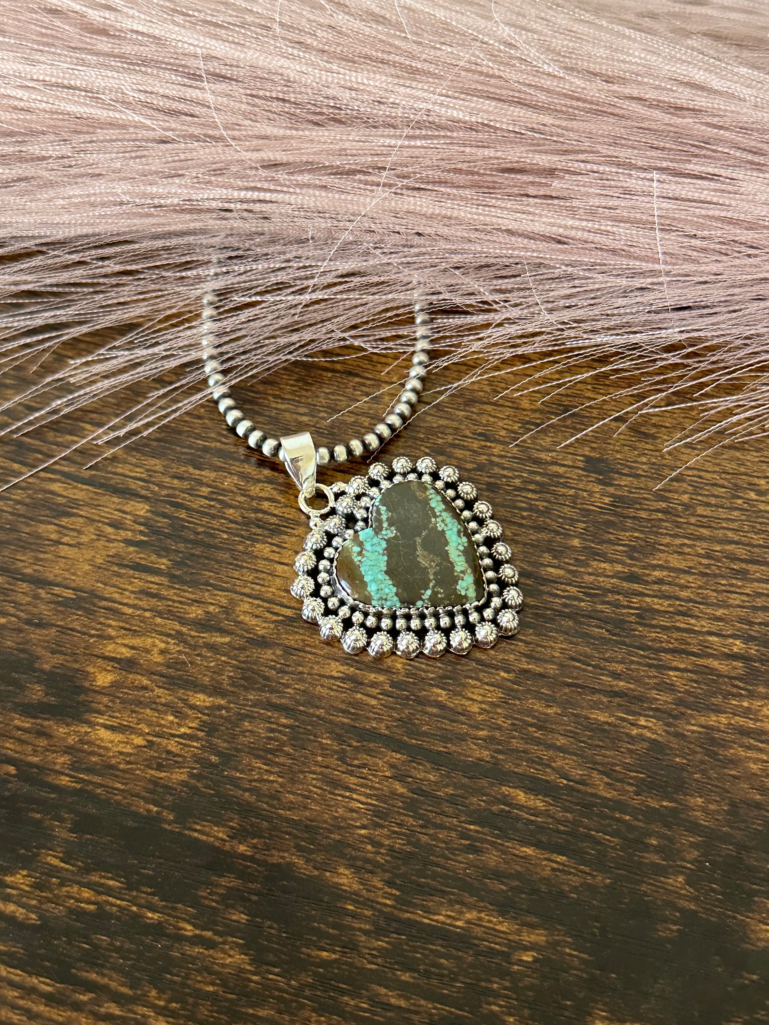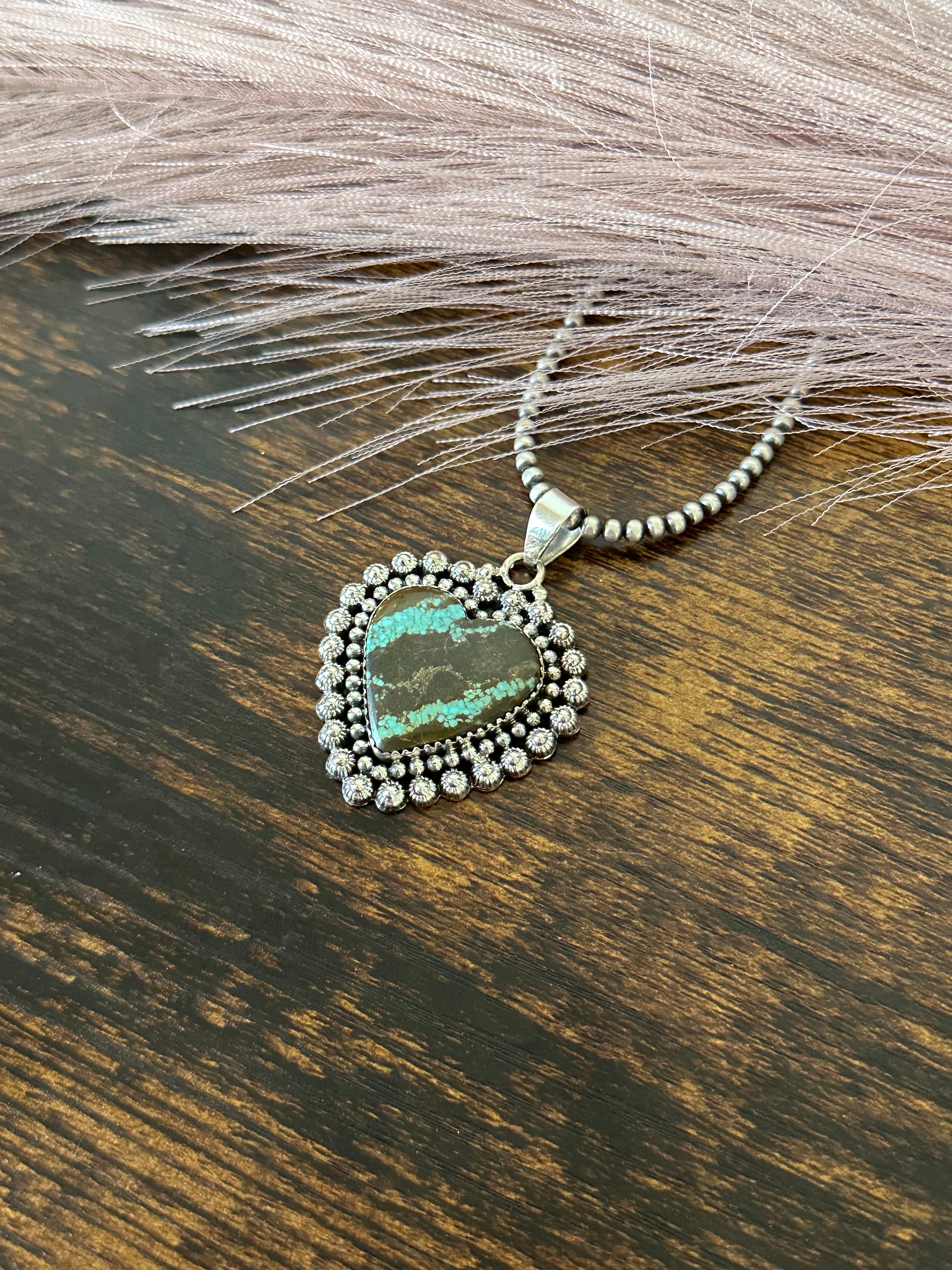 Southwest Handmade Number 8 Turquoise & Sterling Silver Heart Pendant