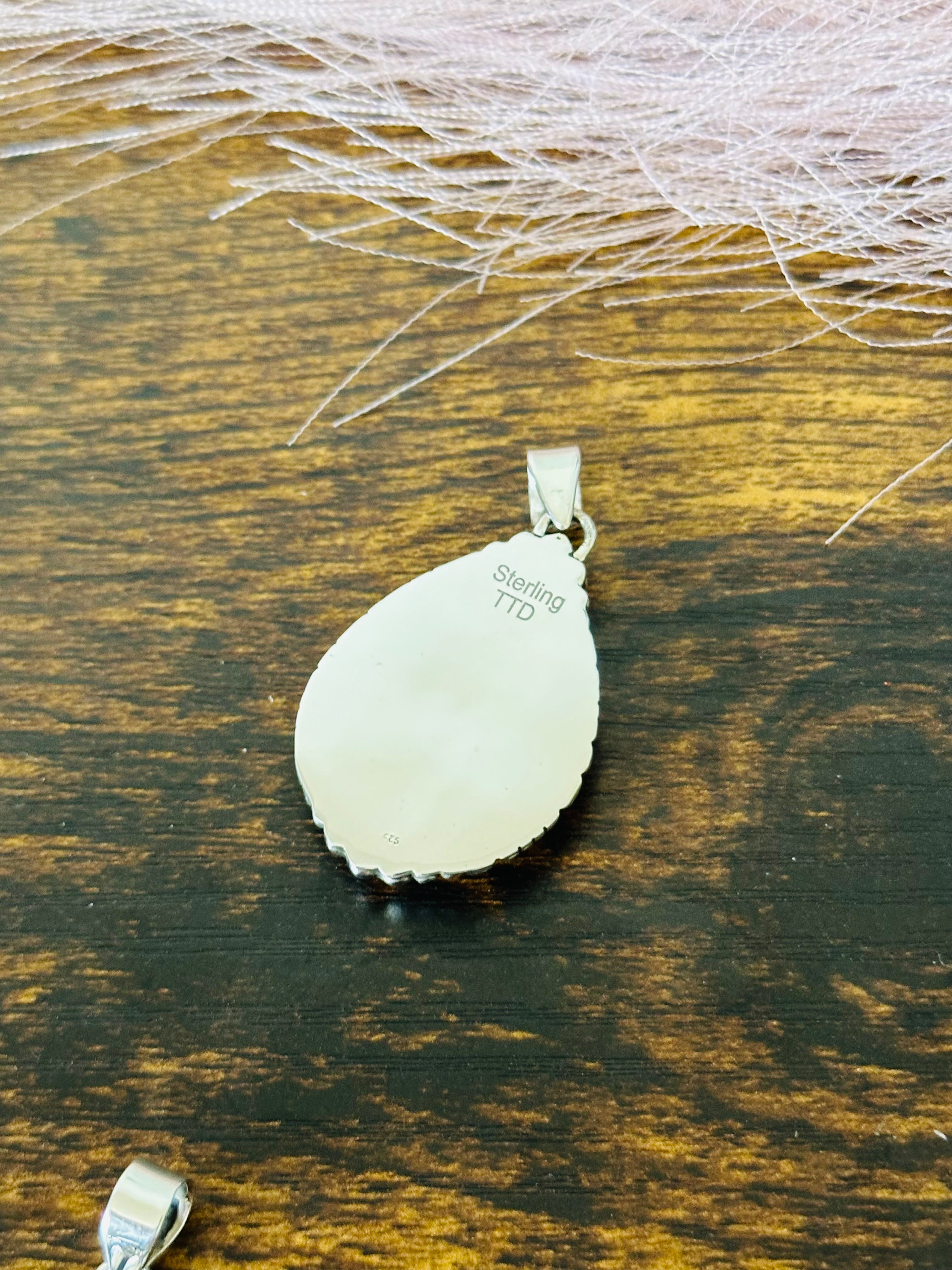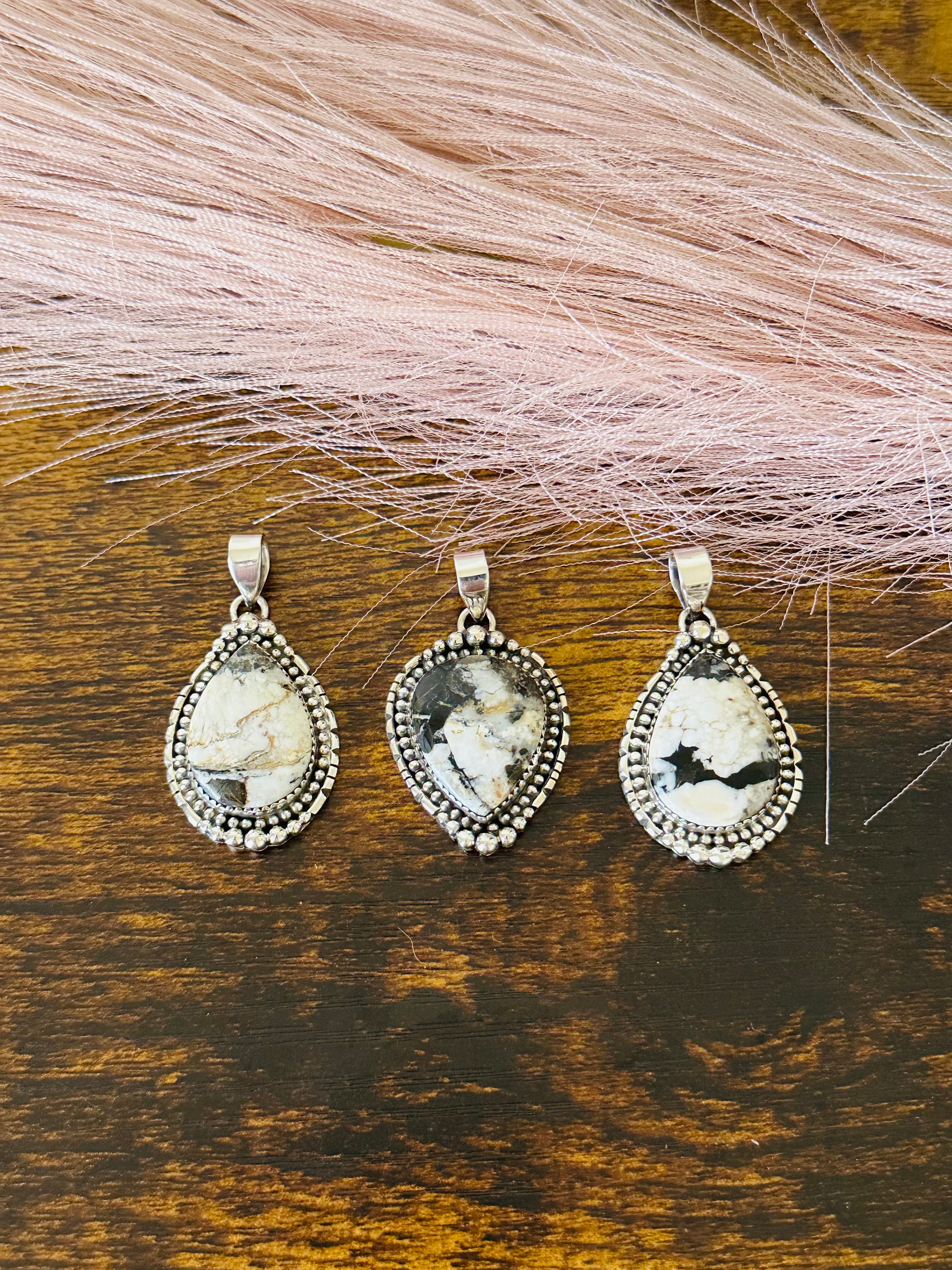 Southwest Handmade White Buffalo & Sterling Silver Pendant. They measure 1 7/8 inches long and 1 inch wide. Pendant Only!! Signed by the artist and stamped sterling silver.
