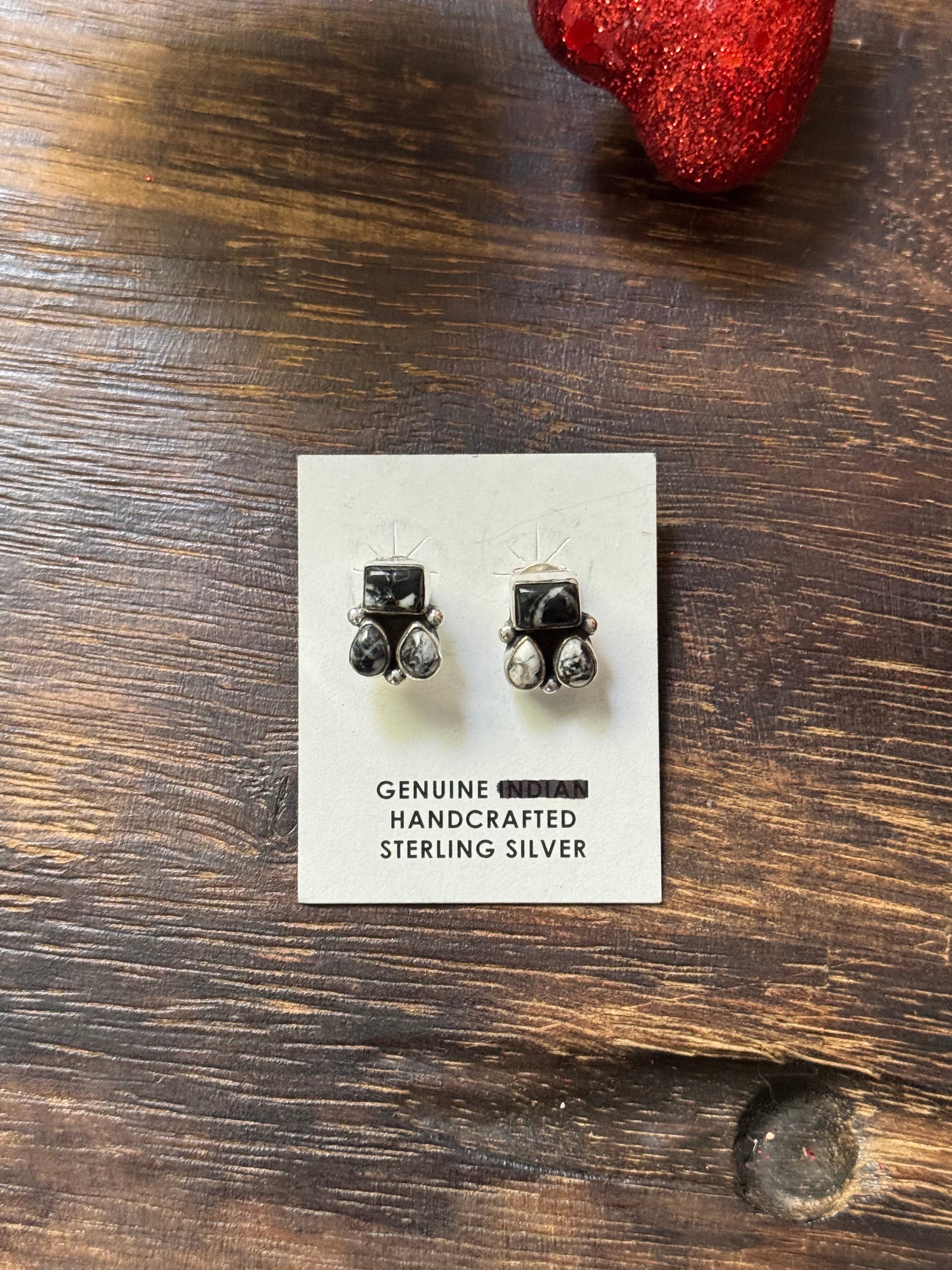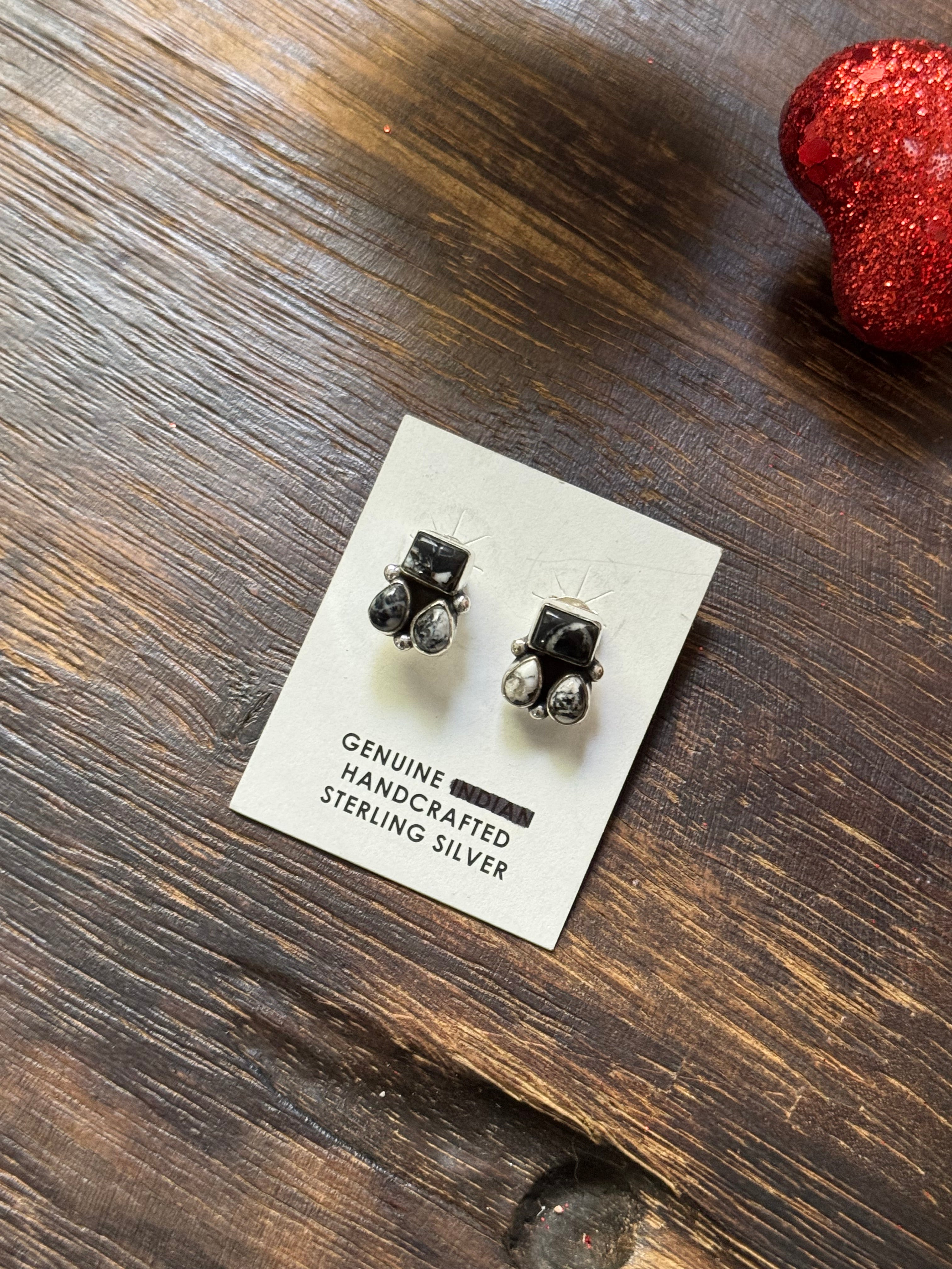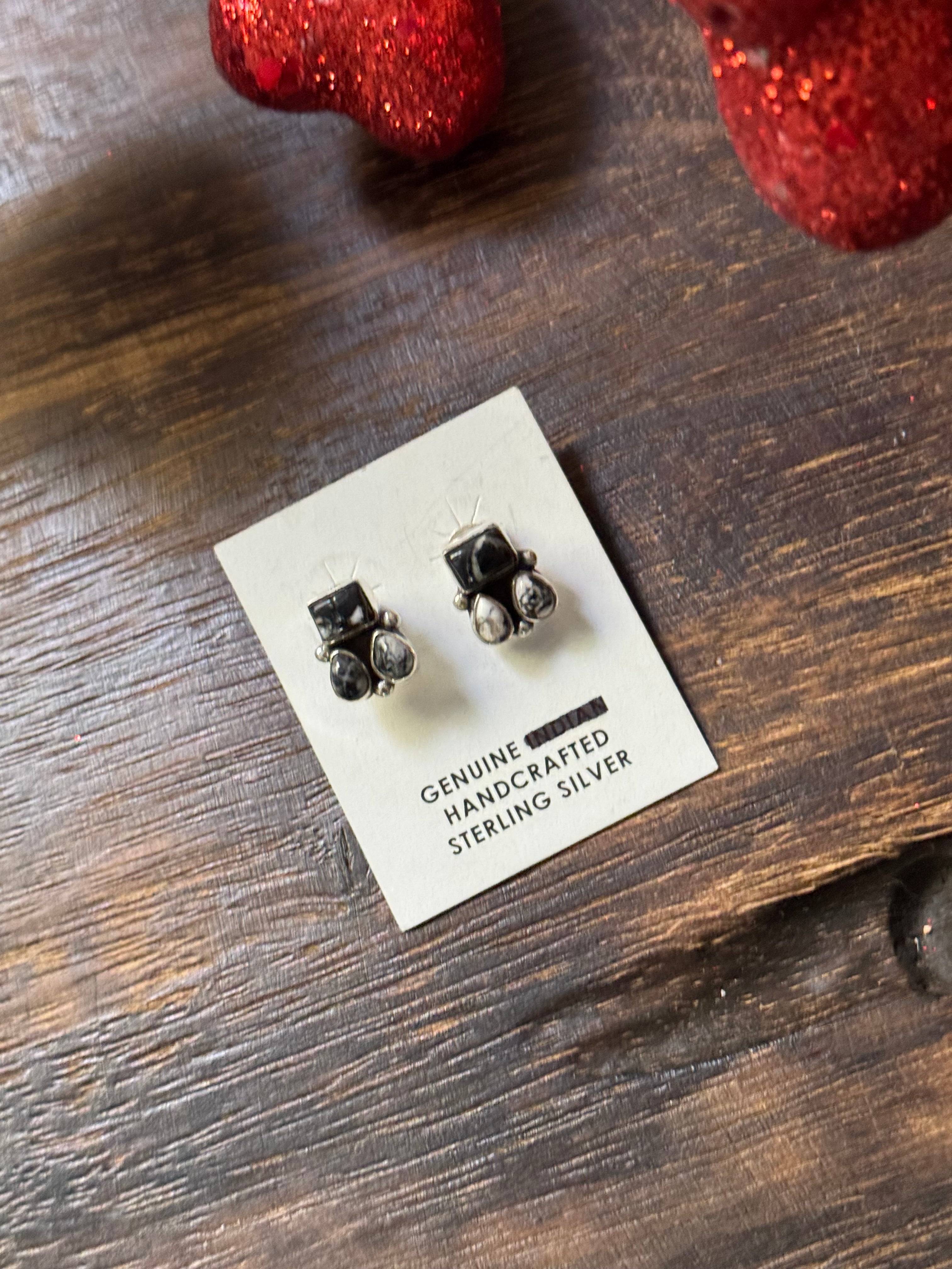 Southwest Handmade White Buffalo & Sterling Silver Post Cluster Earrings