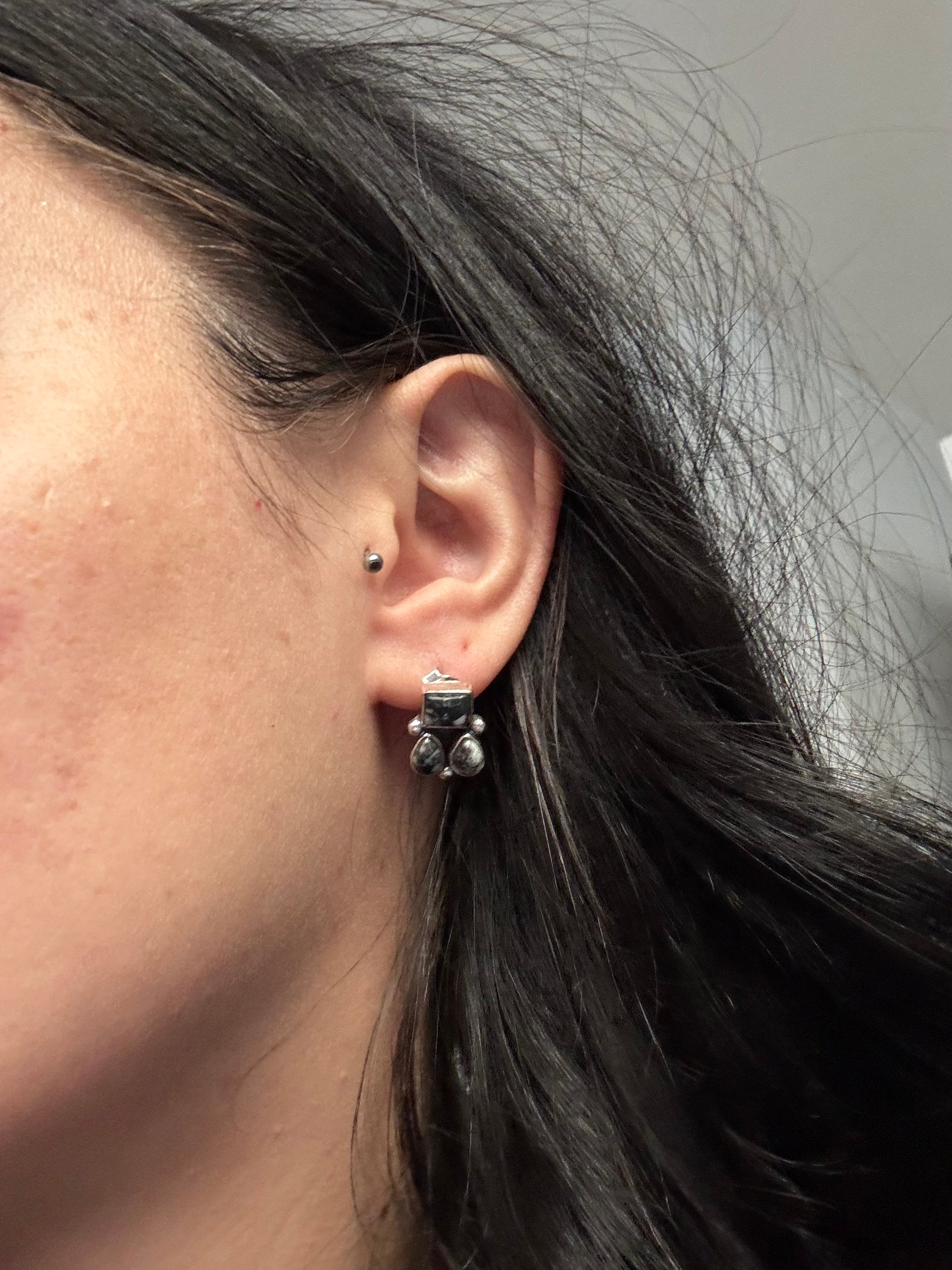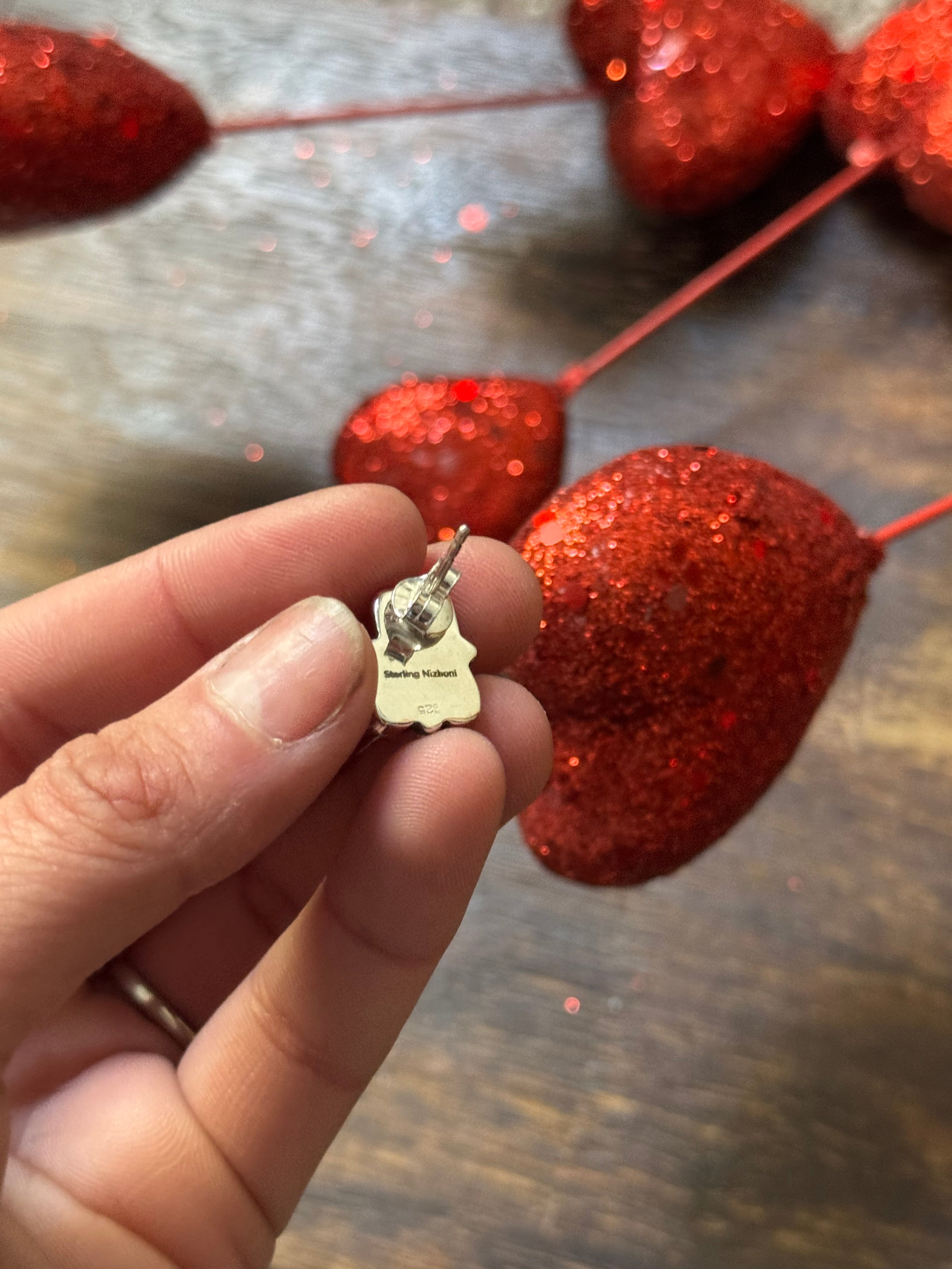 Breathtaking earrings. Southwest Handmade White Buffalo & Sterling Silver Post Cluster Earrings. It measures 1/2 of an inch long and just over 3/8 of an inch wide. Signed by the artist and stamped sterling silver.