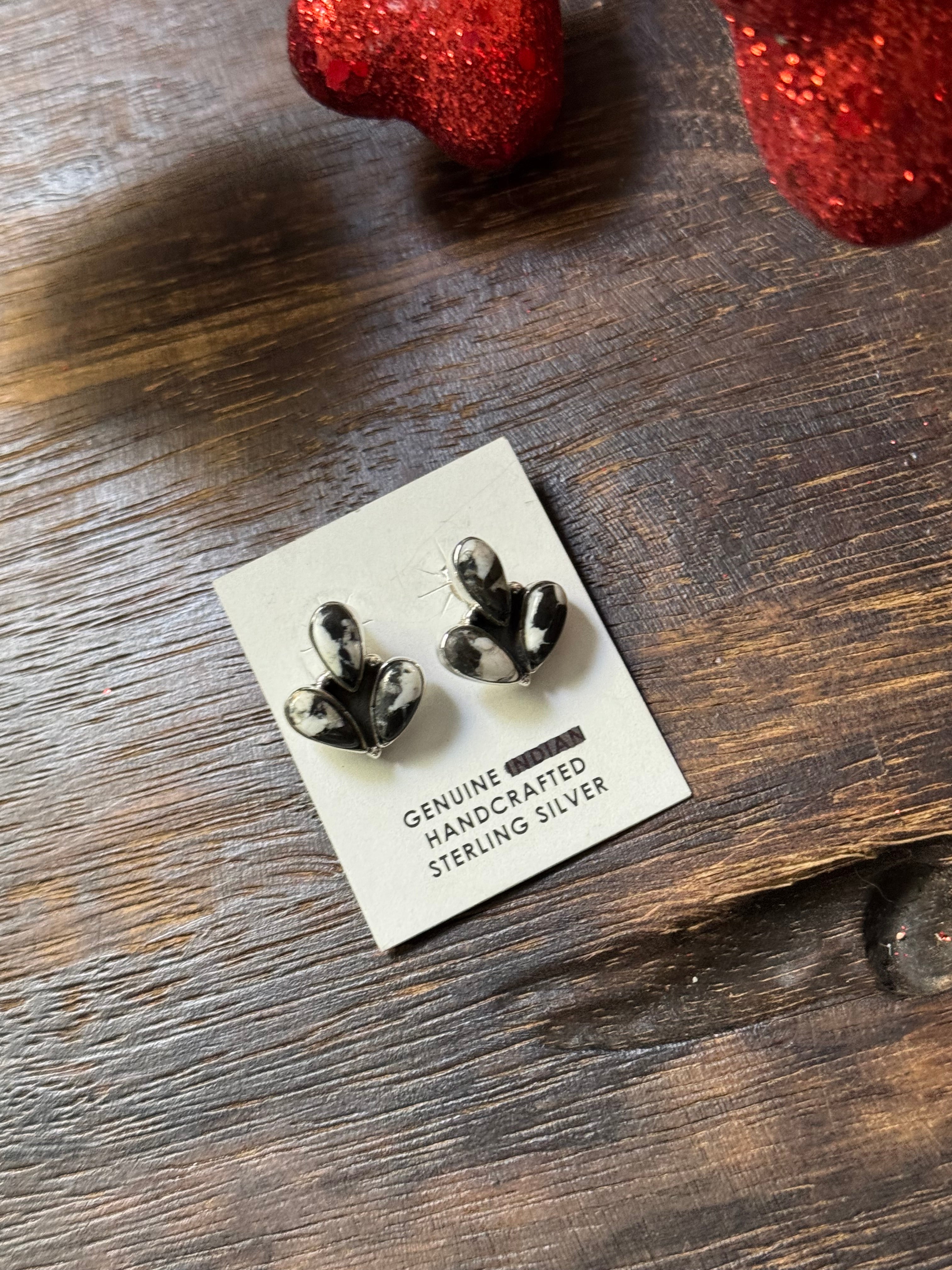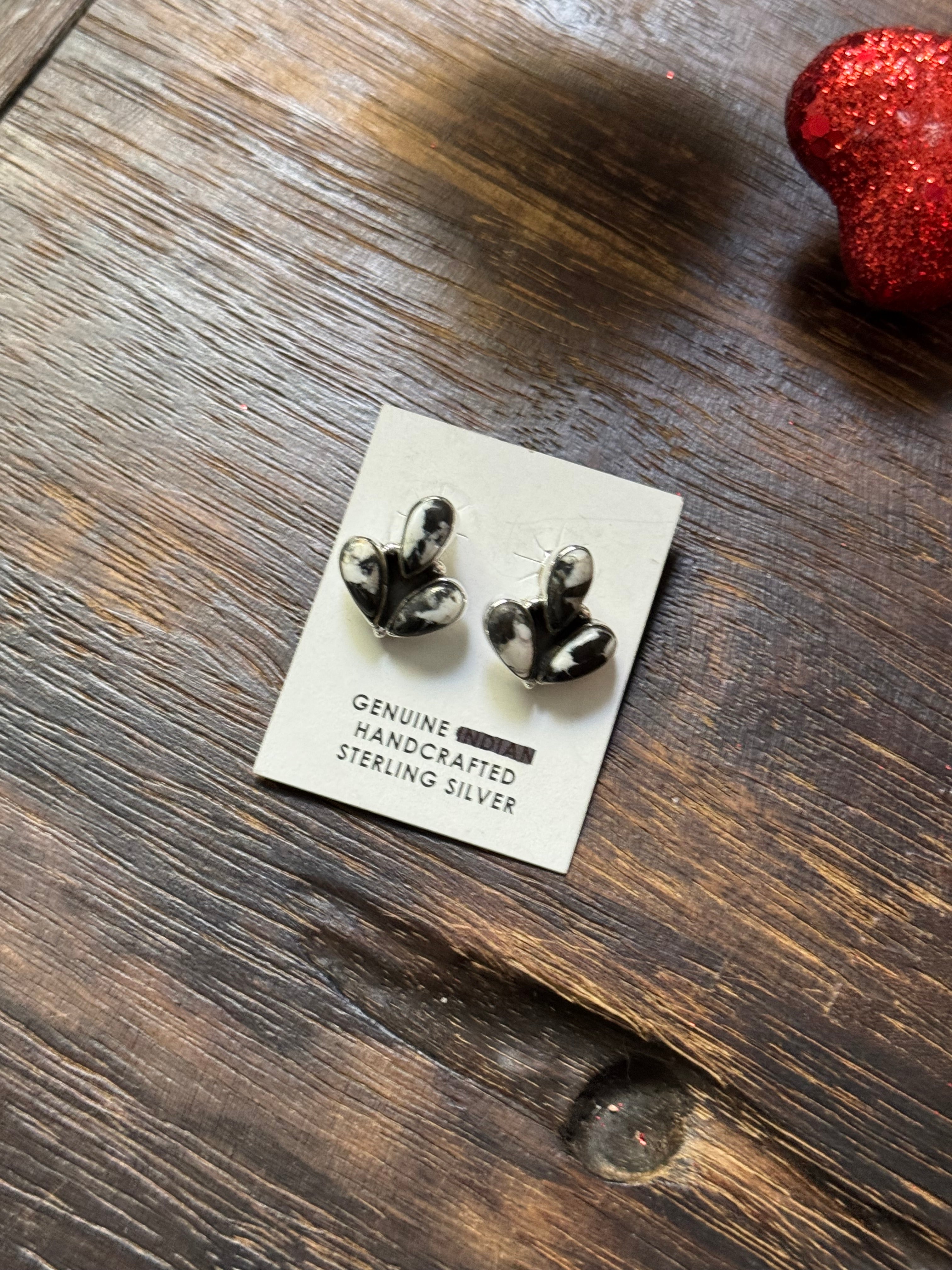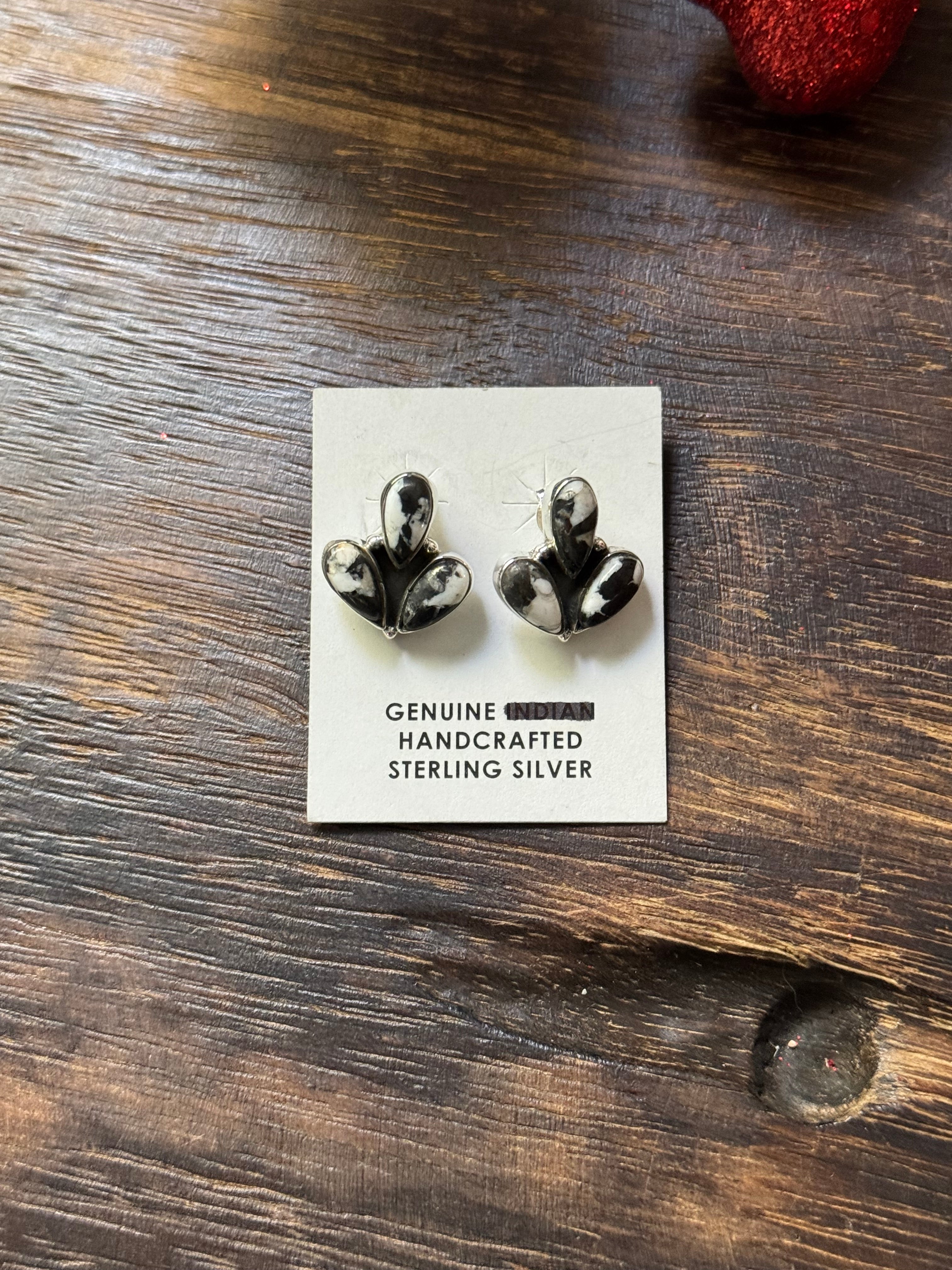 Southwest Handmade White Buffalo & Sterling Silver Post Cluster Earrings