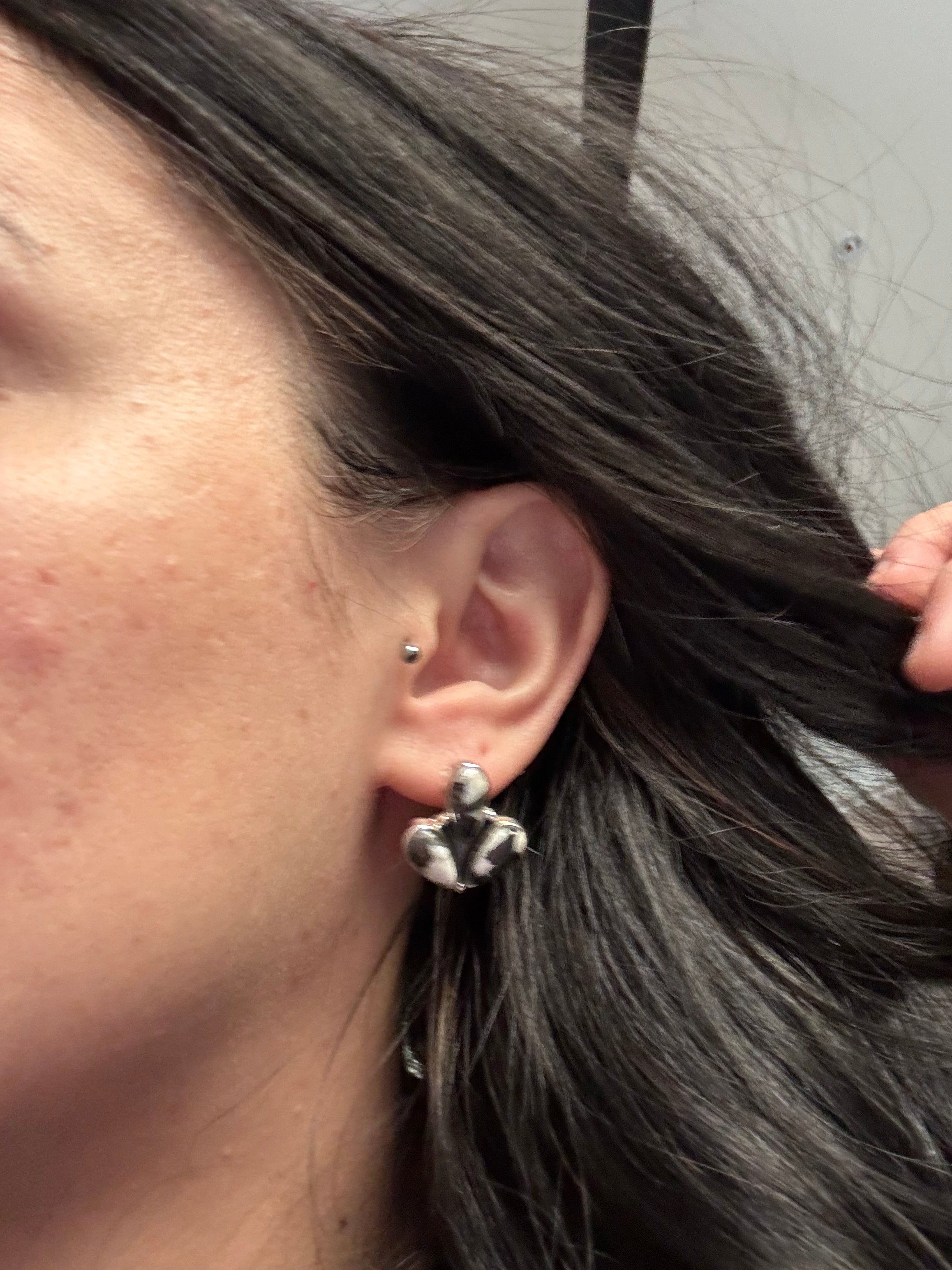 Breathtaking earrings. Southwest Handmade White Buffalo & Sterling Silver Post Cluster Earrings. It measures just over 3/4 of an inch long and just over 5/8 of an inch wide. Signed by the artist and stamped sterling silver.