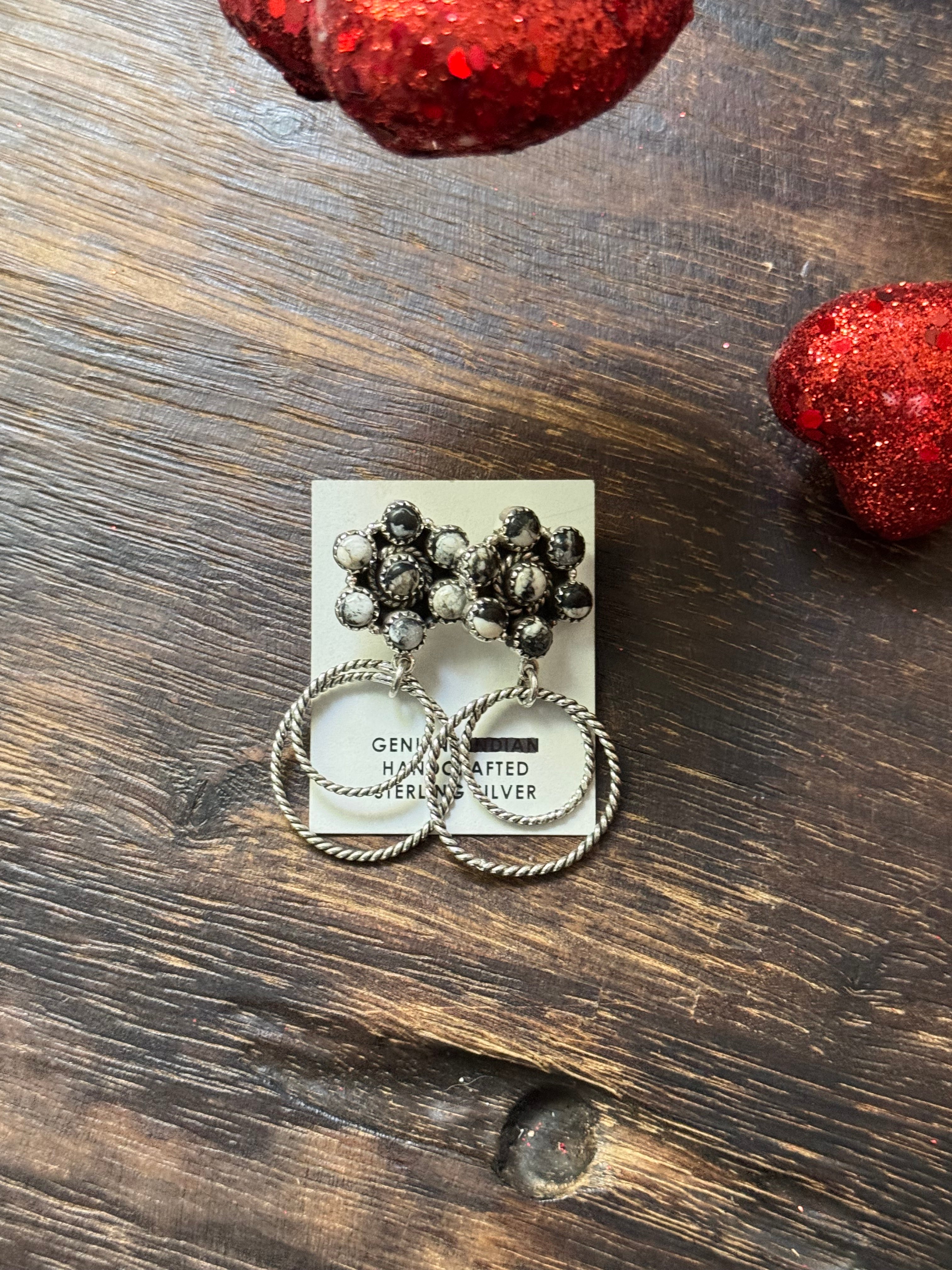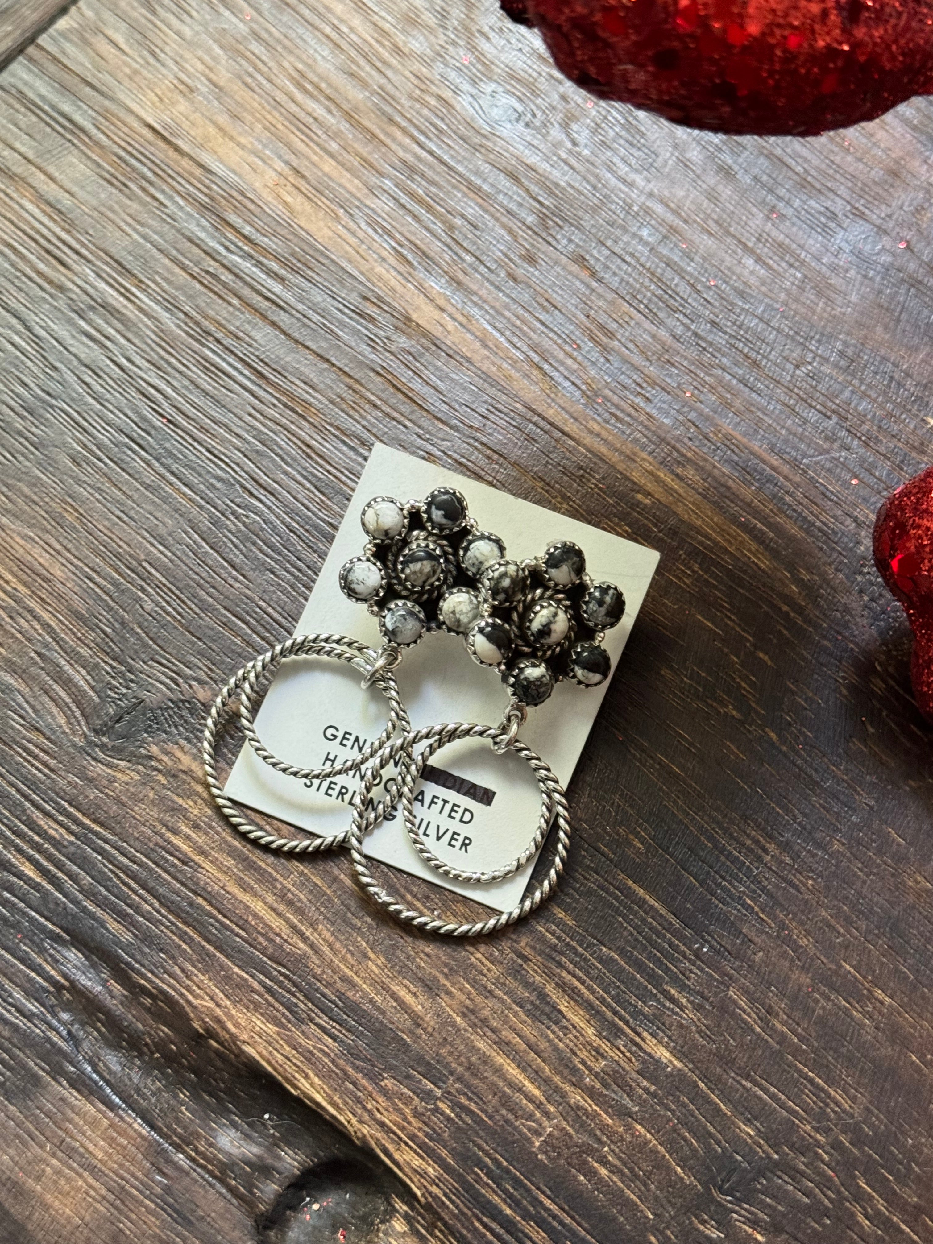 Southwest Handmade White Buffalo & Sterling Silver Post Dangle Earrings