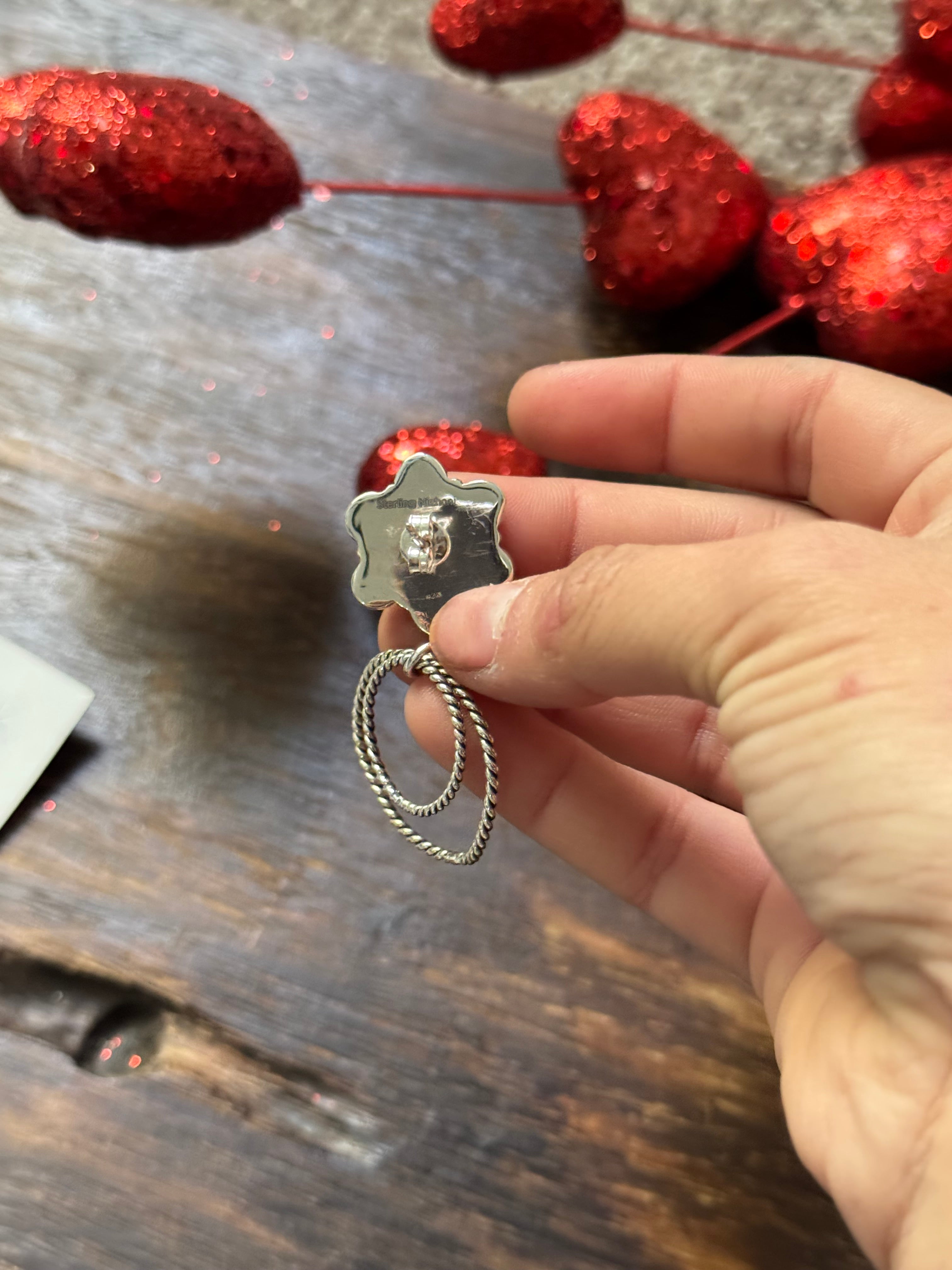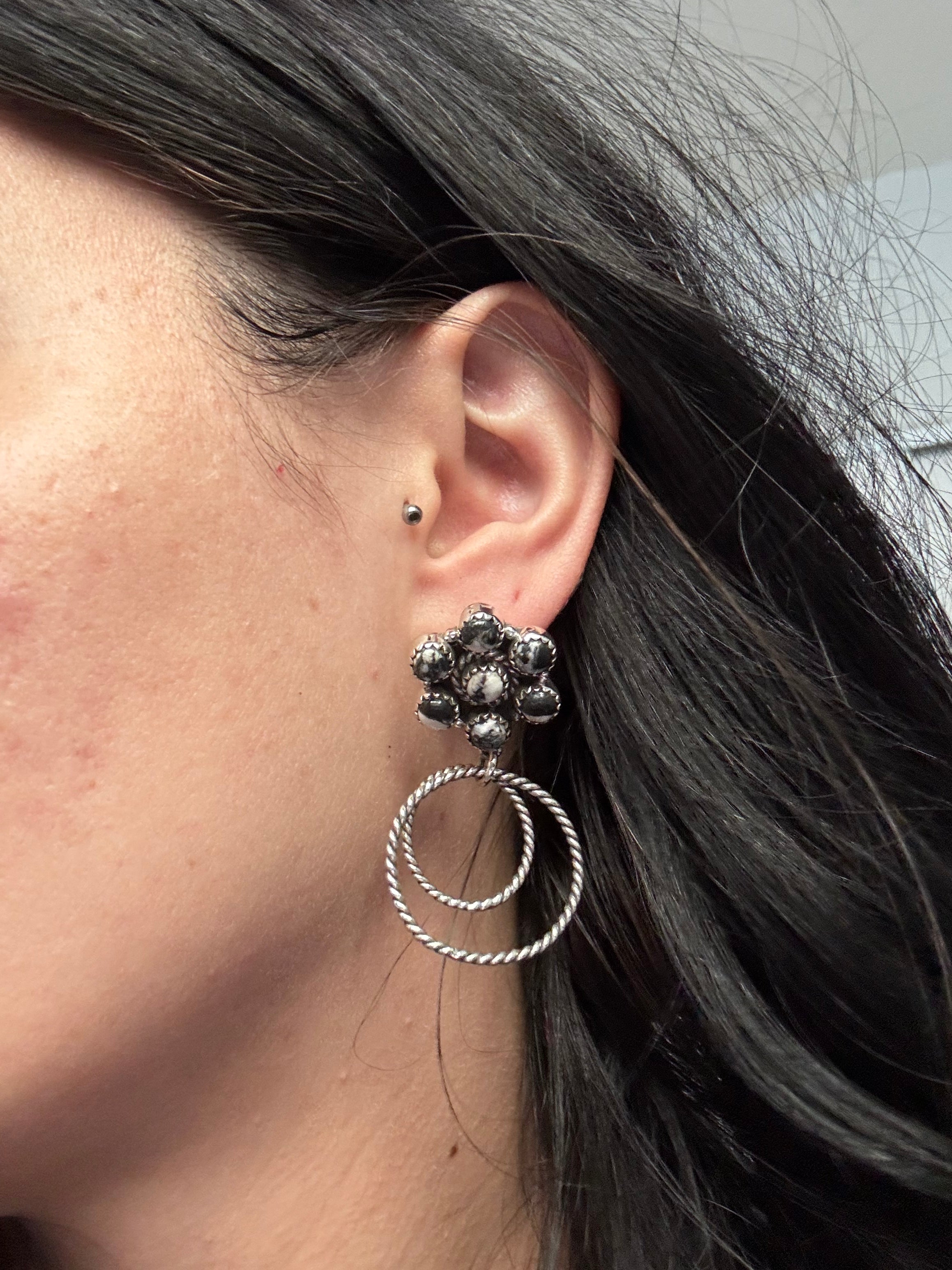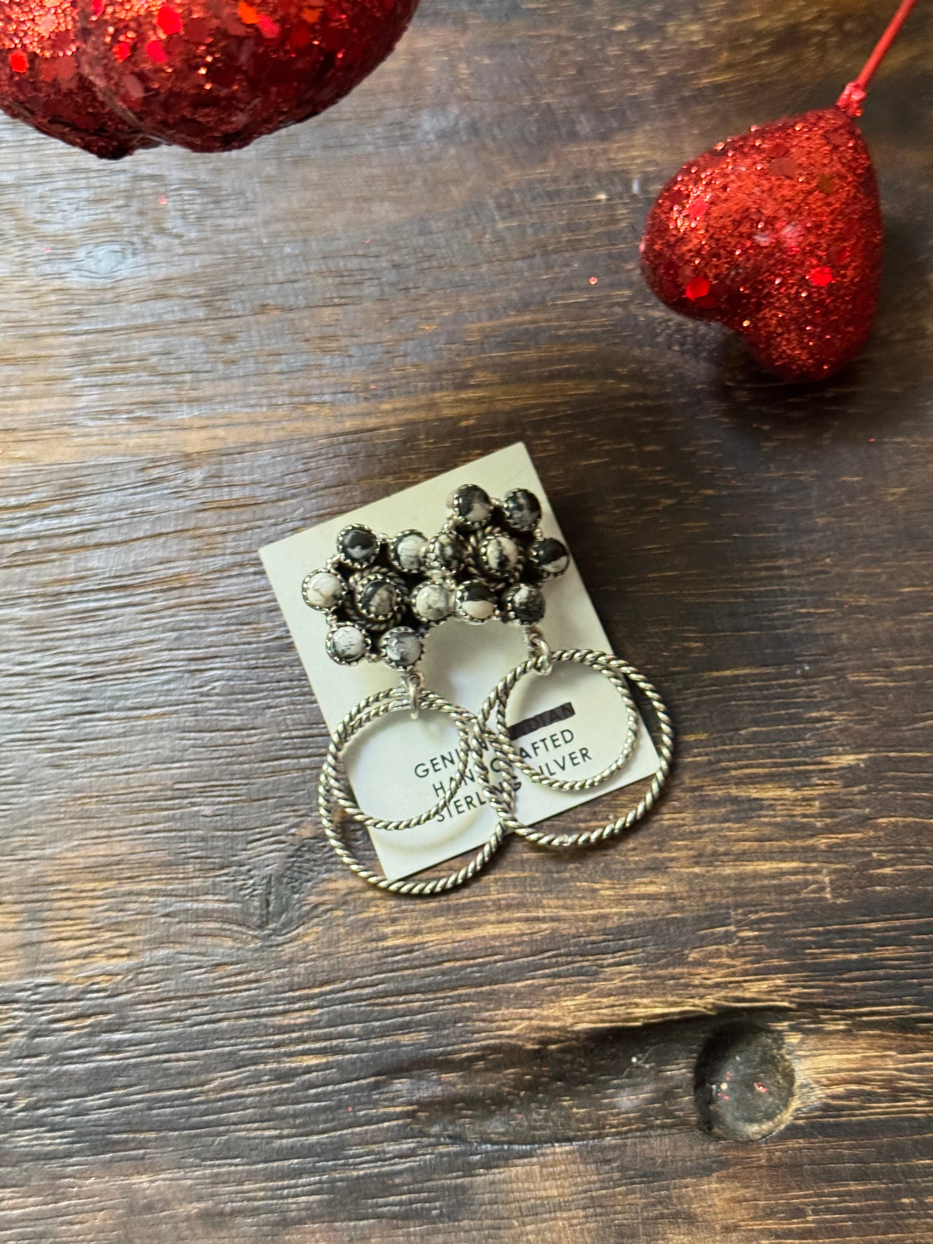 Breathtaking earrings. Southwest Handmade White Buffalo & Sterling Silver Post Dangle Earrings. It measures 2 1/8 inches long and 1 1/8 inches wide. Signed by the artist and stamped sterling silver.