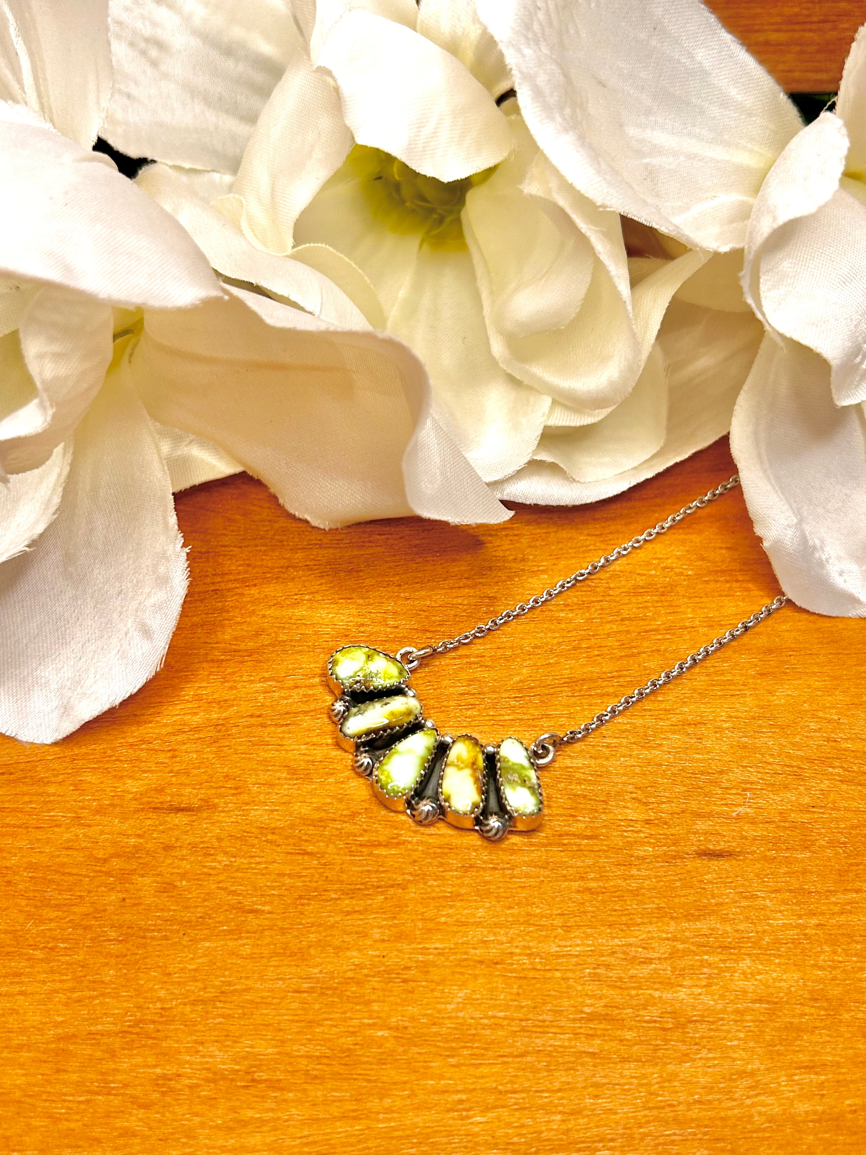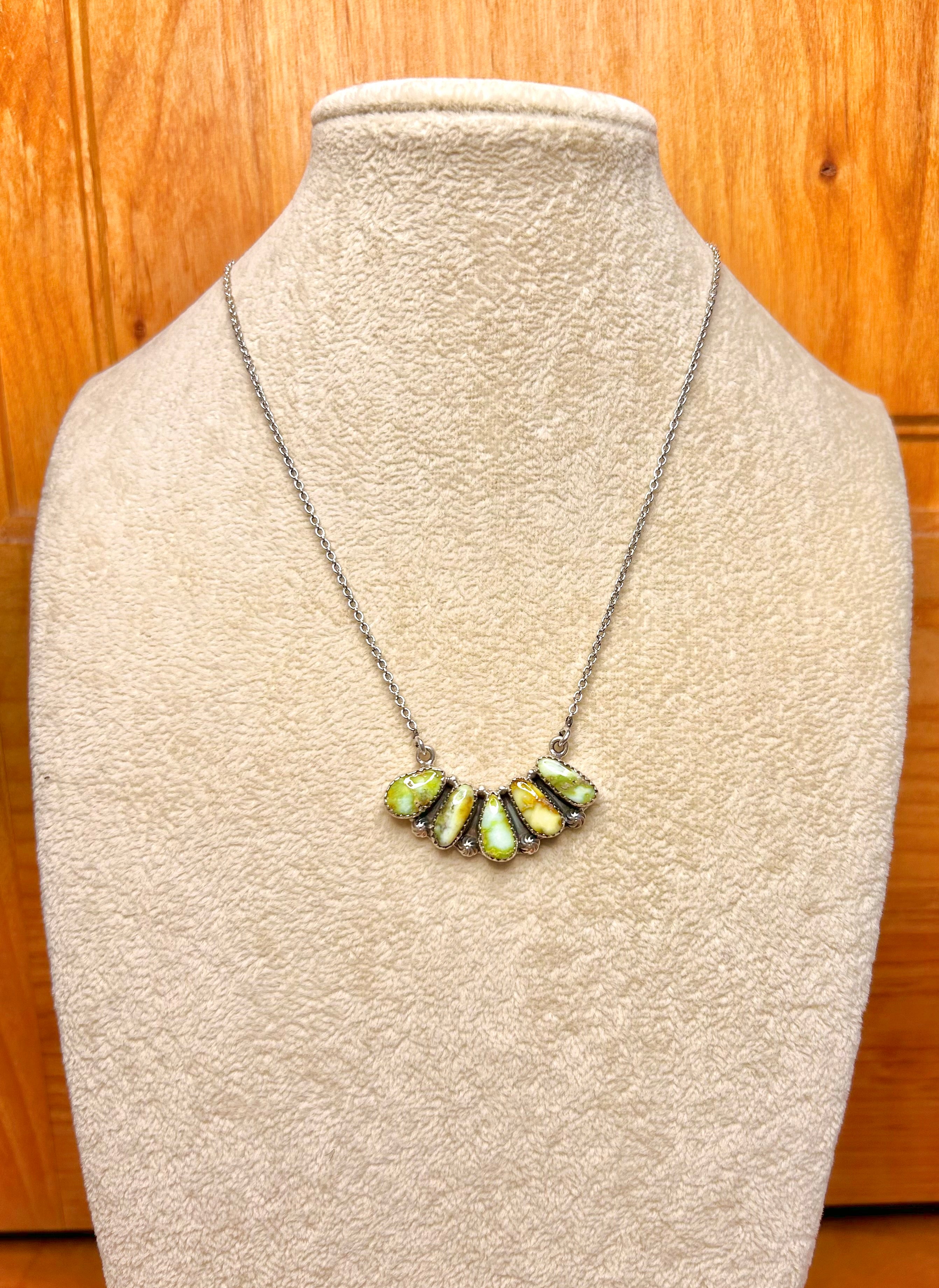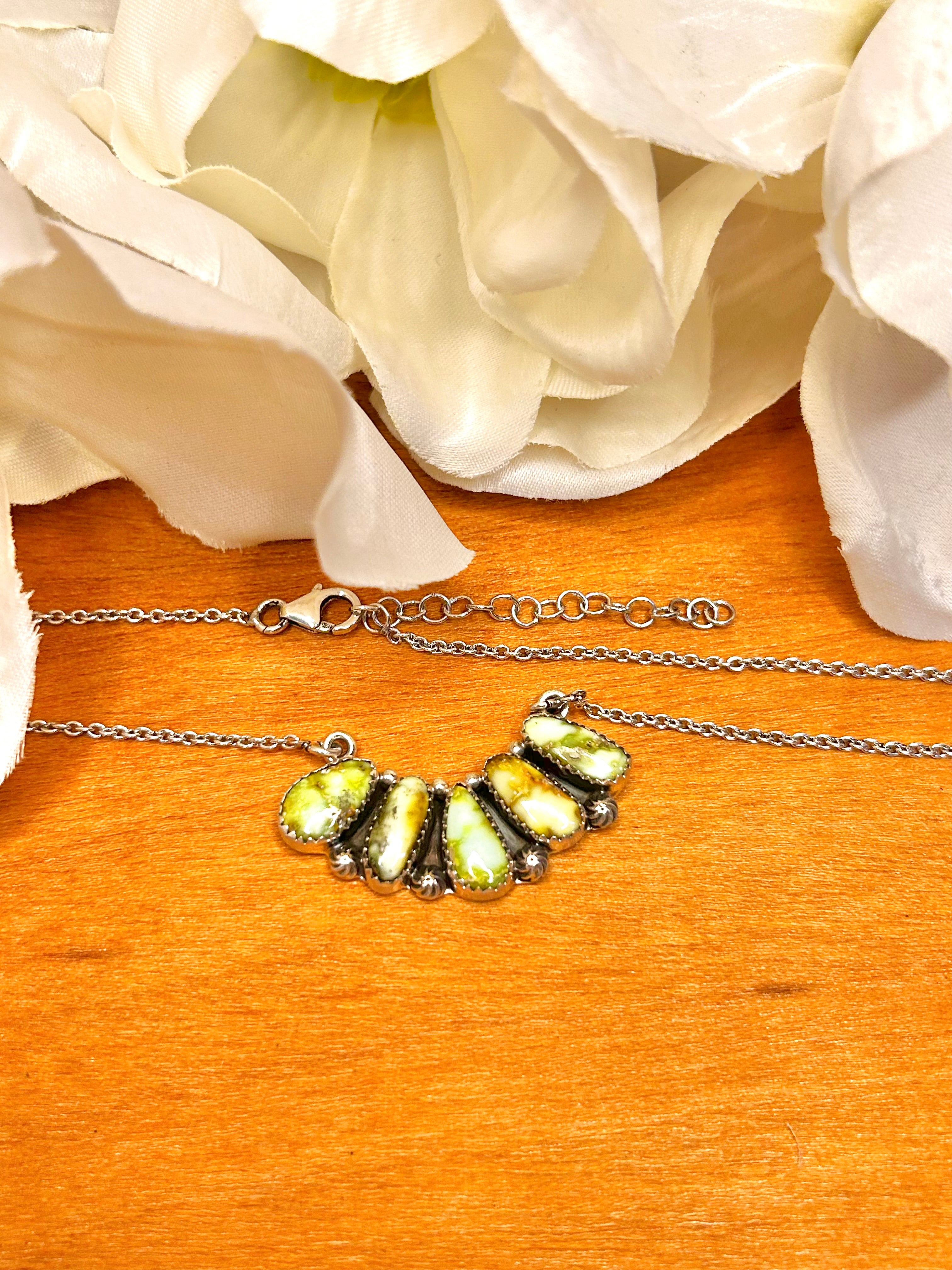 Southwest Made Palomino Variscite & Sterling Silver Cluster Necklace