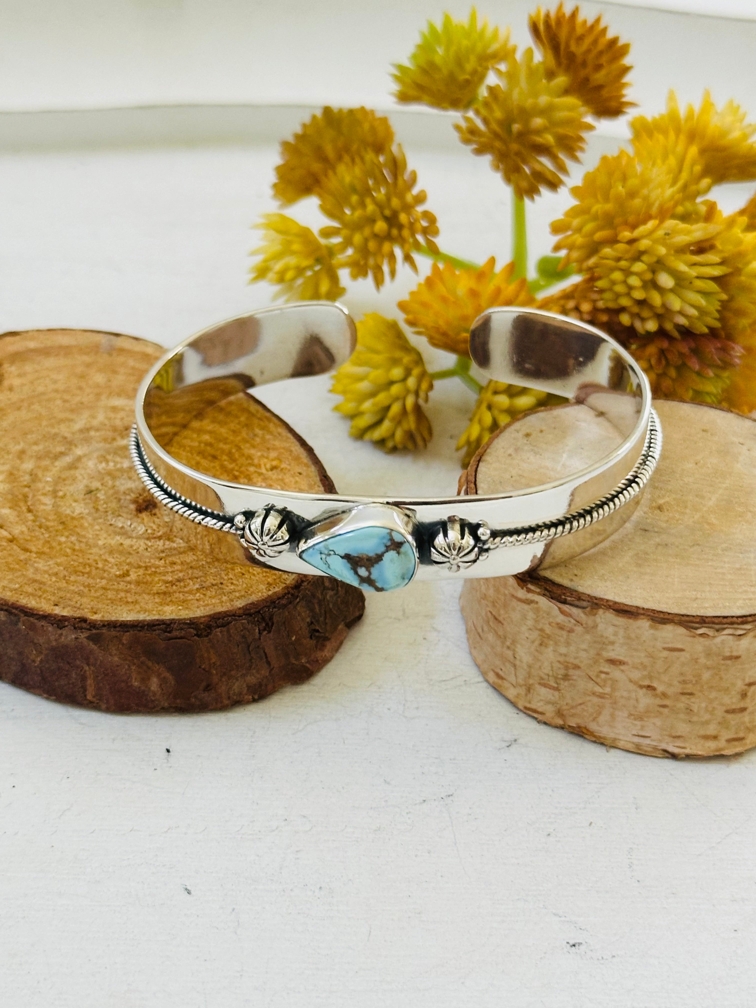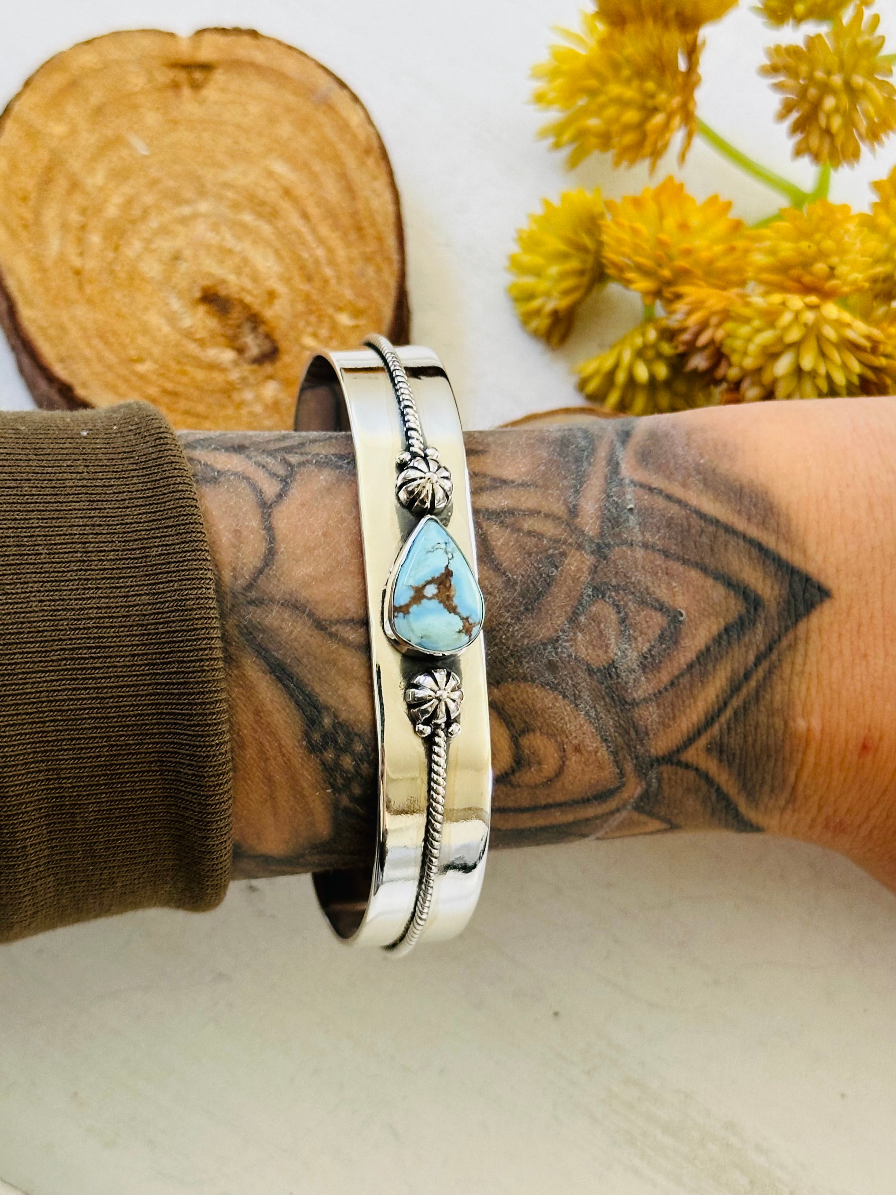 Southwest Made Golden Hills Turquoise & Sterling Silver Cuff Bracelet